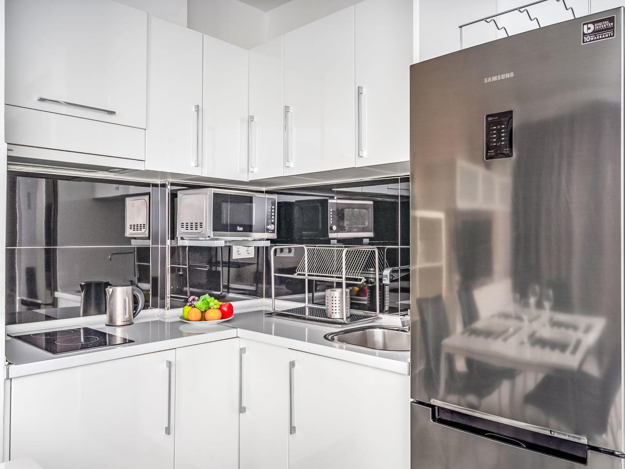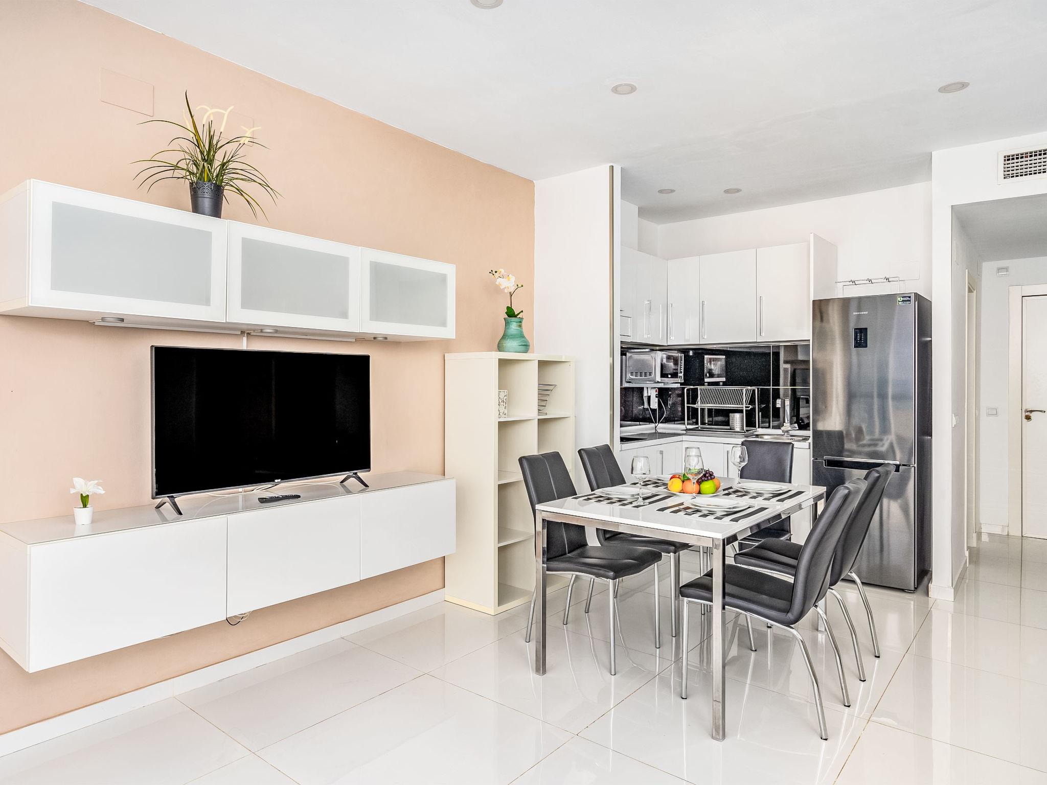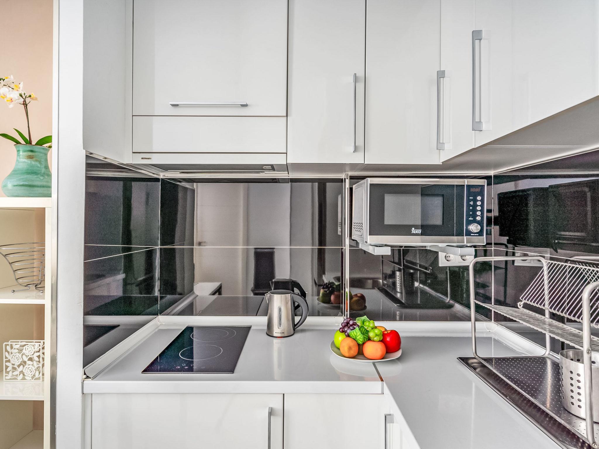 2-room apartment 70 m2 on 7th floor. Object suitable for 2 adults + 2 children. Modern and tasteful furnishings: living/dining room with 1 sofabed, digital TV, flat screen, air conditioning and forced-air heating. Exit to the terrace. 1 double bedroom with 1 french bed, shower/WC and forced-air heating. Open kitchen (2 ceramic glass hob hotplates, microwave, freezer, electric coffee machine). Shower/WC. Large terrace. Terrace furniture. Marvellous view of the sea. Facilities: washing machine. Suitable for families. VUT/MA/62575 // Reg. Nr.: ESFCTU0000290210004394730000000000000000VUT/MA/625758