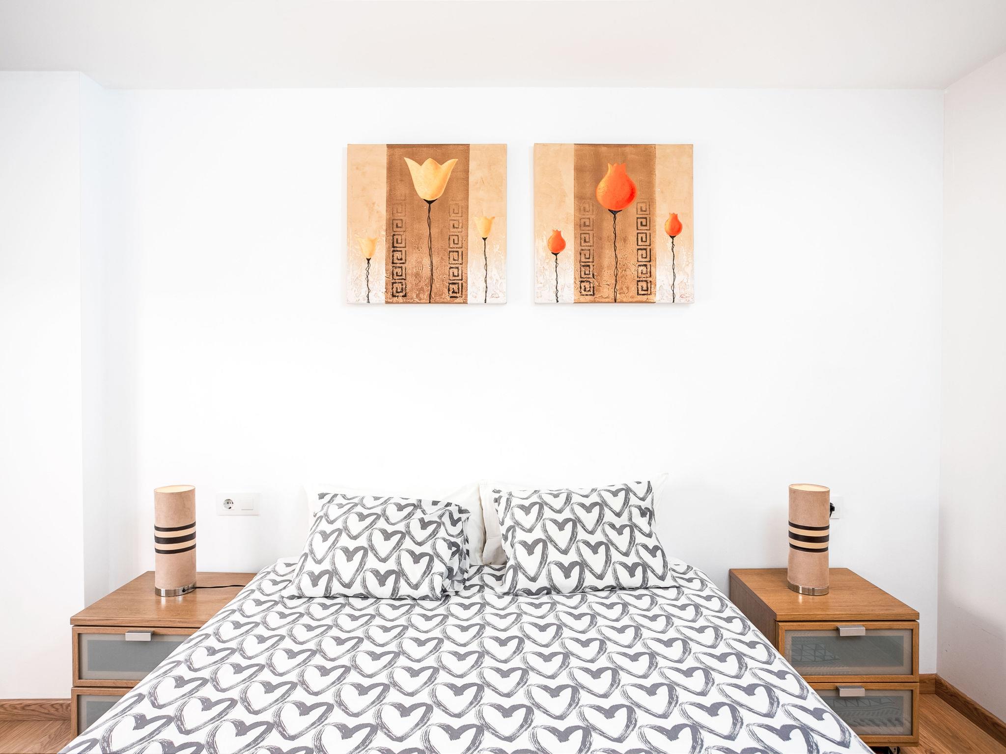 "Pinillo", 4-room apartment 100 m2, on the top floor. Object suitable for 4 adults + 2 children. Spacious and bright, beautiful and modern furnishings: living/dining room with dining table, satellite TV, air conditioning and forced-air heating. Exit to the terrace. 1 double bedroom with 1 french bed (150 cm), air conditioning and forced-air heating. Exit to the terrace. 1 double bedroom with 2 beds (90 cm). 1 double bedroom with 1 pull-out bed (2 x 80 cm, length 160 cm). Kitchen (oven, dishwasher, 3 induction hot plates, toaster, kettle, microwave, freezer, electric coffee machine). 2 showers/WC. Electric heating. Large terrace 60 m2. Terrace furniture, barbecue. Panoramic view. Facilities: washing machine, iron, hair dryer. Internet (WiFi, free). Parking space n 24. VFT/MA/21269 // Reg. Nr.: ESFCTU0000290210007428320000000000000000VFT/MA/212690
