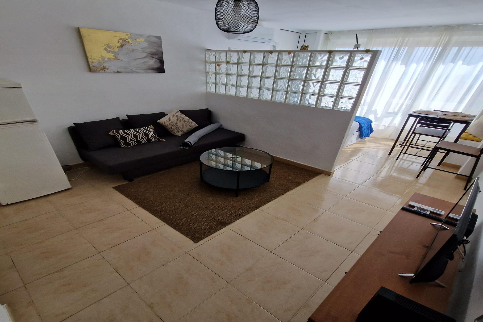 Komfortabel kystlejlighed Denne hyggelige 1-værelses lejlighed i Torremolinos kan rumme op til 4 gæster, og tilbyder et afslappende oase med en lys stue-spisestue og et fuldt udstyret åbent køkken. Lejligheden har et moderne badeværelse, aircondition, varme og en dobbelt sovesofa til ekstra soveplads. Gæsterne kan også nyde adgang til bygningens sæsonbestemte fælles pool og slappe af med en behagelig udsigt fra balkonen eller vinduerne. Kæledyr op til 5 kg er velkomne mod et mindre gebyr, hvilket gør det til et godt valg for rejsende med lodne ledsagere. Udforsk strande og seværdigheder Denne lejlighed ligger kun 800 meter fra Playa del Bajondillo og tæt på strandene La Carihuela og Playamar, tæt på sandkyster og kystpromenader. Nyd at gå, cykle eller prøve vandsport som padlesurfing og snorkling. Til dagsture kan du udforske Málagas historiske centrum, den naturskønne hvide landsby Mijas eller den nærliggende Sierra de Mijas til vandreture. Golfentusiaster kan besøge Real Club Campo Málaga (4,3 km) eller Golf Torrequebrada (8,2 km), hvilket sikrer aktiviteter for enhver interesse. Spisning, butikker og transport Lejligheden ligger få skridt fra caféer, restauranter og lokale butikker, herunder Mercadona-supermarkedet. Offentlig transport er praktisk med RENFE-togstationen 550 meter væk og busstoppesteder i nærheden. Aqualand vandland, Parque de la Bateria og Guadalhorce naturreservat tilbyder rekreative muligheder for familier. Málagas lufthavn ligger kun 8 km væk, så ankomster og afgange glider.