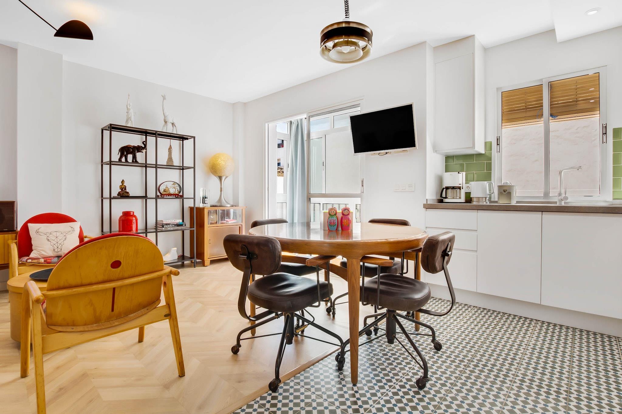 Forestil dig at starte dine morgener med havkysset luft og charmen fra en hvidkalket andalusisk landsby lige uden for din dør. Gemt væk i det fredelige Pueblo Blanco-kompleks er denne lejlighed med to soveværelser den perfekte kystferie for en familie på fire. Den er designet med komfort i tankerne og har et rummeligt soveværelse med dobbeltseng og et andet værelse med en funktionel køjeseng - ideelt til børn eller venner. Den åbne stue flyder problemfrit over i en hyggelig spisestue og et fuldt udstyret køkken, så du kan nyde rolige morgener eller tilberede hurtige måltider efter en dag ude. Træd ud på den solrige private terrasse, et perfekt sted at nippe til kaffe eller slappe af med en god bog. Boligen har alt det nødvendige: aircondition, højhastigheds-Wi-Fi, et Smart TV og en vaskemaskine - hvilket gør længere ophold nemme og stressfri. Den traditionelle arkitektur tilføjer en unik lokal karakter, mens de praktiske faciliteter sikrer moderne komfort under hele dit ophold. Kun en kort gåtur væk finder du Torremolinos' gyldne strande samt livlige restauranter, butikker og den naturskønne Paseo Marítimo. Familier kan udforske nærliggende attraktioner som Aqualand, Crocodile Park eller tage en dagstur til Malagas historiske centrum. Uanset om du er ude efter kulturelle opdagelser eller afslapning ved havet, har dette sted det hele - uden folkemængderne, men med masser af charme.