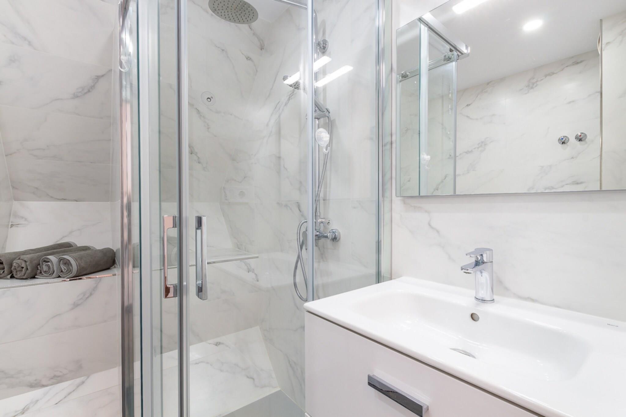 På 4. etage: (åbent køkken(elkedel, brødrister, kaffemaskine, mikrobølgeovn, køle-fryseskab, ), stue / spisestue(Fjernsyn(Smart-TV), spisebord, sofahjørne), soveværelse(dobbeltseng), soveværelse(dobbeltseng), badeværelse(bruser), Internetadgang) Internetadgang, tørretumbler, vaskemaskine, varme, klimaanlæg, terrasse, parkering, swimmingpool(deles med andre gæster), strygejern, føntørrer, , Wine glasses