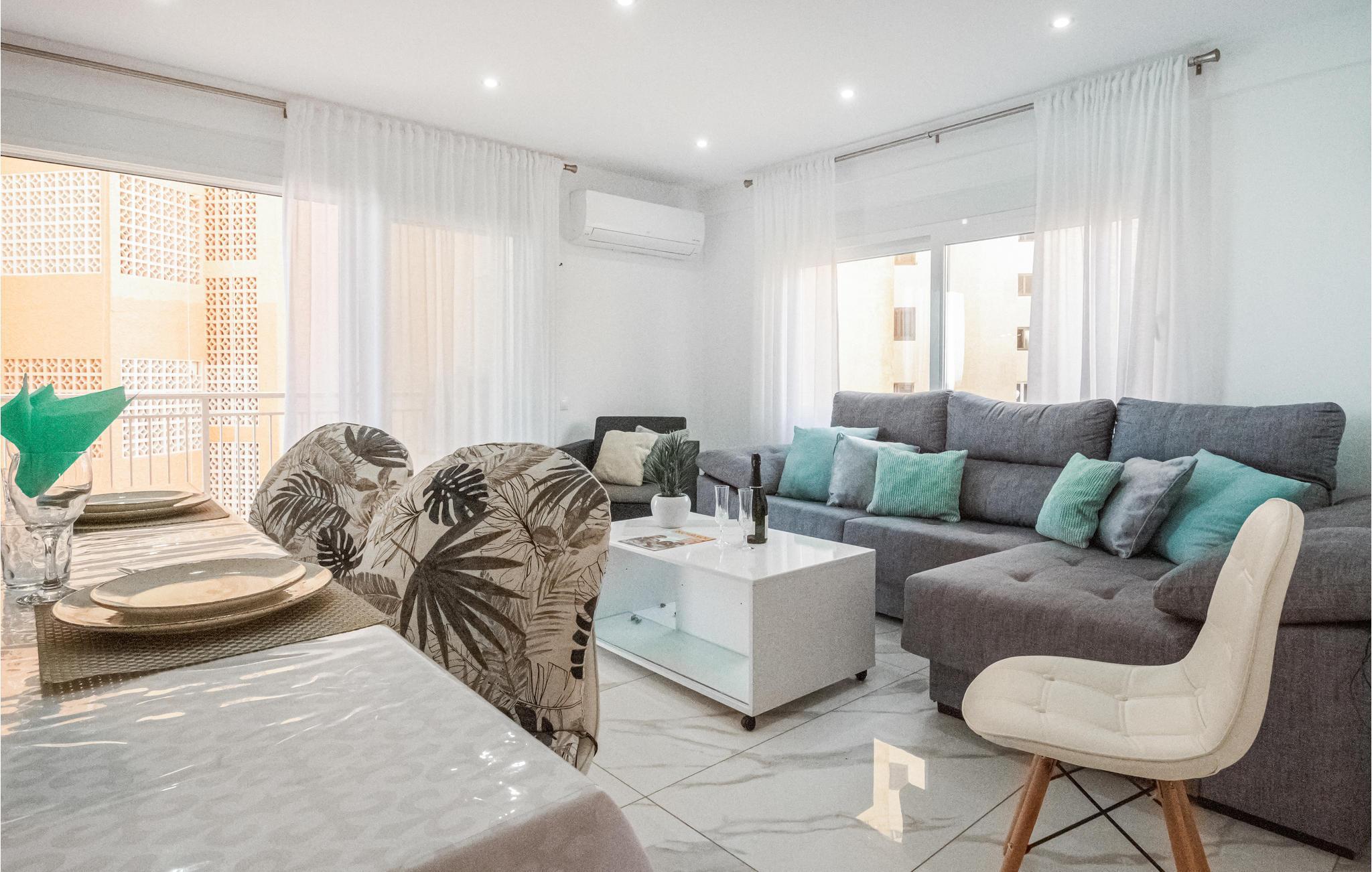 Leder I efter en moderne og veludstyret ferielejlighed, der giver jer en rigtig god beliggenhed til en dejlig ferie med strand og god mad? Se nærmere på denne lyse ferielejlighed med smagfuld indretning. Efter en smuk dag kan I lægge planer for i morgen og snakke over en forfriskning på balkonen med havudsigt. Tilbered en lækker morgenmad sammen, inden I dykker ned i den fælles udendørs pool eller går en tur til stranden.