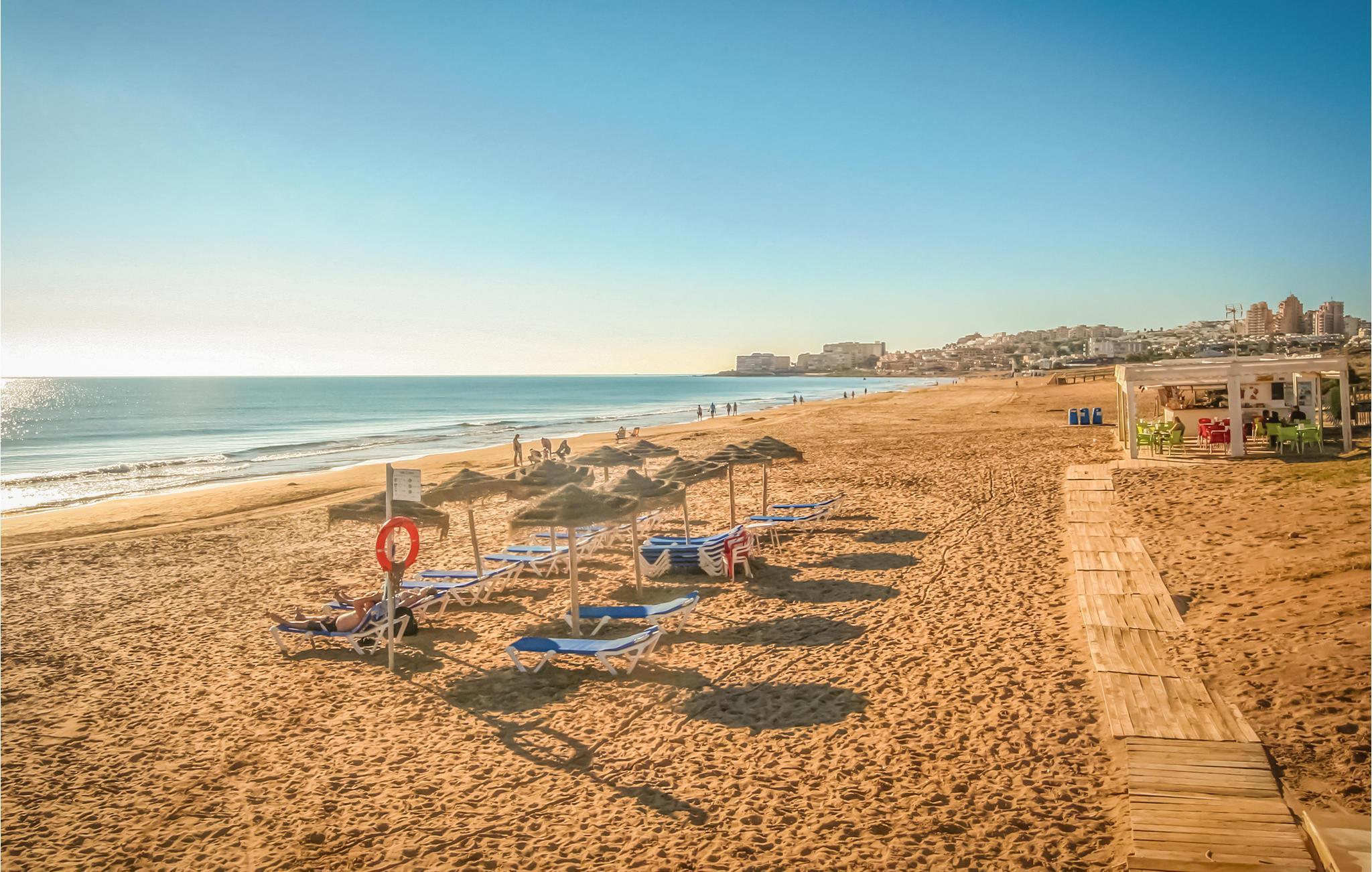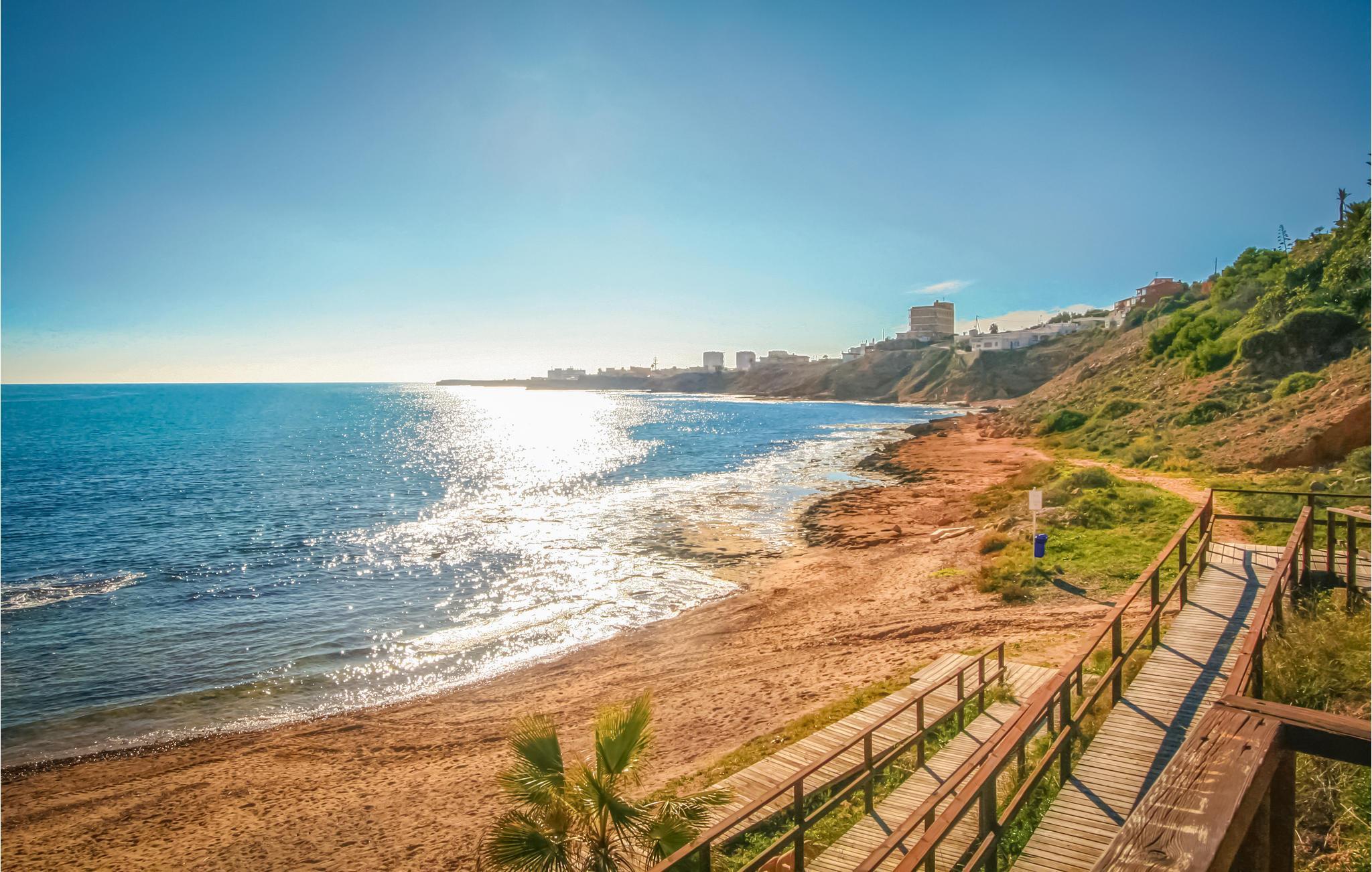 Fra jeres lejlighed er der kun en kort gåtur til sandstranden. Nyd vidunderlige dage med hav og sol, og tag jer tid til at lære andre højdepunkter på Costa Blanca at kende, såsom den klippefyldte bugt Cala Ferrís, hvorfra I kan nyde en fantastisk udsigt over kysten, eller Parque de las Naciones-parken.