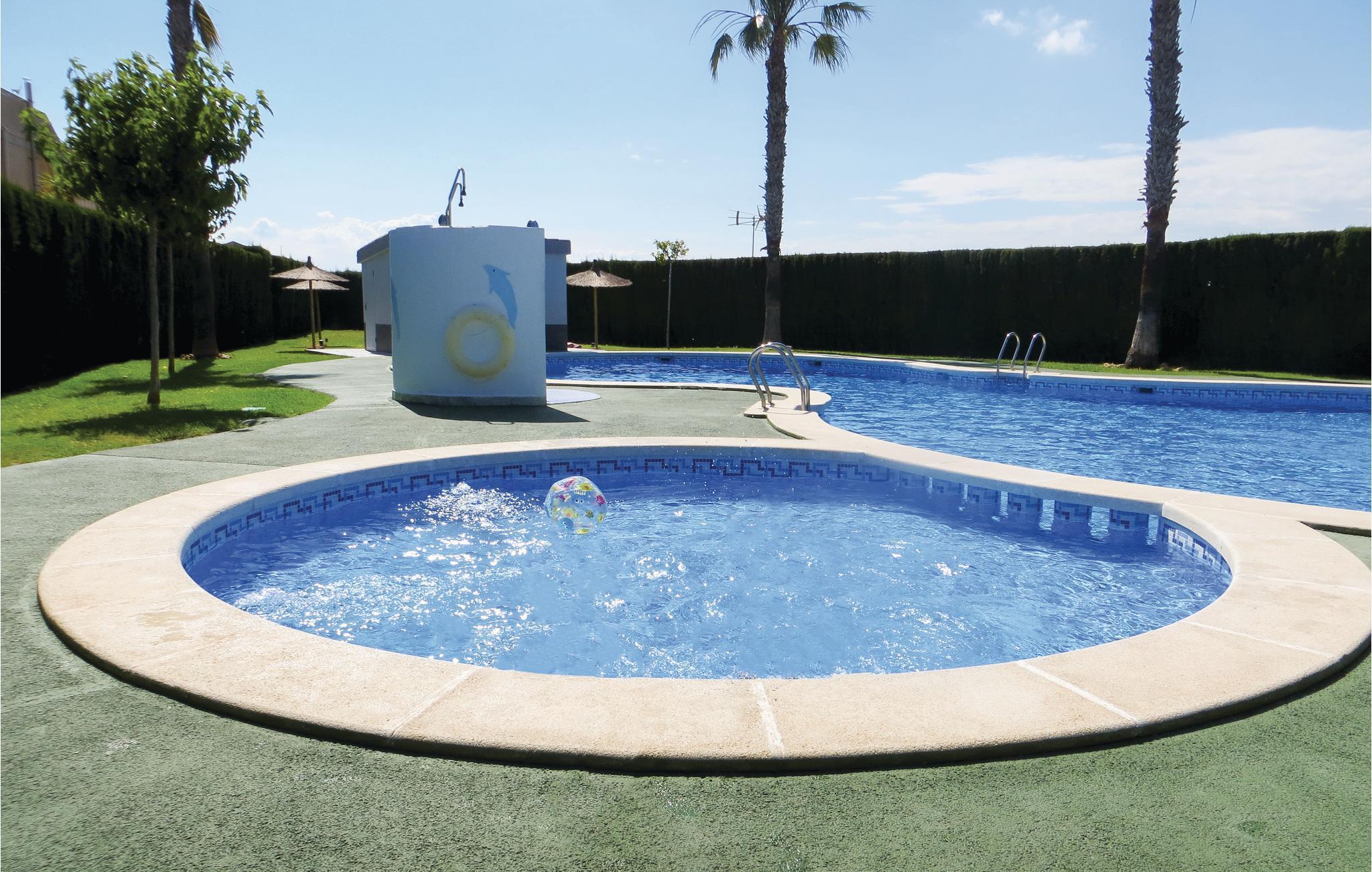Herfra er der gode busforbindelser ind til Torrevieja, som klart er et besøg værd. I har alle indkøbsmuligheder, restauranter og cafeer kun 1-2 km fra boligen. Der er en stor dejlig solterrasse, hvor I kan nyde de varme dage. Bliver det for varmt, kan I køle i den indbydende store fælles swimmingpool. Her kan I få mange gode timer ti lat gå med fødderne i vandet.