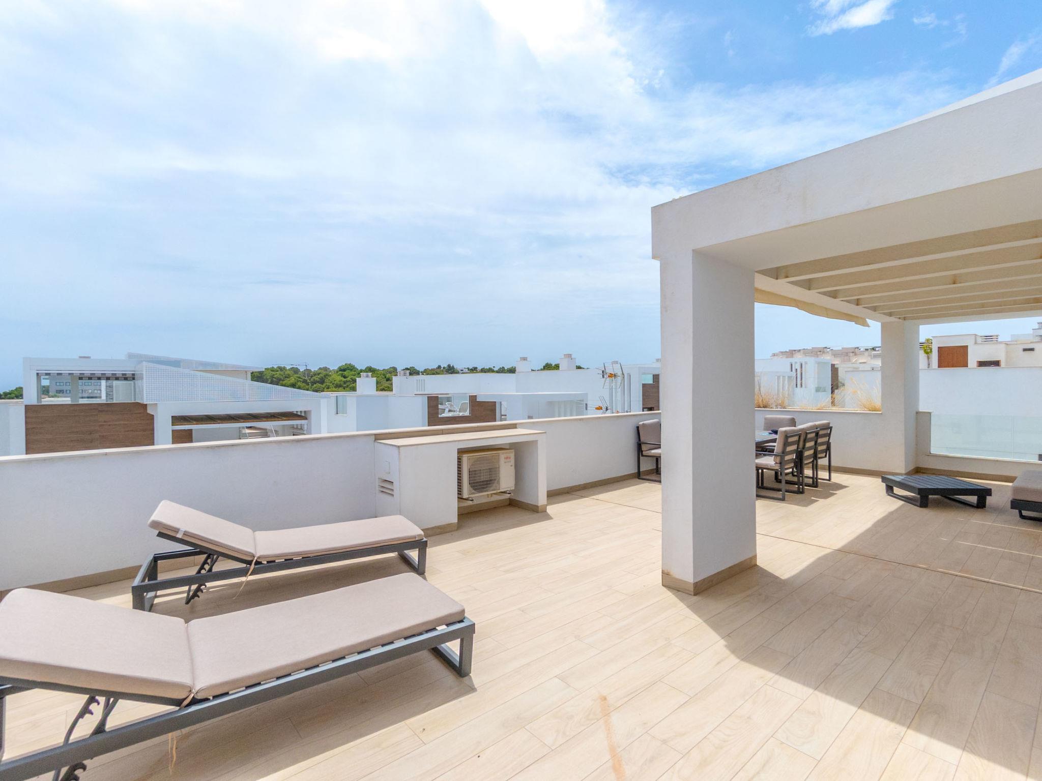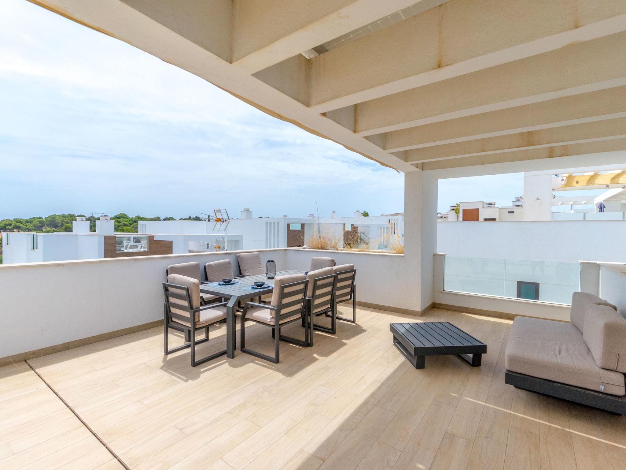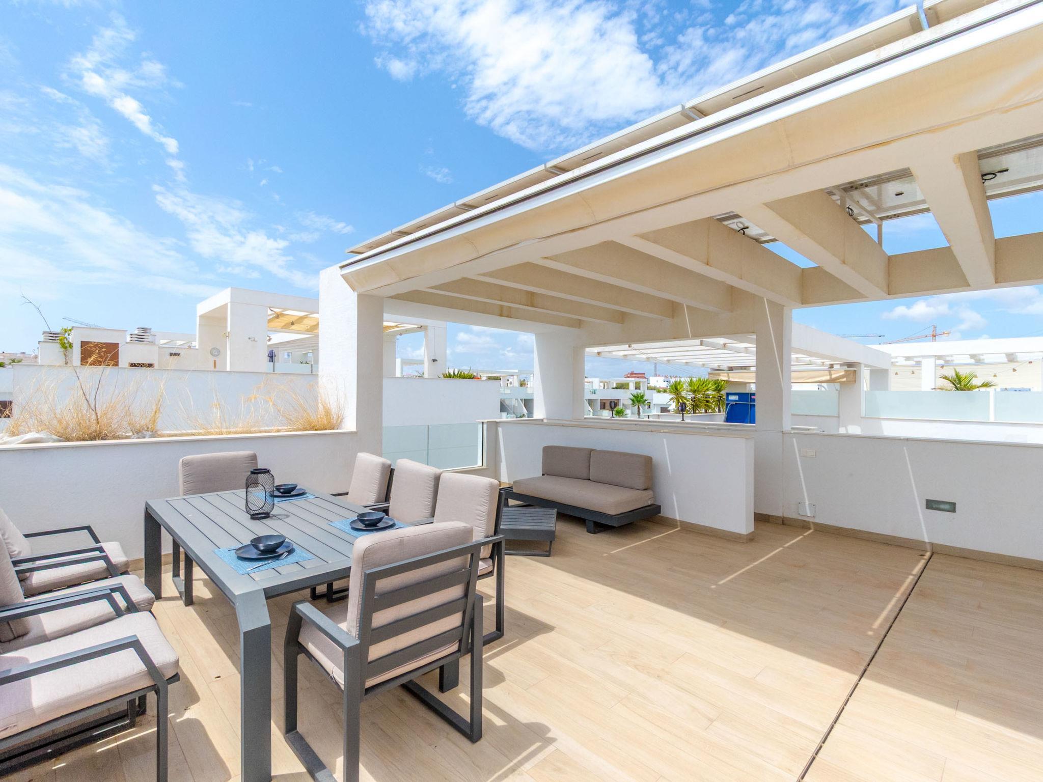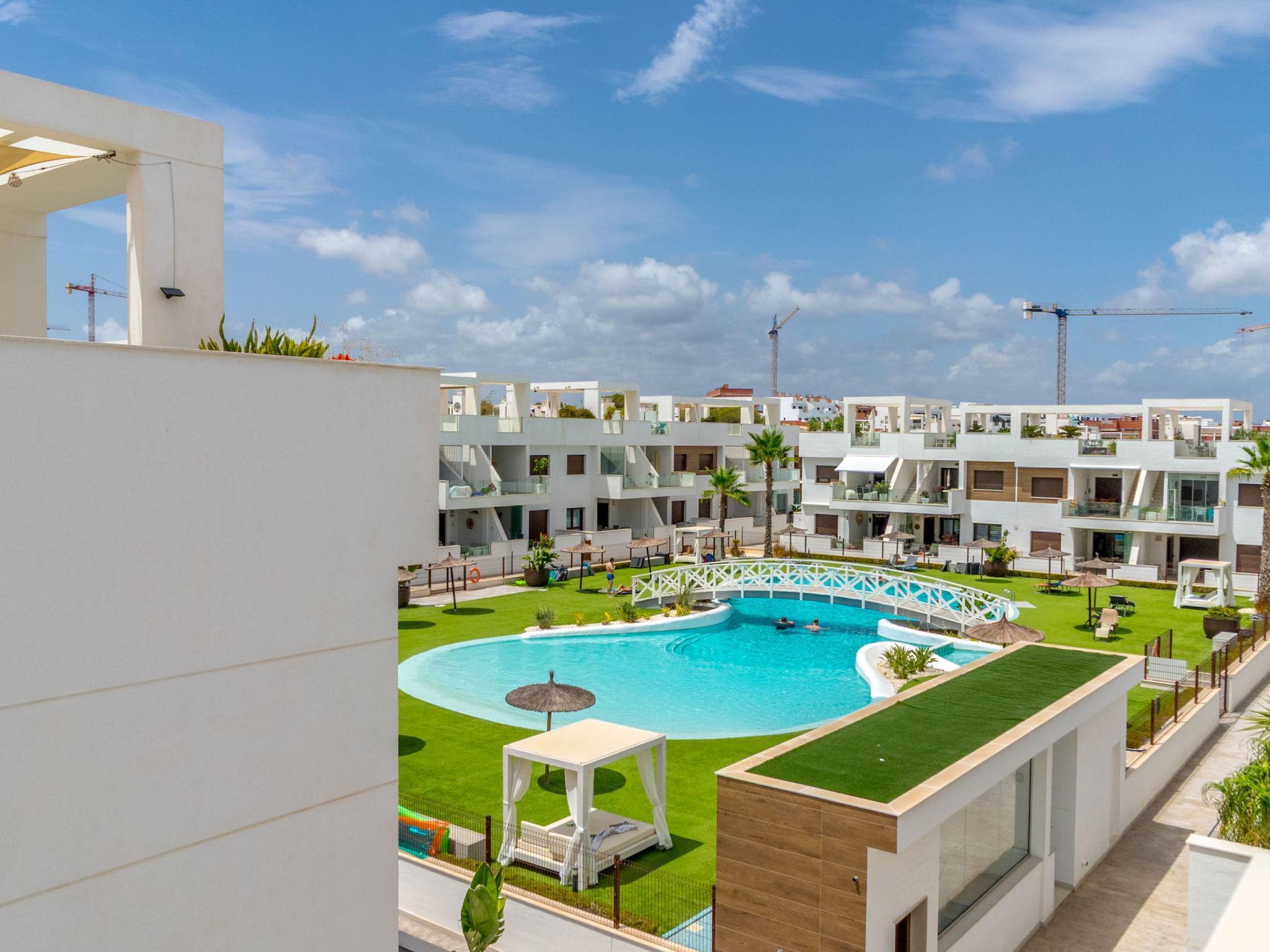 Modern, beautiful residence "Laguna Beach Resort", 2 storeys. 7 km from the centre of Torrevieja, 5 km from the centre of Punta Prima, 4 km from the sea, 4 km from the beach. For shared use: property (fenced), swimming pool (32 x 14 m, seasonal availability: 01.Jan. - 31.Dec.). Children's pool, outdoor shower. In the house: roof terrace. Grocery, supermarket 700 m, restaurant 850 m, bar 700 m, bus stop 750 m, sandy beach "Playa Punta Prima" 6 km. Sports harbour 6 km, marina 6 km, golf course (12 hole) 5 km.