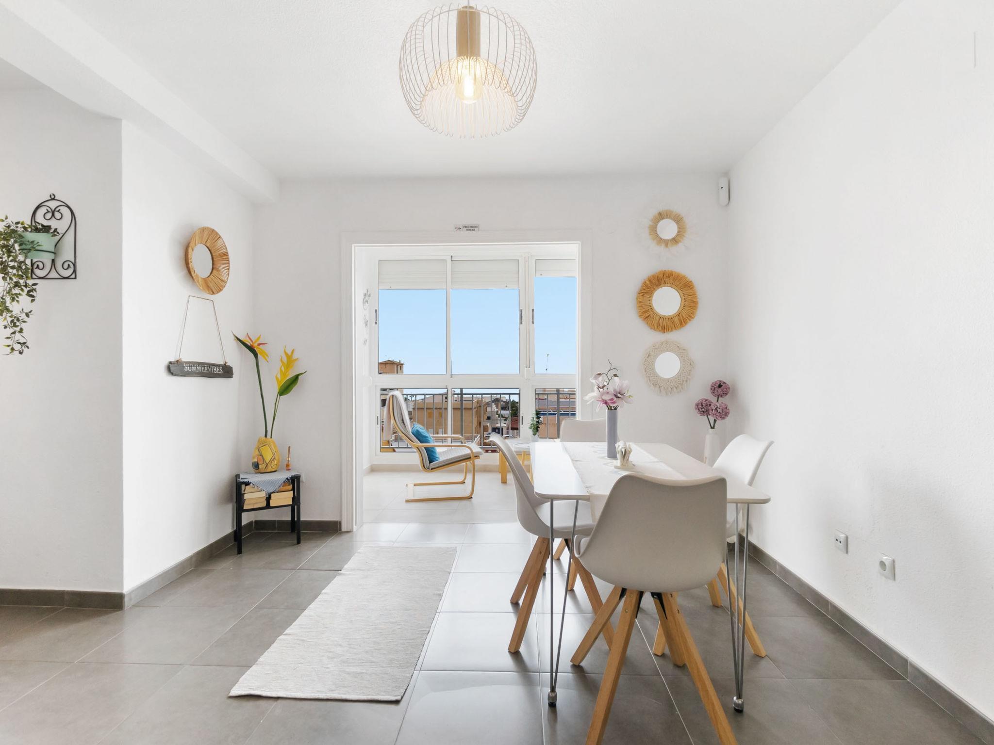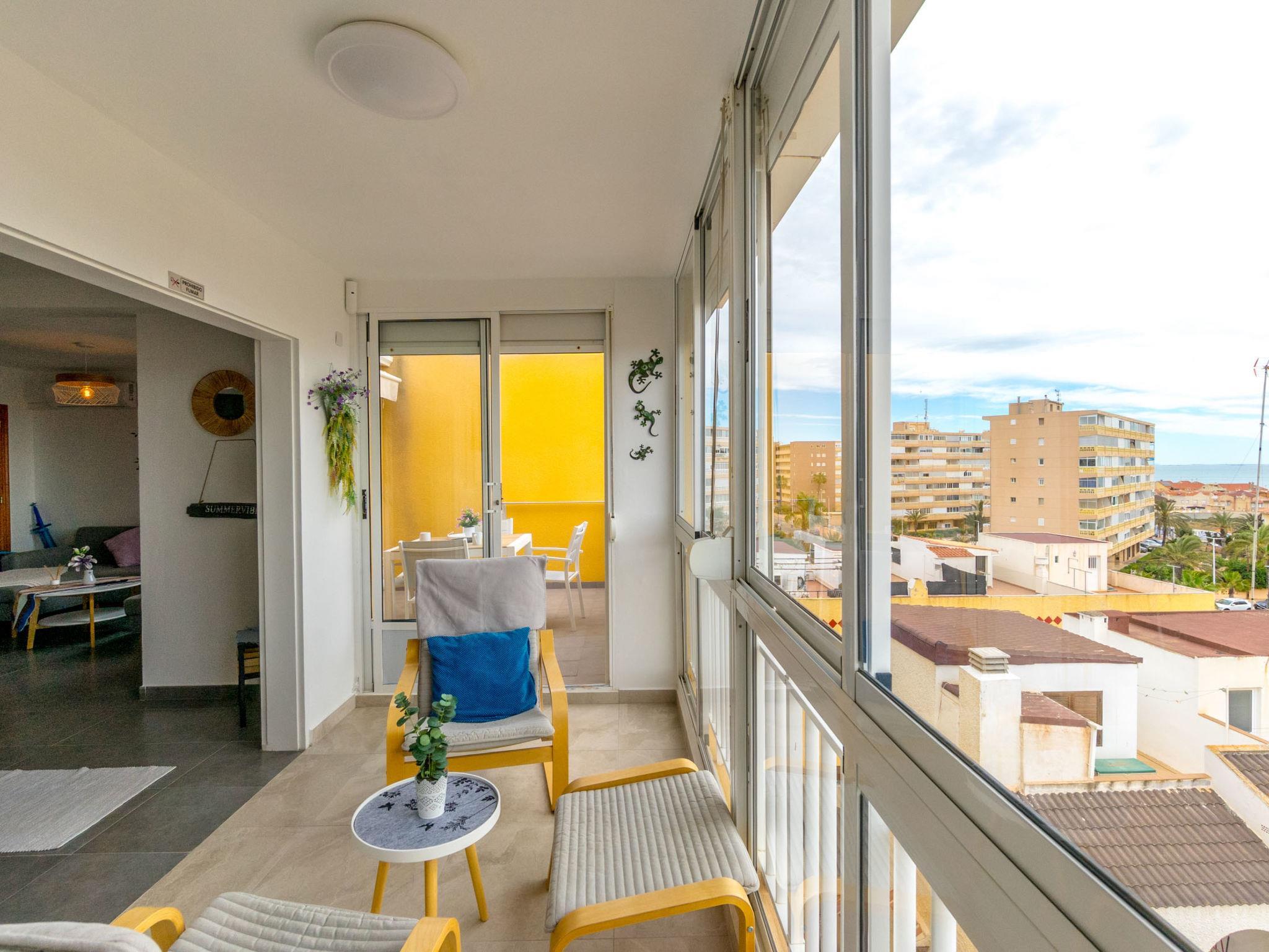 "Viñamar", 3-room apartment 74 m2 on 5th floor. Spacious and bright, comfortable and beautiful furnishings: open living/dining room with digital TV, air conditioning and forced-air heating. Exit to the terrace. 1 room with 1 french bed (1 x 160 cm, length 200 cm), TV, air conditioning and forced-air heating. 1 room with 1 french bed (1 x 140 cm, length 200 cm), air conditioning and forced-air heating. Open kitchen (oven, 3 ceramic glass hob hotplates, toaster, kettle, electric coffee machine). Shower/WC. Balcony, terrace. Terrace furniture, sitting area. Beautiful view of the sea and the town. Facilities: washing machine, iron, hair dryer. Internet (WiFi, free). Garage space n 45. Please note: non-smoking house. VT-515004-A // Reg. Nr.: ESFCTU00000305900013457100000000000000000VT-515004-A6