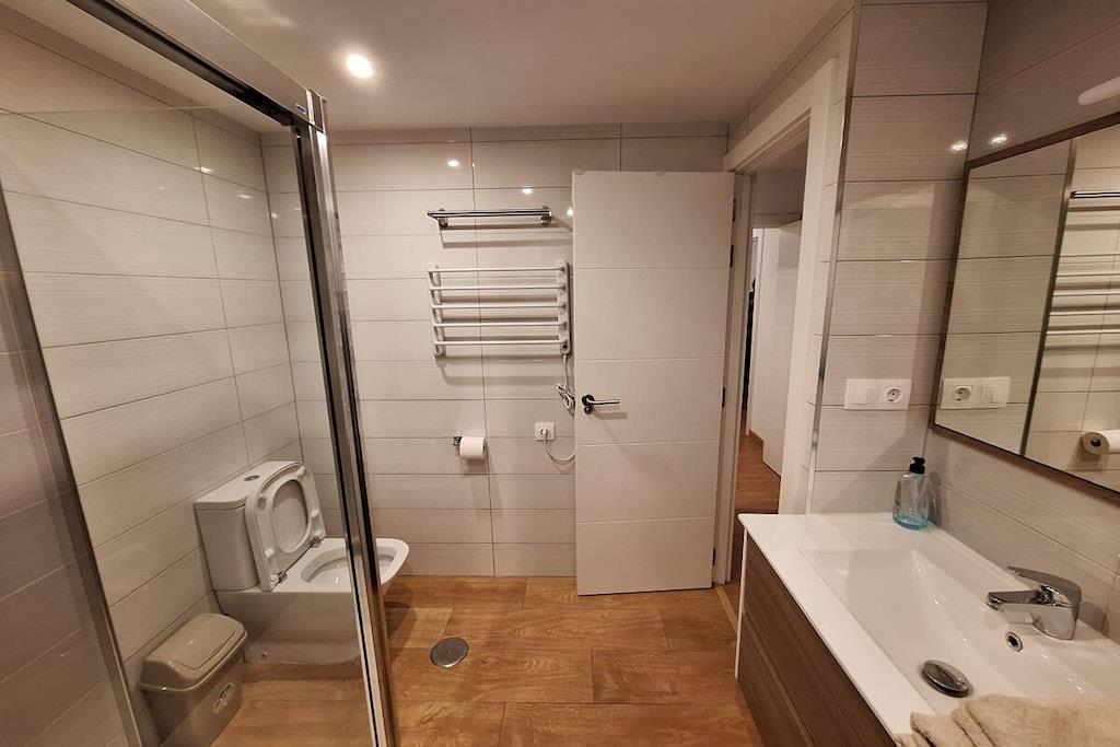 På 3. etage: (Køkken(, , , kakkelovn, elkedel, brødrister, komfur, kaffemaskine, ovn, grill, mikrobølgeovn, opvaskemaskine , køleskab, fryser, insektnet), stue / spisestue(, bibliotek, Fjernsyn, Fjernsyn, spisebord, DVD-afspiller, DVD-afspiller, videoafspiller, klimaanlæg), soveværelse(, , dobbeltseng, klimaanlæg), soveværelse(, , , dobbeltseng, klimaanlæg), soveværelse(, , dobbeltseng, klimaanlæg), badeværelse(, toilet, bruser, håndvask, vaskemaskine), badeværelse(, toilet, bruser, håndvask), pulterkammer(, , strygebræt, strygejern, tørreskab)) , , , , Internetadgang, Internetadgang, Førstehjælp, vaskemaskine, balkon(balkon, baldakin), parkering, strygebræt, strygejern