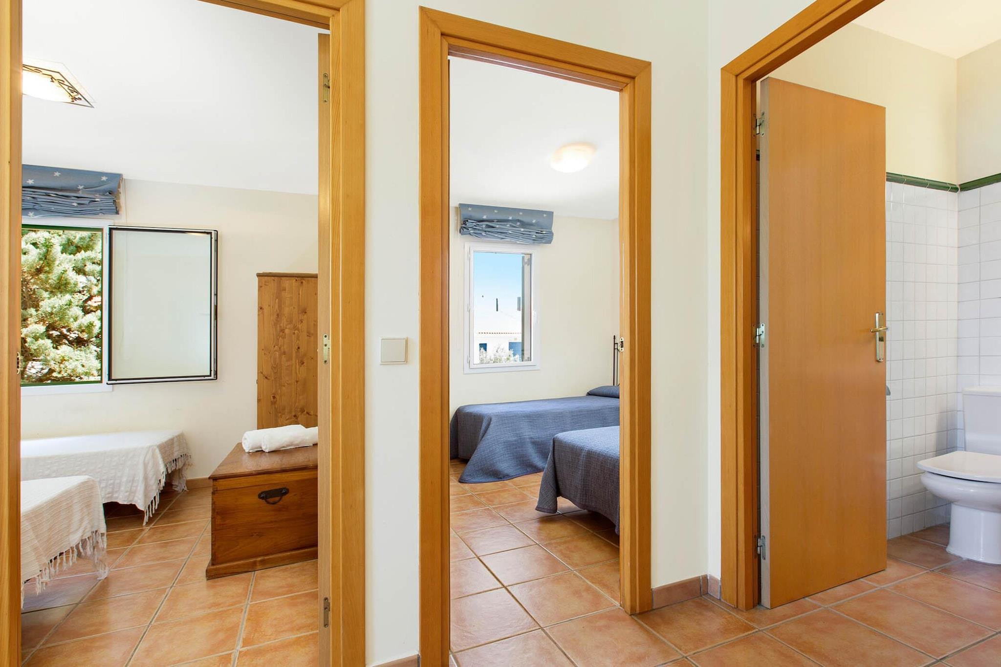 Denne charmerende villa med 3 soveværelser, beliggende i et roligt boligkompleks, ligger kun 100 meter fra den fredelige og maleriske strand i Pals. Villaen er ideel til en familieferie og tilbyder et fredfyldt miljø med en fælles have, swimmingpool og legeplads. Ejendommen er fordelt på to etager og kan rumme op til 6 personer. Stueetagen byder på en hyggelig stue med pejs, et tv og direkte udgang til en rummelig terrasse, perfekt til at nyde måltider og morgenmad i solen. Det fuldt udstyrede køkken omfatter en keramisk kogeplade, ovn, mikroovn, fryser, opvaskemaskine og alt nødvendigt bestik og køkkengrej. Ovenpå byder villaen på tre velindrettede soveværelser. Det store soveværelse har en dobbeltseng (150x190cm), et en-suite badeværelse med badekar og en privat balkon. De to ekstra soveværelser er indrettet med to enkeltsenge hver (90x190cm). Der er også et andet badeværelse med bruser og vaskemaskine samt et ekstra toilet for nemheds skyld. Villaen er perfekt til familier og giver et fredeligt tilflugtssted med moderne bekvemmeligheder. Den lange sandstrand i Pals, kun få skridt væk, er perfekt for familier, der tilbyder muligheder for vandsport, gåture og nyde den naturskønne udsigt over Medes-øerne. Det omkringliggende område omfatter også Platja del Grau, en rolig strand med lavt vand, og Platja Gran, som byder på en dybere oplevelse med grovere sand. Ejendommen ligger 15 minutter i bil fra byens centrum, med lokale supermarkeder og restauranter i nærheden.