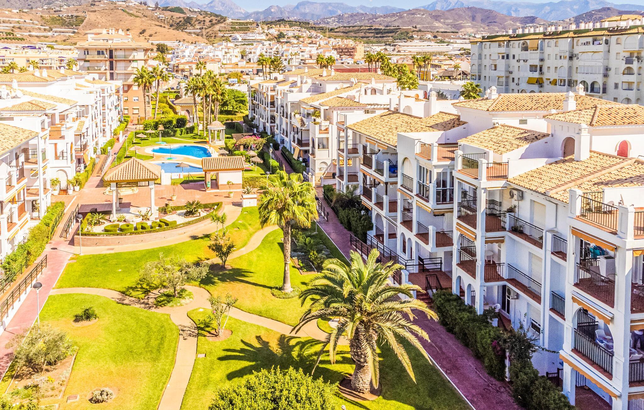 Torrox Costa er kendt for sit milde klima og har en smuk promenade, ideel til afslappende gåture med udsigt til havet. De fine sandstrande inviterer til solbadning og ren afslapning, og mange lokale restauranter tilbyder autentiske retter fra området. For spændende udflugter kan I besøge de historiske Nerja-huler og det charmerende hvide bjerglandsby Frigiliana, som begge ligger en kort køretur væk. Natur- og vandreentusiaster vil desuden nyde de varierede ruter i naturparken Sierras de Tejeda, som fører jer gennem imponerende landskaber.