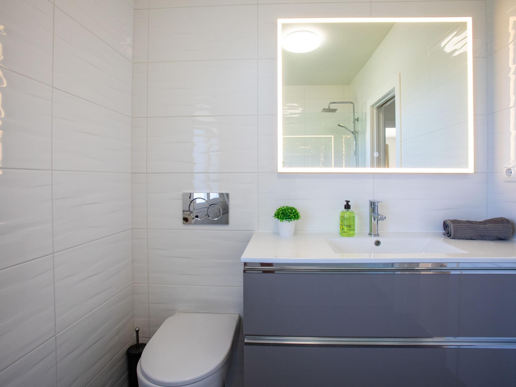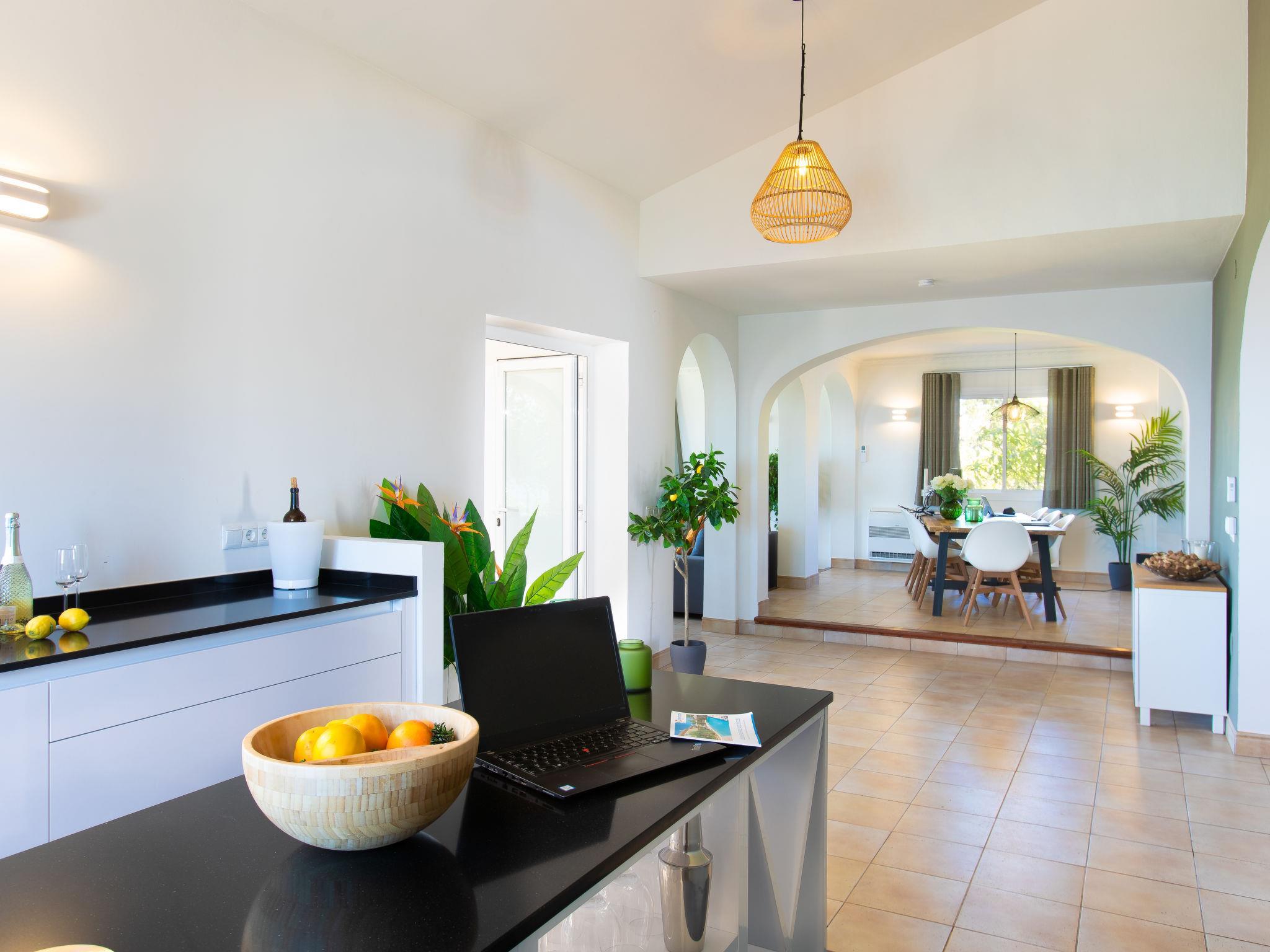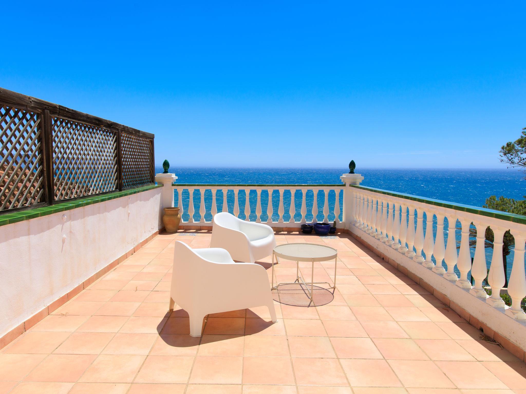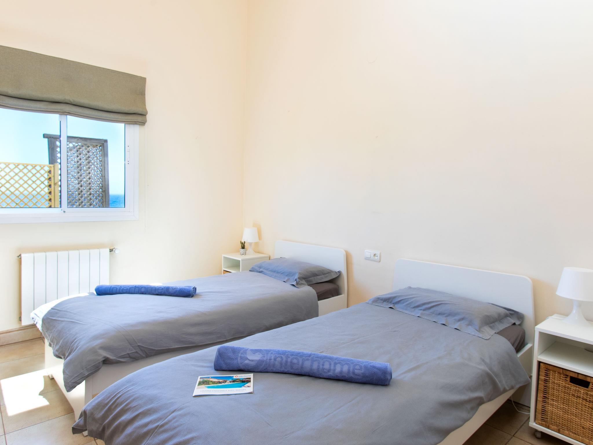 "Atardecer", 5-room villa 230 m2. Comfortable and beautiful furnishings: living/dining room with cable TV (flat screen), radio and hi-fi system. Exit to the patio. 1 room with 2 beds (90 cm, length 190 cm), air conditioning and forced-air heating. 1 room with 1 french bed (160 cm, length 200 cm), bath/WC and air conditioning. Large kitchen (oven, dishwasher, 4 induction hot plates, toaster, kettle, microwave, freezer, electric coffee machine). Bath/WC. Upper floor: 1 room with 1 french bed (140 cm, length 190 cm), air conditioning. 1 large room with 1 french bed (180 cm, length 200 cm), air conditioning, fan and forced-air heating. Exit to the terrace. Shower/WC. Large patio. Terrace furniture, barbecue, deck chairs, covered balcony. Marvellous panoramic view of the sea, the mountains and the resort. Facilities: washing machine, iron, children's high chair, baby cot for up to 3 year olds, hair dryer. Internet (WiFi, free). VUT/MA/51504 // Reg. Nr.: ESFCTU0000290130003448260000000000000000VUT/MA/515040