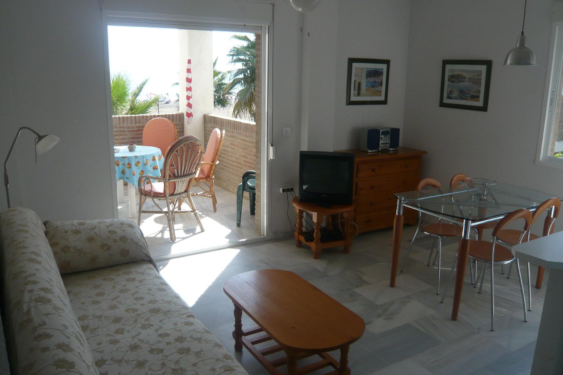 Flat no. 48, DIRECTLY on the BEACH !!! 100% sea view !!! DIRECTLY on the BEACH !!! 100% sea view !!! Sea noise included !!! APARTMENT in absolutely quiet DREAM LOCATION, away from any traffic, but centrally located, pools, tennis, sunbathing lawns, kilometre-long sandy beach right on the doorstep, approx. 10 metres away complete infrastructure, simply everything available. NOT A HIGH-RISE FLAT!!! SEA VIEWS from the flat and from the terrace! As good as new beach flat fully furnished and maintained, 1 terrace approx. 12 m² off the living room, with seating, table and parasol 1 kitchen, large fridge with freezer, ceramic hob, oven, dishwasher microwave, toaster, electric coffee machine and "espresso" Spanish, kettle, hand blender 1 bedroom with two beds 2.00m x 0.90m for 2-pers. 1 bedroom with a bunk bed for 2 persons and an extra bed 1 living room with sofa bed (2)-pers. 1 TV, 1 radio, 1 alarm clock (on request) 1 bathroom with washbasin, toilet, bathtub, small hairdryer on request. Radiant heater above the door, washing machine, clothes horse & laundry basket, . Ironing board & simple iron (on request), mop with bucket and broom with shovel 1 SAFE in the parents' bedroom CEILING VENTILATOR in the living room & in the parents' bedroom In winter with electric radiator in the living room & in the parents' bedroom