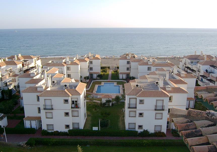Flat no. 02, DIRECTLY on the BEACH !!! 100% sea view !!! DIRECTLY on the BEACH !!! 100% sea view !!! Sea noise included !!! APARTMENT in absolutely quiet DREAM LOCATION, away from any traffic, but centrally located, pools, tennis, sunbathing lawns, kilometre-long sandy beach right on the doorstep, approx. 10 metres away complete infrastructure, simply everything available. NOT A HIGH-RISE FLAT!!! SEA VIEWS from the flat and from the terrace! As good as new beach flat fully furnished and maintained, 1 terrace approx. 10 m² off the living room, with seating, table and parasol 1 kitchen, open with large fridge with freezer, Zerrann hob, oven, dishwasher microwave, toaster, electric coffee machine and "espresso" Spanish, kettle, hand blender 1 dining area with large table 1 bedroom with a bed 1.80m x 2.00m for 2-pers. 1 sofa bed in the living room folds out for 2 people. 1 living room 1 TV, 1 radio, 1 alarm clock (on request) 1 bathroom with washbasin, toilet, shower, small hairdryer on request. Radiant heater above the door, washing machine, clothes horse & laundry basket, . Ironing board & simple iron, mop with bucket and broom with shovel 1 SAFE in the parents' bedroom CEILING VENTILATOR in the living room & in the parents' bedroom In winter with electric radiators in the living room & in the parents' bedroom AIR CONDITIONING in the living room and in the bedroom, the use of which is subject to a surcharge. The flat is barrier-free, but does not correspond to the usual dimensions for a wheelchair user, the shower plate is slightly raised and has shower walls.