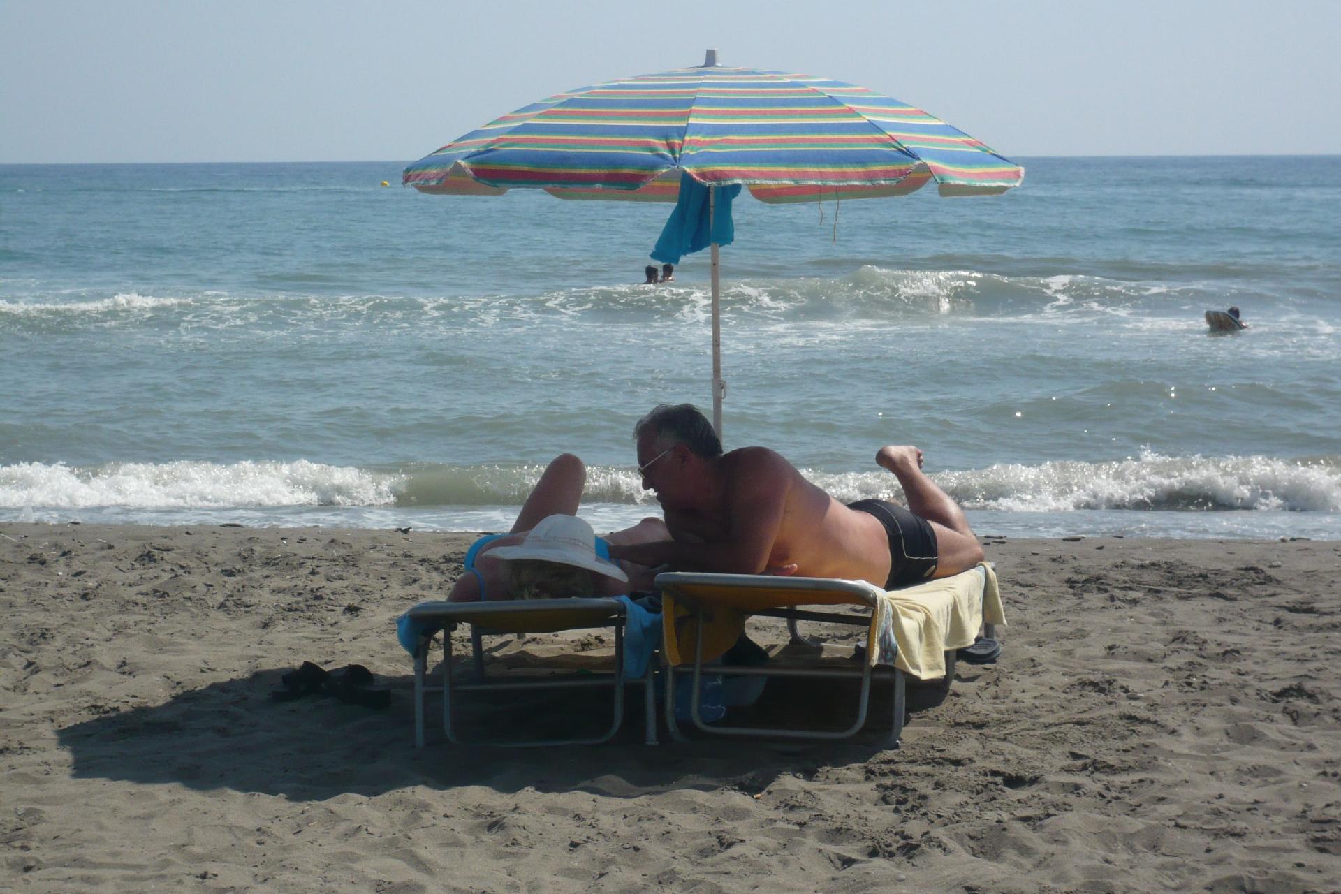 The speciality is that they have really small paths, especially to the beach, ideal for families with big and small children. In the front area you will find shops, restaurants, a great ice cream parlour, a diving school, a fitness studio and physiotherapy. The beach is fine sandy and darker, so it retains the heat for longer and, depending on the time of day, you may need "chanclas" (slippers) to cross it. In front of the water, the beach is sometimes fine sandy and sometimes pebbly, depending on the sea currents. You can take wonderful walks on the beach or go jogging on the promenade.