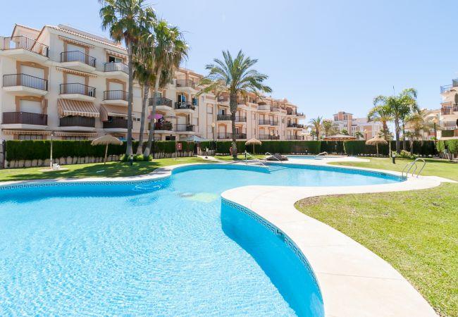 This apartment is located in the La Cañada del Barco urbanization. It is a beautiful urbanization next to the N-340 road, a step away from the beach and has a beautiful communal pool and gardens.
