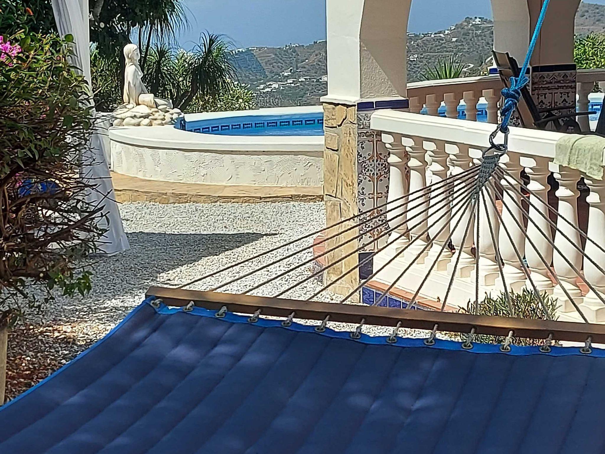 Es erwartet Sie ein idyllisches Ferienhaus für 4 Personen, uneinsehbar, eingewachsen und mit altem Baumbestand. Palmen, Bougonvilleas, Feigenbaum, Zitronenbaum, Orangenbaum und Kumquatbaum werden Ihren Aufenthalt zu einem Erlebnis machen. Der Blick schweift über sanfte Hügellandschaften und auf Torrox Pueblo. Das typische andalusische Dorf Torrox Pueblo ist in ca. 5 Minuten mit dem Auto zu erreichen. Sie blicken vom Cortijo aufs Meer der Torrox Costa, das Sie mit einem 9 km langen und breiten Sandstrand einlädt, dort zu verweilen