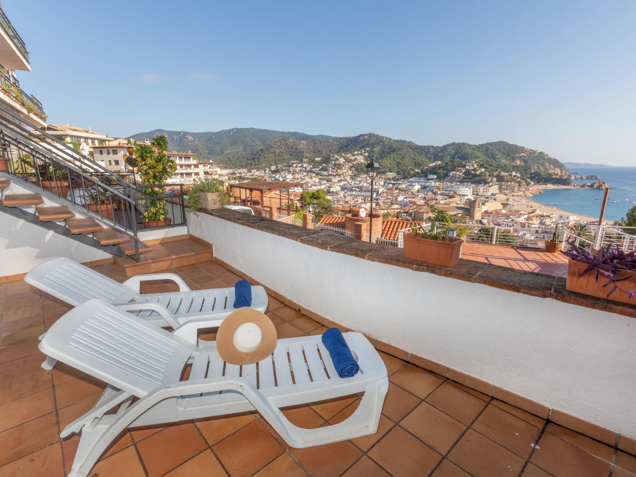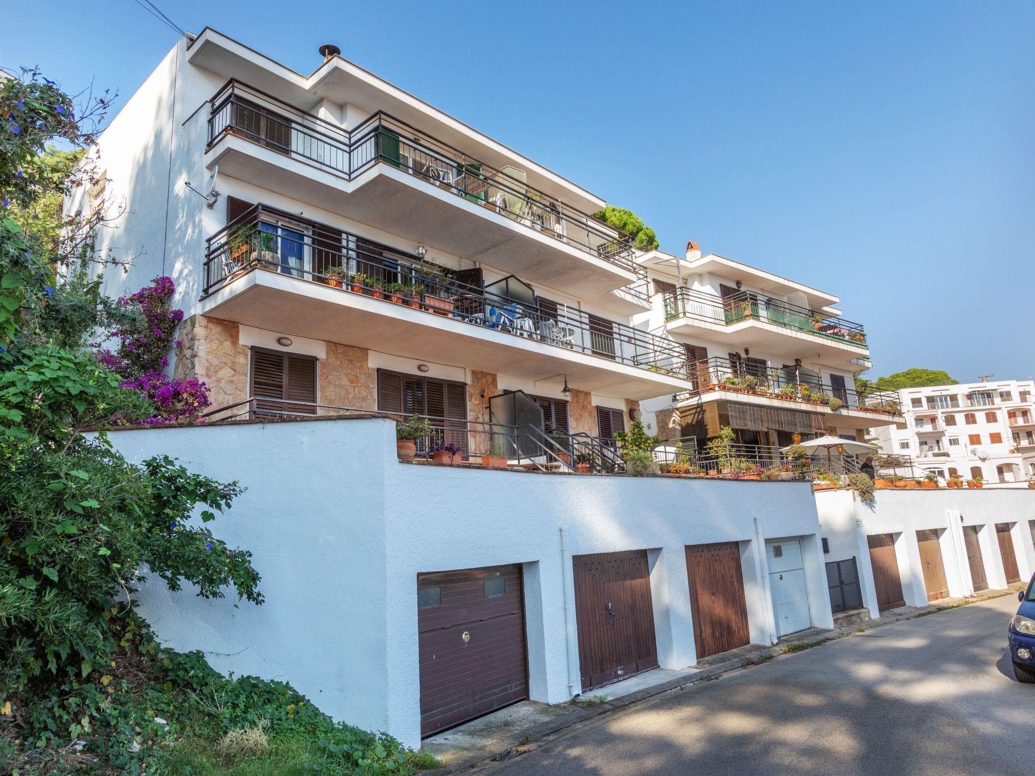 Tossa de Mar: Cosy apartment block "Codolar". Above Tossa de mar, in a quiet, sunny position, traffic calmed area, 600 m from the sea, 600 m from the beach, in a cul-de-sac. Stepped path (25 steps) to the house. Parking space or garage only for small to medium-sized cars. Dimension: height 175 cm width 250 cm. Shop 400 m, supermarket 900 m, restaurant, bar 400 m, bakery 300 m, bus stop "800" 800 m, sandy beach "Playa grande" 600 m, diving center 1 km, swimming bay 550 m. Sports harbour 9 km, golf course 25 km, tennis 1 km, sports centre 1 km, walking paths from the house 200 m. Nearby attractions: Marineland Palafolls 20 km, Waterworld Lloret de mar 13 km, Casino de lloret 11 km, Girona 38 km, Barcelona 79 km. Well-known lakes can easily be reached: Llac de Banyoles 78 km. Hiking paths: Ermita de Sant Grau 7 km, Puig de ses Cadiretes 10 km, Cami de ronda nord i sud 200 m. The owner does not accept any youth groups. Neighbourhood highly sensitive to noise. Quietness and good behaviour expected.