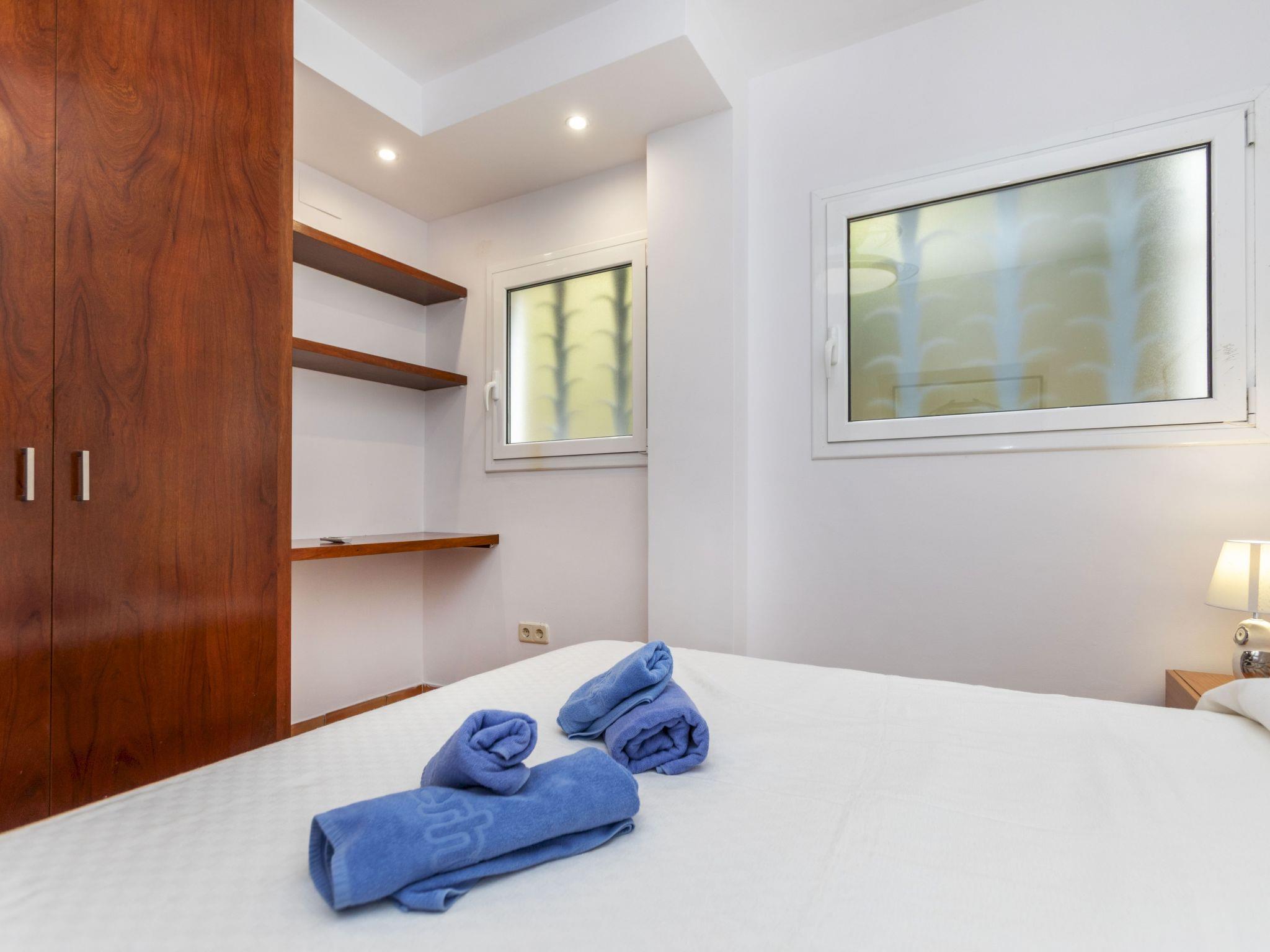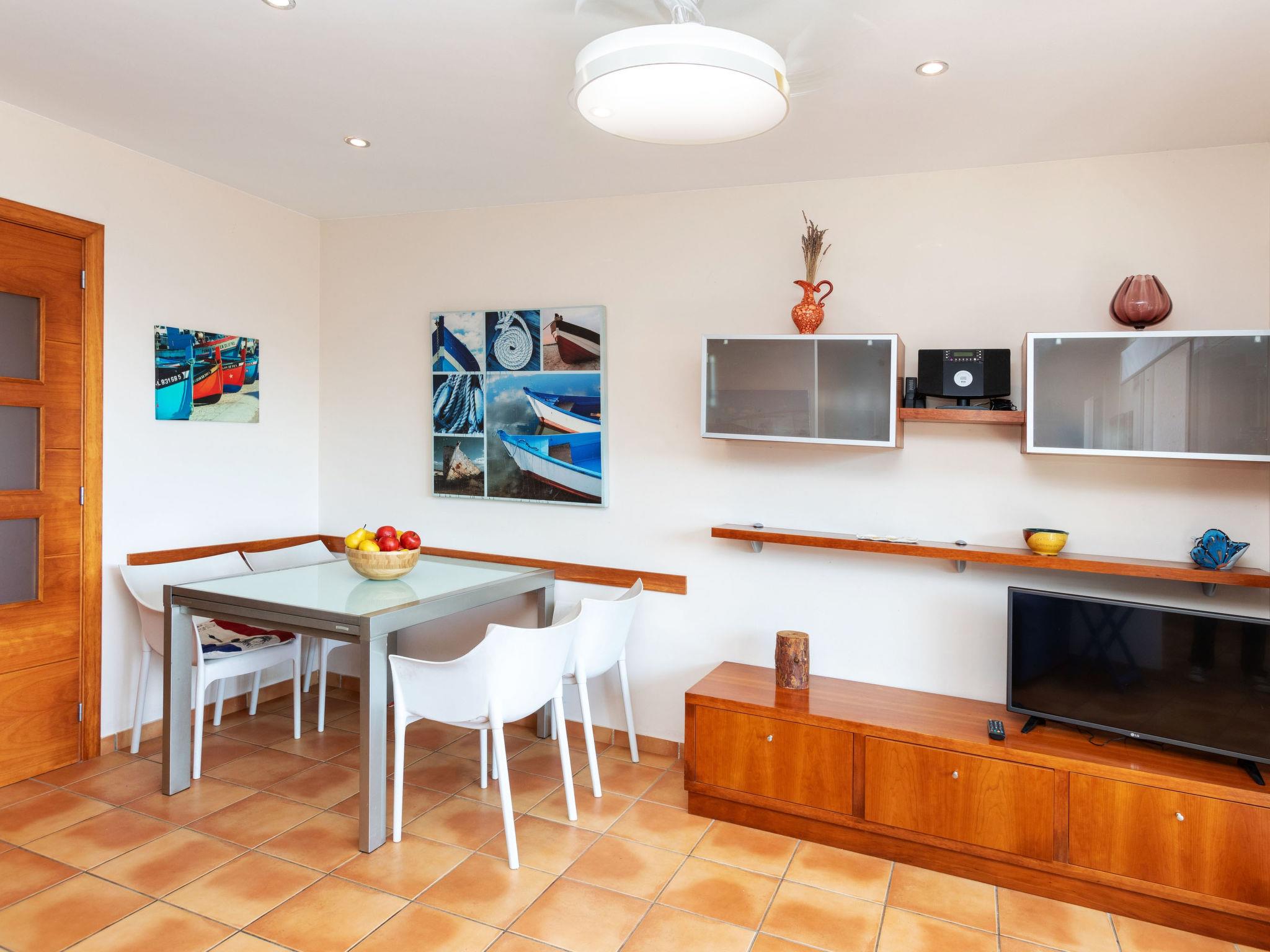 "Codolar", 3-room apartment 80 m2. Partly in 2025, practical and comfortable furnishings: living/dining room with dining table, digital TV and fan. Exit to the terrace. 1 double bedroom with 1 french bed (150 cm, length 180 cm), fan. 1 double bedroom with 2 beds (90 cm, length 190 cm), fan. Open kitchen (oven, dishwasher, 4 ceramic glass hob hotplates, toaster, kettle, microwave, freezer, electric coffee machine) with dining table. Exit to the terrace. Shower/WC. No heating option. Large terrace. Terrace furniture, deck chairs. Panoramic view of the sea, the mountains and the resort. Facilities: washing machine, iron, children's high chair, baby cot for up to 2 year olds, hair dryer. Internet (WiFi, free). Garage (1 car), height 175 cm, width 250 cm. HUTG-006859 // Reg. Nr.: ESFCTU00001702100040131400000000000000000HUTG-0068599