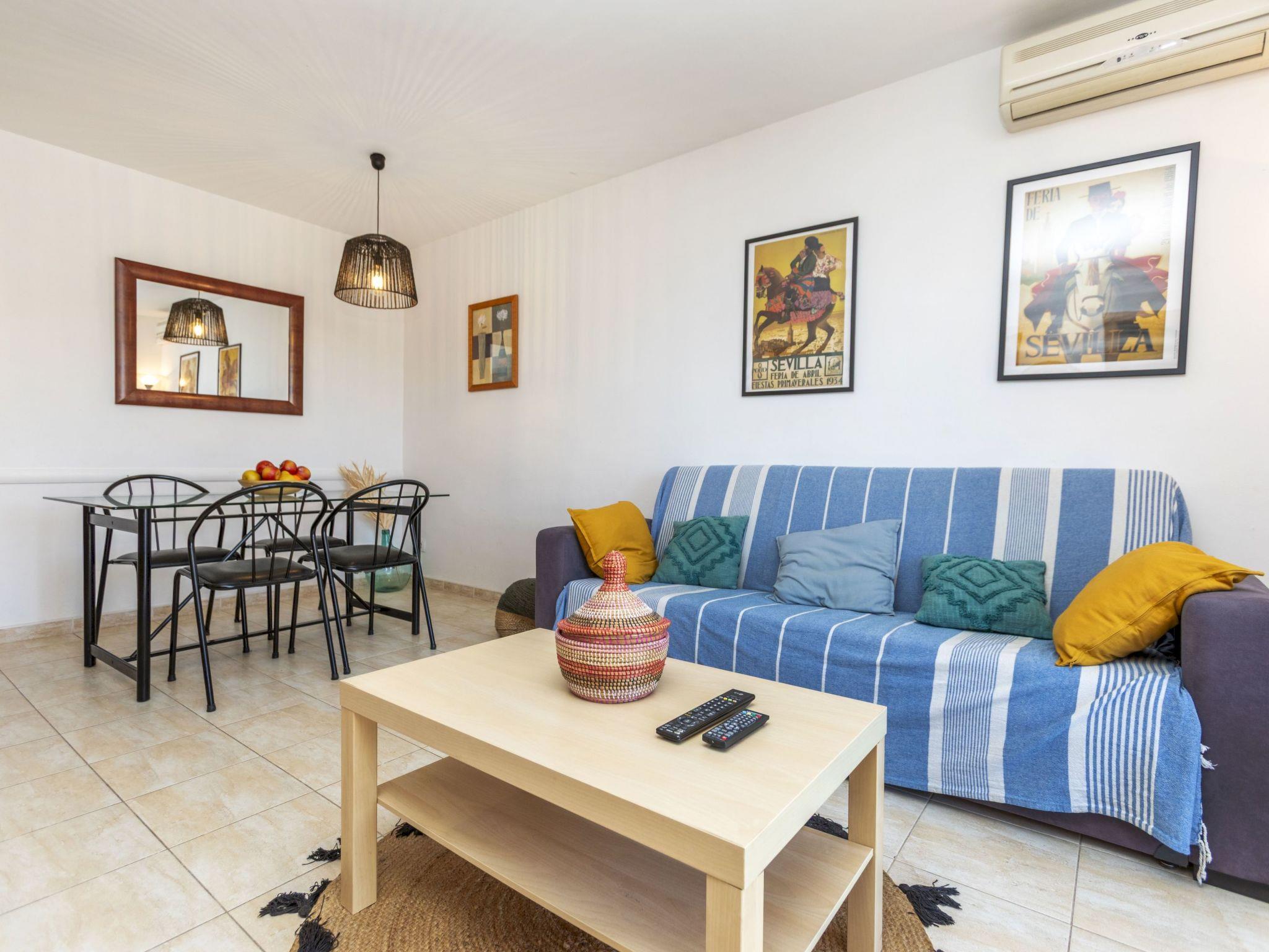 "Miramar Hills", 3-room apartment 44 m2. Bright, very practical and cosy furnishings: living/dining room with dining table, digital TV and air conditioning. Exit to the terrace. 1 double bedroom with 1 french bed (1 x 140 cm, length 190 cm). 1 room with 1 x 1 bunk beds (90 cm, length 190 cm), 1 french bed (1 x 140 cm, length 190 cm). Kitchenette (2 ceramic glass hob hotplates, toaster, kettle, microwave, electric coffee machine). Shower/WC. Terrace furniture, sitting area. Distant view of the sea, the resort and the town. Facilities: washing machine, hair dryer. Internet (WiFi, free). Please note: fridge without freezer. TV only ES. HUTG-017780 // Reg. Nr.: ESFCTU00001702100043795500000000000000000HUTG-0177802