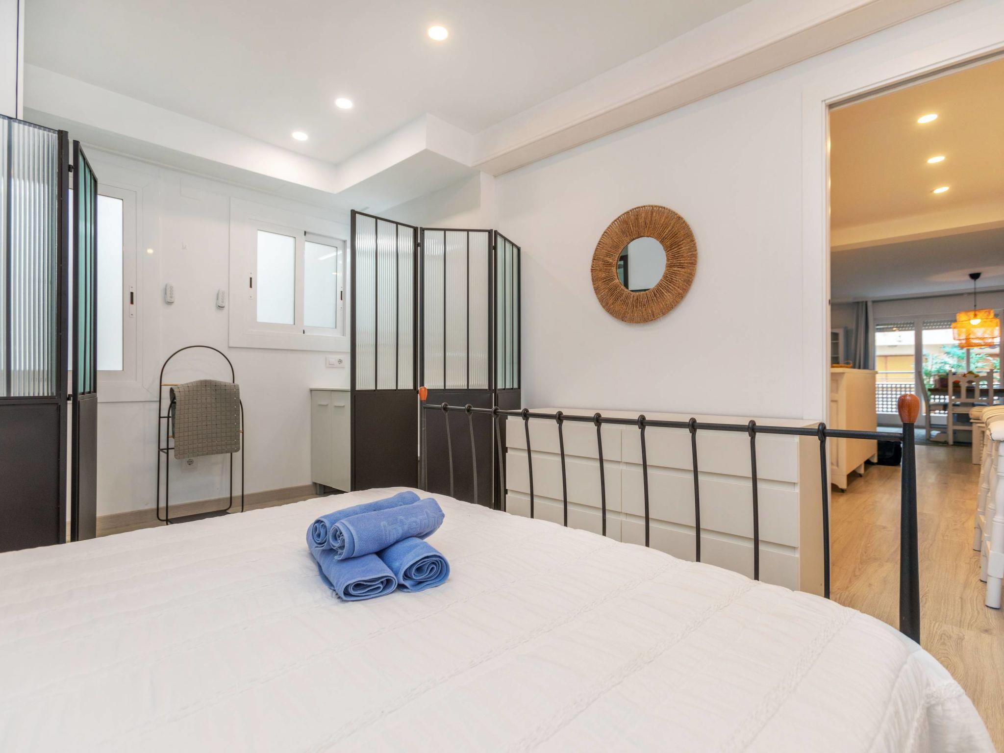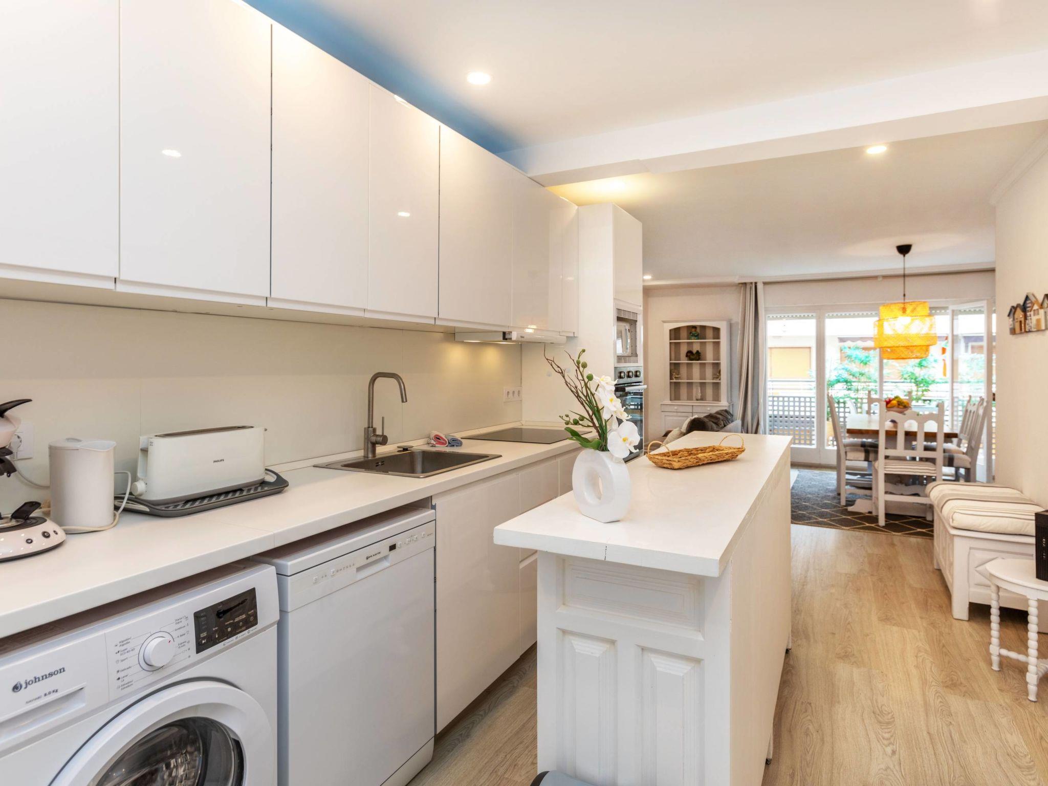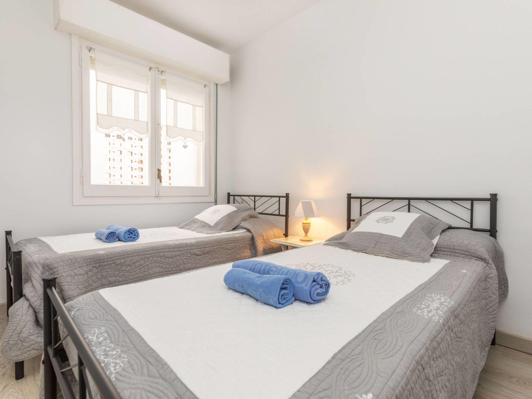 "Serenity", 3-room apartment 64 m2. Spacious and bright in 2024, comfortable and cosy furnishings: living/dining room with dining table, digital TV and fan. Exit to the terrace. 1 double bedroom with 1 french bed (160 cm, length 190 cm), shower/WC and fan. 1 double bedroom with 2 beds (90 cm, length 190 cm), bath/WC and fan. Open kitchen in the entrance (oven, dishwasher, 4 ceramic glass hob hotplates, toaster, kettle, microwave, freezer, electric coffee machine). No heating option. Terrace furniture. View of the resort. Facilities: washing machine, iron, hair dryer. Internet (WiFi, free). Parking space n 35, height 175 cm, width 200 cm. Please note: suitable for families apartment street side. TV only ES. HUTG-018053-69 // Reg. Nr.: ESFCTU00001702100042368200000000000000HUTG-018053-690