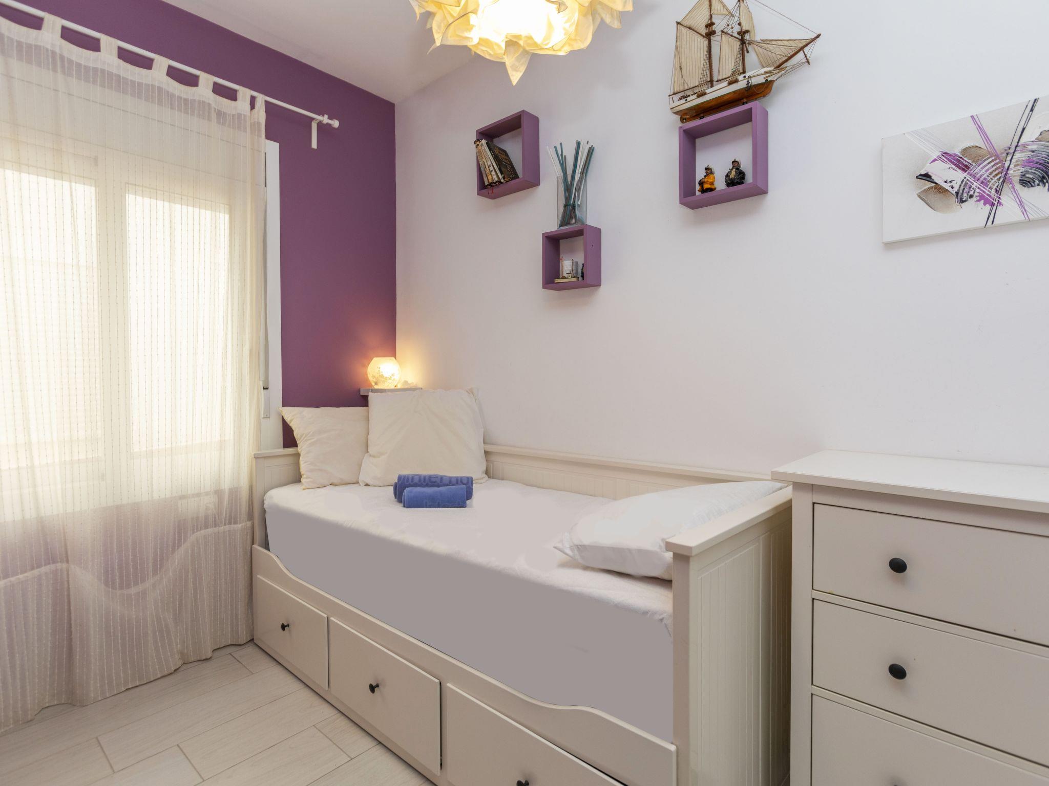 4-room apartment on 2 levels. Bright, cosy furnishings: living/dining room with satellite TV, digital TV and electric heater. Exit to the terrace. Kitchen (oven, dishwasher, 4 ceramic glass hob hotplates, microwave, electric coffee machine). Upper floor: 2 rooms, each room with 1 french bed and electric heater. 1 room with 1 bed and 1 x 2 bunk beds. 2 showers/WC. Gas heating. Large terrace 12 m2. Terrace furniture. Marvellous view of the sea. Facilities: washing machine, iron (extra), hair dryer. Suitable for families. Maximum 1 pet/ dog allowed. HUTG007143 // Reg. Nr.: ESFCTU000017021000408757000000000000000000HUTG0071437