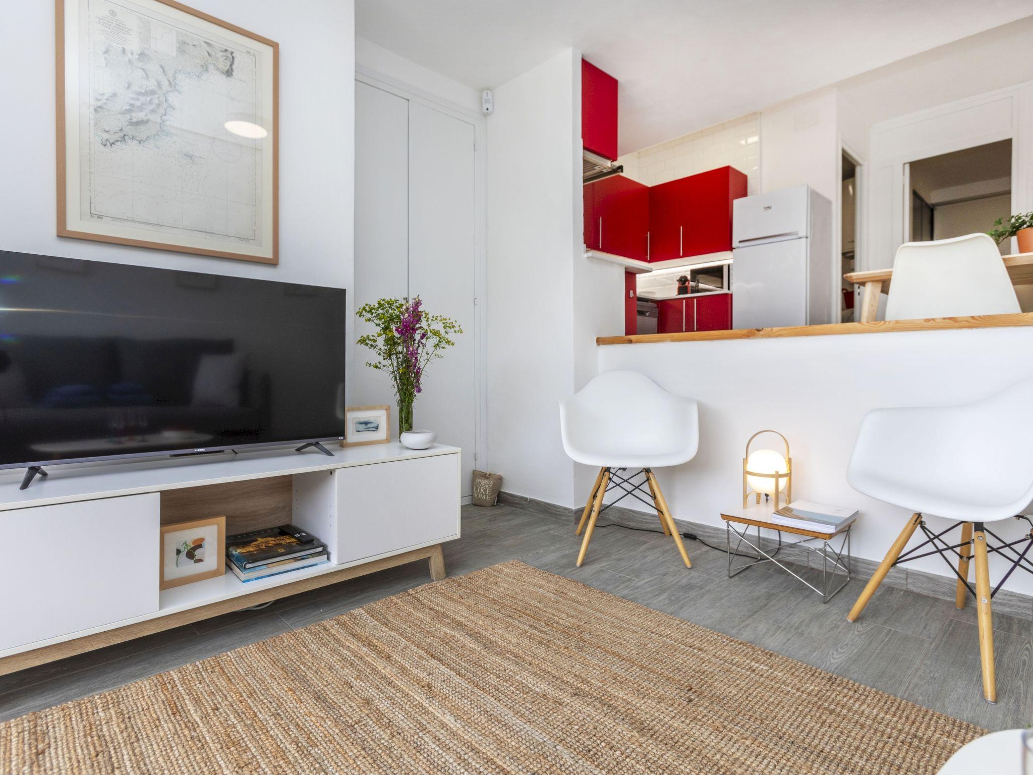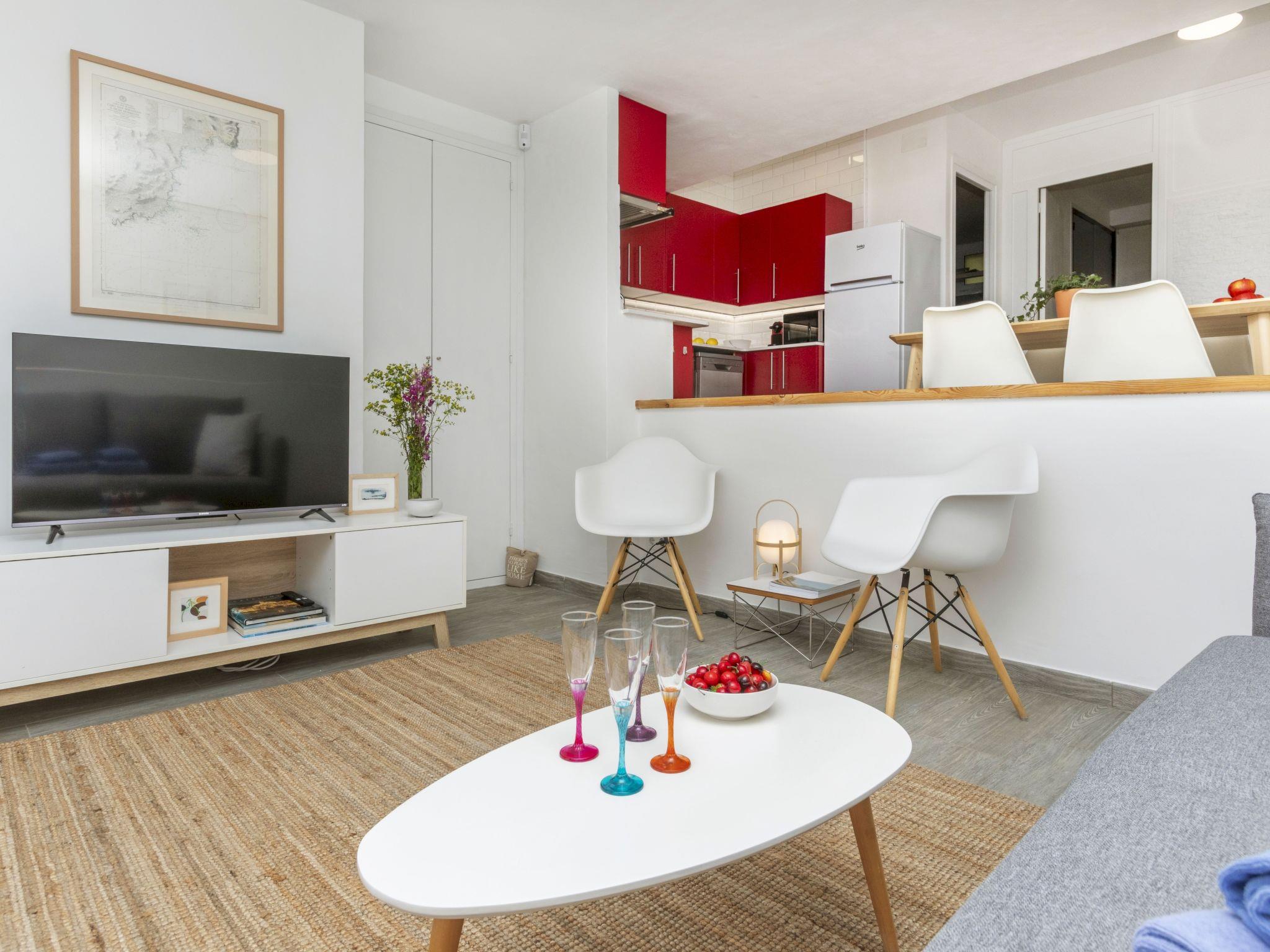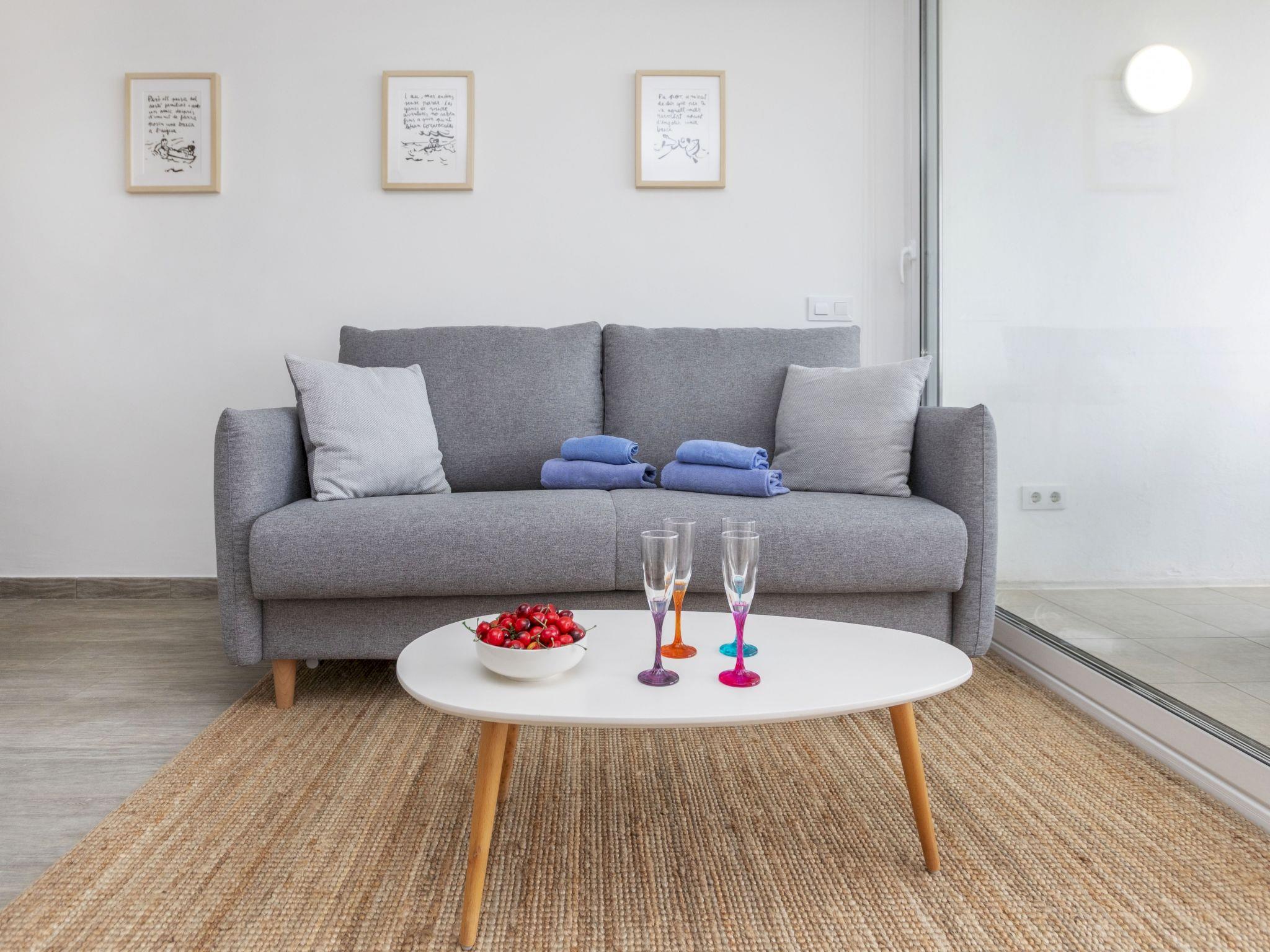 "Garbi Salions", 2-room apartment 50 m2. Spacious and bright, practical and comfortable furnishings: living/dining room with 1 sofabed (140 cm, length 200 cm), dining table, satellite TV and international TV channels. Exit to the terrace. 1 double bedroom with 1 french bed (150 cm, length 190 cm). Kitchenette (dishwasher, 3 induction hot plates, toaster, kettle, microwave, freezer, electric coffee machine) with air conditioning and forced-air heating. Shower/WC. Terrace 10 m2. Terrace furniture. View of the sea and the resort. Facilities: washing machine, iron, hair dryer. Internet (WiFi, free). Please note: suitable for families. TV only FR, DE. HUTG044620 // Reg. Nr.: ESFCTU000017021000403813000000000000000000HUTG0446202