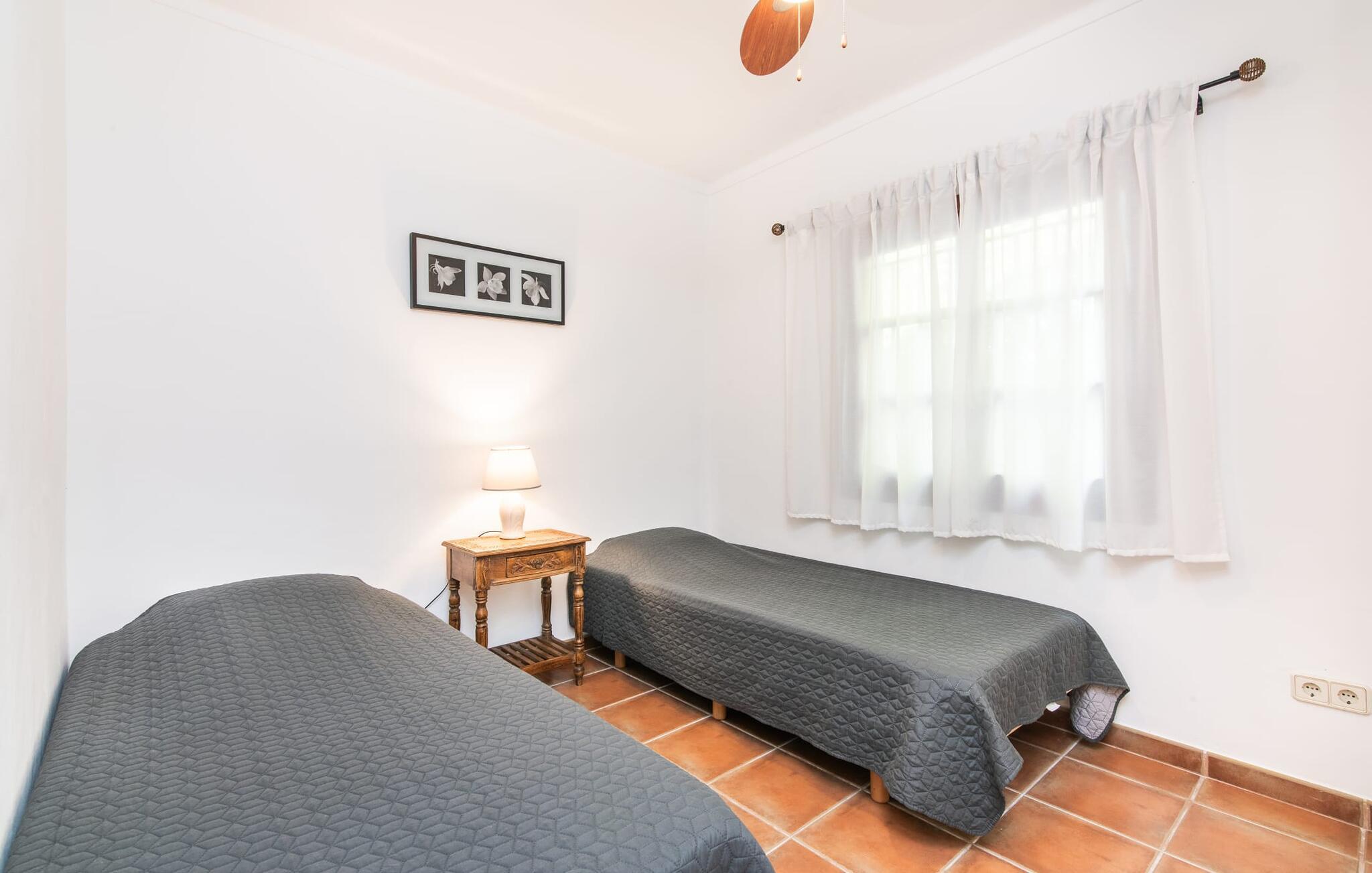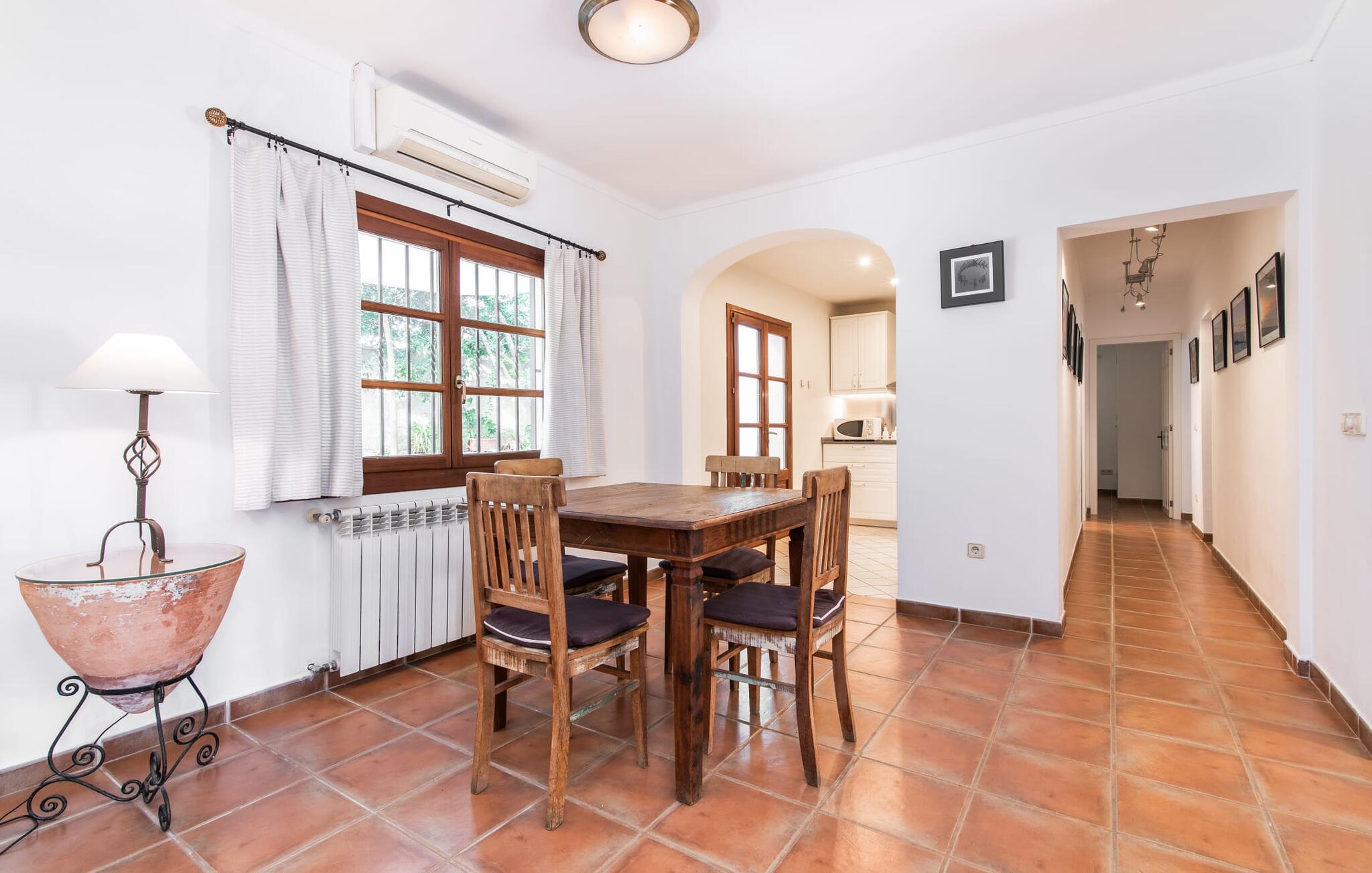Den drømmende byvilla "Tres Mares" er særligt familievenlig og ligger strategisk i nærheden af Cala Millor. Trods den ret centrale beliggenhed byder den smukt anlagte ejendom med naturstenterrasser og frodige blomster og grønne planter på behageligt privatliv. Dette sikres af en privatlivsvæg, der indrammer hele udendørsområdet - ideel til små børn, fordi ingen farer vild her. Nyd jeres morgenkaffe i det afslappende verandasiddeområde og byd velkommen til en afslappende feriedag. I kan nyde omfattende solbadning på de medfølgende liggestole. I kan derefter køle af i den praktiske udendørs bruser. Afslut dagen med en afslappet grillaften i den attraktive udendørs spiseplads. Huset er ikke kun en fornøjelse inden I går i seng, men tilbyder også behagelig komfort i løbet af dagen. Et hyggeligt, familievenligt interiør venter på jer med en stue med aircondition. En spiseplads inviterer jer til at blive hængende og er et smart alternativ til dens udendørs modstykke. Det fuldt udstyrede køkken gør også det bevidste valg af selvforplejning til ren feriefornøjelse. I tre soveværelser, hver udstyret med en dobbeltseng eller to enkeltsenge, kan hele familien eller vennerne finde en behagelig nattesøvn på samme niveau. Det smarte badeværelse med bruser og badekar samt et ekstra gæstetoilet tilbyder komfort for alle gæster. Hvis I har brug for eller vil kombinere arbejde og ferie: Med en god internetforbindelse er “Tres Mares” også velegnet til et hjemmekontor. Villaen "Tres Mares" er et feriehus i den smukke kystby Cala Millor på den østlige del af øen. Der eller i de nærliggende middelalderlandsbyer Son Servera, Capdepera eller Artà kan I shoppe og opdage seværdigheder som drypstenshulerne Coves des Dracs. Det er kun 5 minutters kørsel til den lange sandstrand i Cala Millor, som også ligger inden for gåafstand.