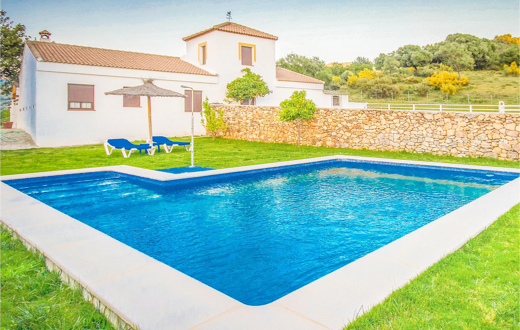 I Los Fresnos ligger dette skønne feriehus med egen pool og plads til ti personer. I feriehuset er der fem soveværelser, et badeværelse, et moderne køkken, et stor stue med kamin, tre sofaer og et stort spisebord med stole og desuden er der trådløst gratis internet. Da huset ligger ude på landet, er der ikke drikkevand i hanerne, men ejer sørger for at der står en flaske mineralvand til jer ved ankomst. I bor i et skønt landskab med heste og en spektakulær udsigt over Fatimaslottet. Poolen er omgivet af plæner og der er fire solstole hvor I kan slappe af og nyde ferielivet 100 %. Fra ejendommens store indgangsport er der ca. 50 meters asfalteret vej op til huset. Der er en komplet aflukket hal med plads til at parkere op til seks biler. Feriehuset ligger i et fredeligt område i nærheden af byen med mange seværdigheder. I bor ikke langt fra byen Ubrique, som er kendt verden over for sine smukke lædervarer. Los Fresnos er absolut en ferierejse værd.