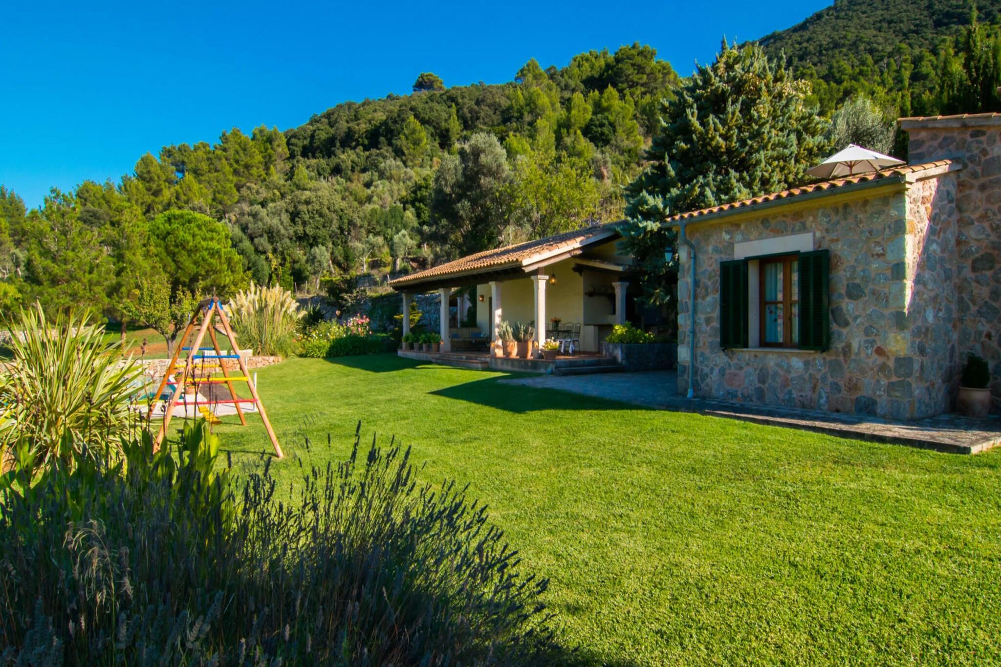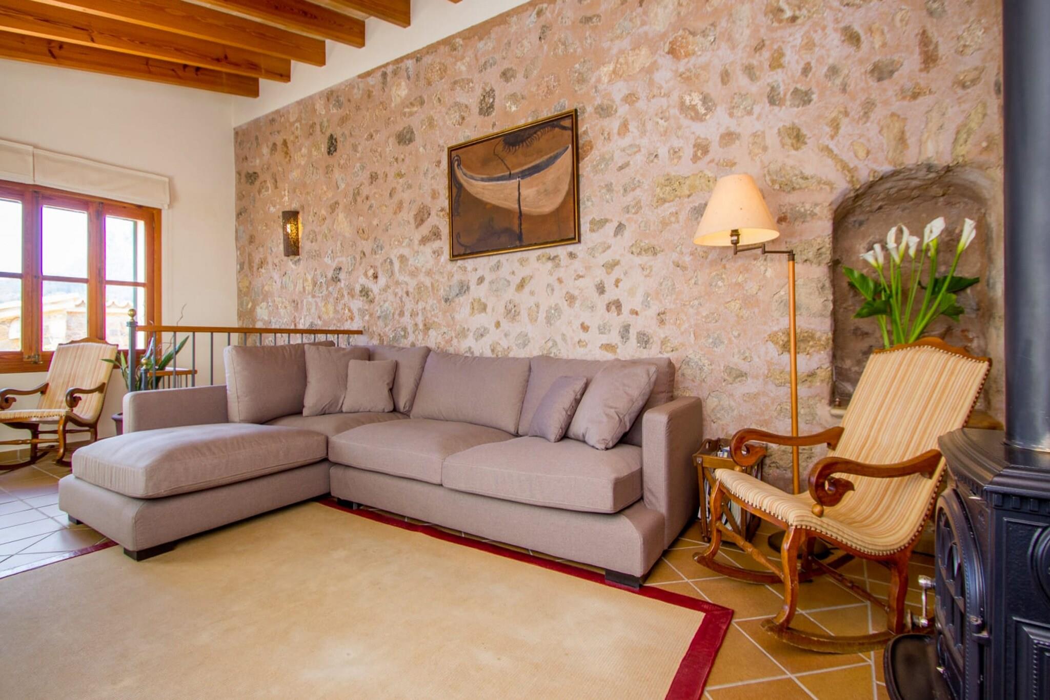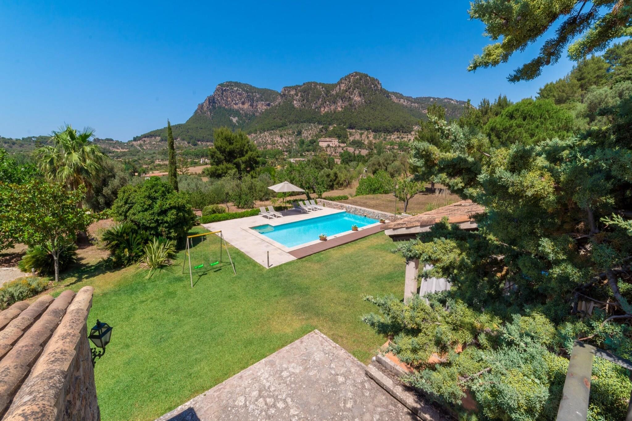 Denne storslåede ejendom Son Beltran beliggende i hjertet af Valldemossa, Mallorca, tilbyder en uforglemmelig ferieoplevelse. Denne luksuriøse ejendom, der administreres af 5StarsHome, blander klassisk stil med moderne bekvemmeligheder, hvilket giver et enestående tilflugtssted. Med 4 rummelige soveværelser, herunder et loftsværelse med et hyggeligt badeværelse, sikrer Son Beltran maksimal komfort for op til 8 gæster. Det fuldt udstyrede køkken, komplet med en charmerende pejs, inviterer dig til at tilberede hjemmelavede måltider, mens de lyse spisestue og stuer – også med pejse – skaber det perfekte sted at samles med familie og venner. Uderummet er Son Beltrans sande perle. Ejendommen ligger på en stor 15.000 kvadratmeter stor grund og har en stor 55 kvadratmeter stor pool, et solarium i natursten og flere terrasser med en fantastisk panoramaudsigt over bjergene og havet. Uanset om du slapper af ved poolen, nyder et måltid på grillpladsen eller ser solen gå ned over horisonten, er dette udendørsområde designet til at lade dig slappe af og nyde de fredfyldte omgivelser. Haven omfatter også legeområder for børn, hvilket gør den til et ideelt sted for familienydelse. Son Beltran ligger kun 1,8 km fra den maleriske by Valldemossa og tilbyder nem adgang til charmerende lokale butikker, restauranter og kulturelle begivenheder. En kort køretur vil tage dig til fantastiske strande som Cala Deìa og Puerto de Valldemossa, mens den pulserende by Palma kun ligger 35 minutter væk. Lejelicensnummeret er ETV/3791