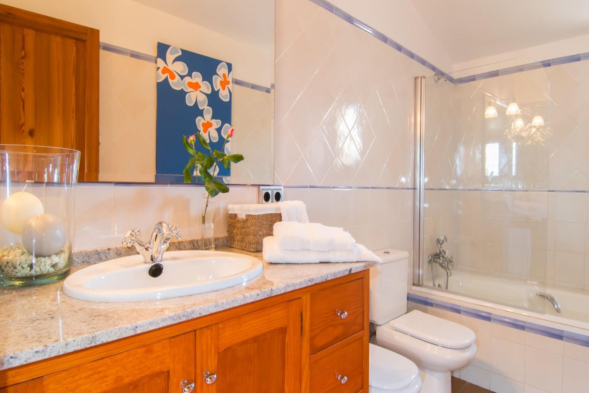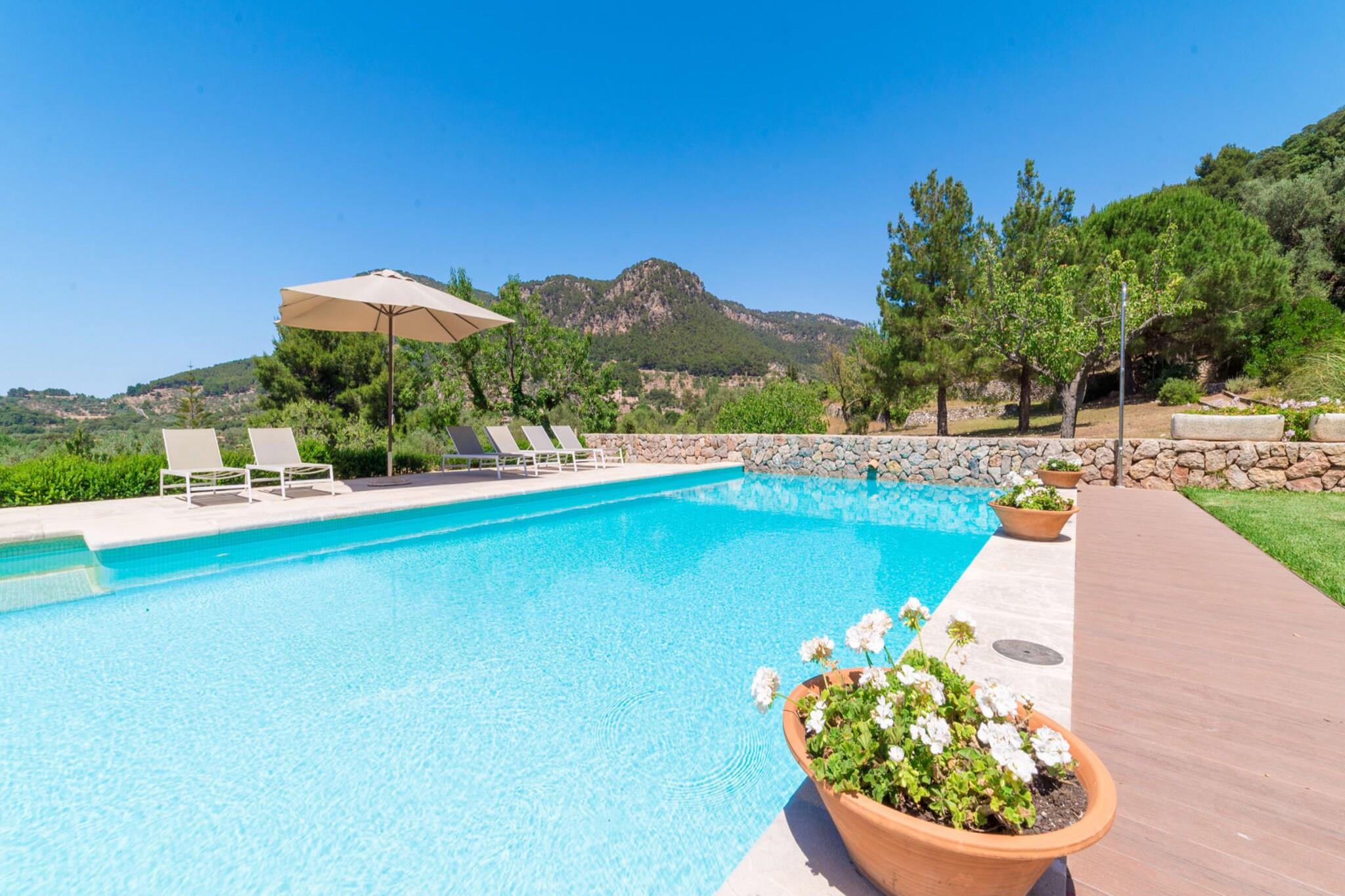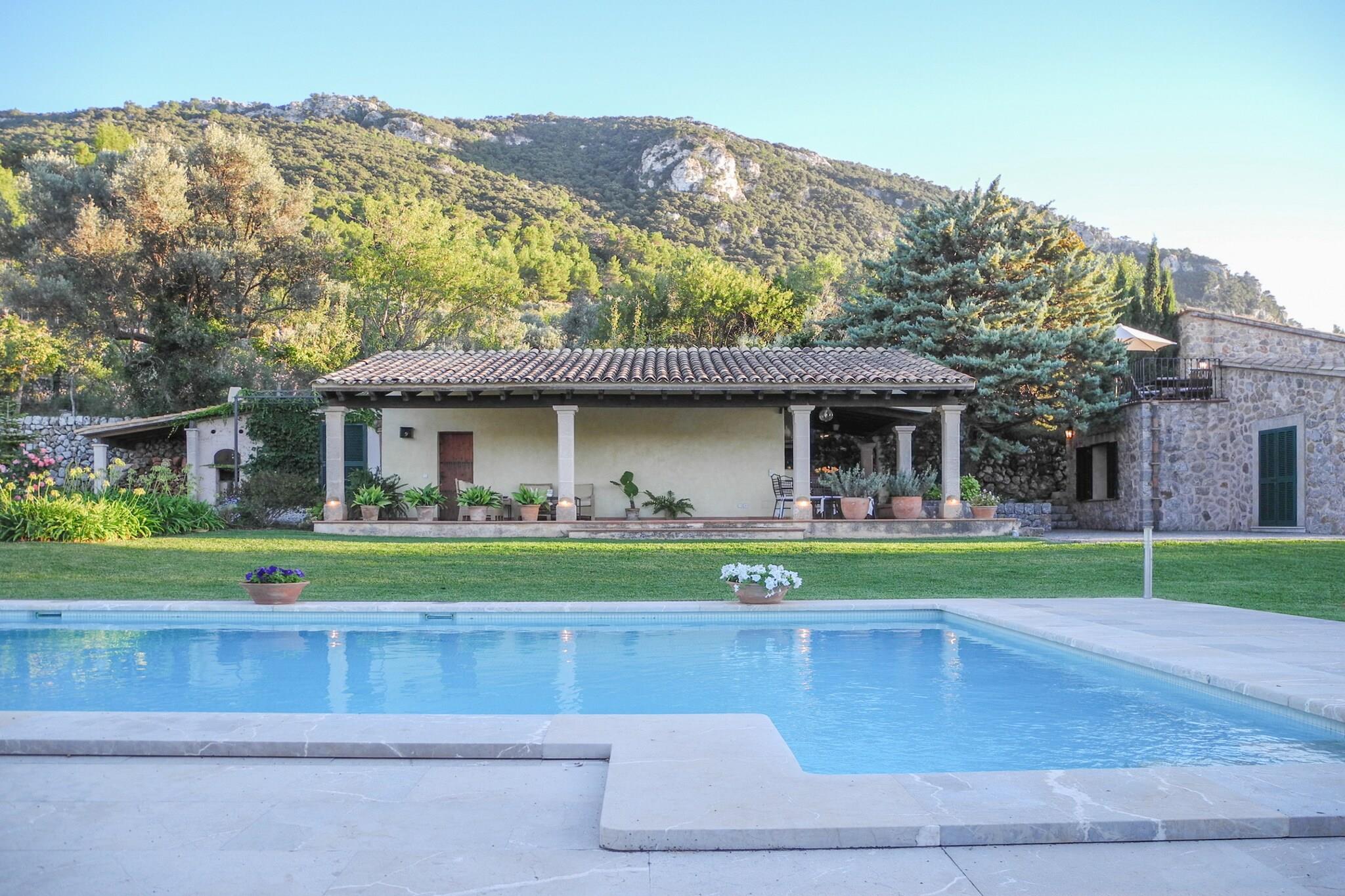 Denne storslåede ejendom Son Beltran beliggende i hjertet af Valldemossa, Mallorca, tilbyder en uforglemmelig ferieoplevelse. Denne luksuriøse ejendom, der administreres af 5StarsHome, blander klassisk stil med moderne bekvemmeligheder, hvilket giver et enestående tilflugtssted. Med 4 rummelige soveværelser, herunder et loftsværelse med et hyggeligt badeværelse, sikrer Son Beltran maksimal komfort for op til 8 gæster. Det fuldt udstyrede køkken, komplet med en charmerende pejs, inviterer dig til at tilberede hjemmelavede måltider, mens de lyse spisestue og stuer – også med pejse – skaber det perfekte sted at samles med familie og venner. Uderummet er Son Beltrans sande perle. Ejendommen ligger på en stor 15.000 kvadratmeter stor grund og har en stor 55 kvadratmeter stor pool, et solarium i natursten og flere terrasser med en fantastisk panoramaudsigt over bjergene og havet. Uanset om du slapper af ved poolen, nyder et måltid på grillpladsen eller ser solen gå ned over horisonten, er dette udendørsområde designet til at lade dig slappe af og nyde de fredfyldte omgivelser. Haven omfatter også legeområder for børn, hvilket gør den til et ideelt sted for familienydelse. Son Beltran ligger kun 1,8 km fra den maleriske by Valldemossa og tilbyder nem adgang til charmerende lokale butikker, restauranter og kulturelle begivenheder. En kort køretur vil tage dig til fantastiske strande som Cala Deìa og Puerto de Valldemossa, mens den pulserende by Palma kun ligger 35 minutter væk. Lejelicensnummeret er ETV/3791