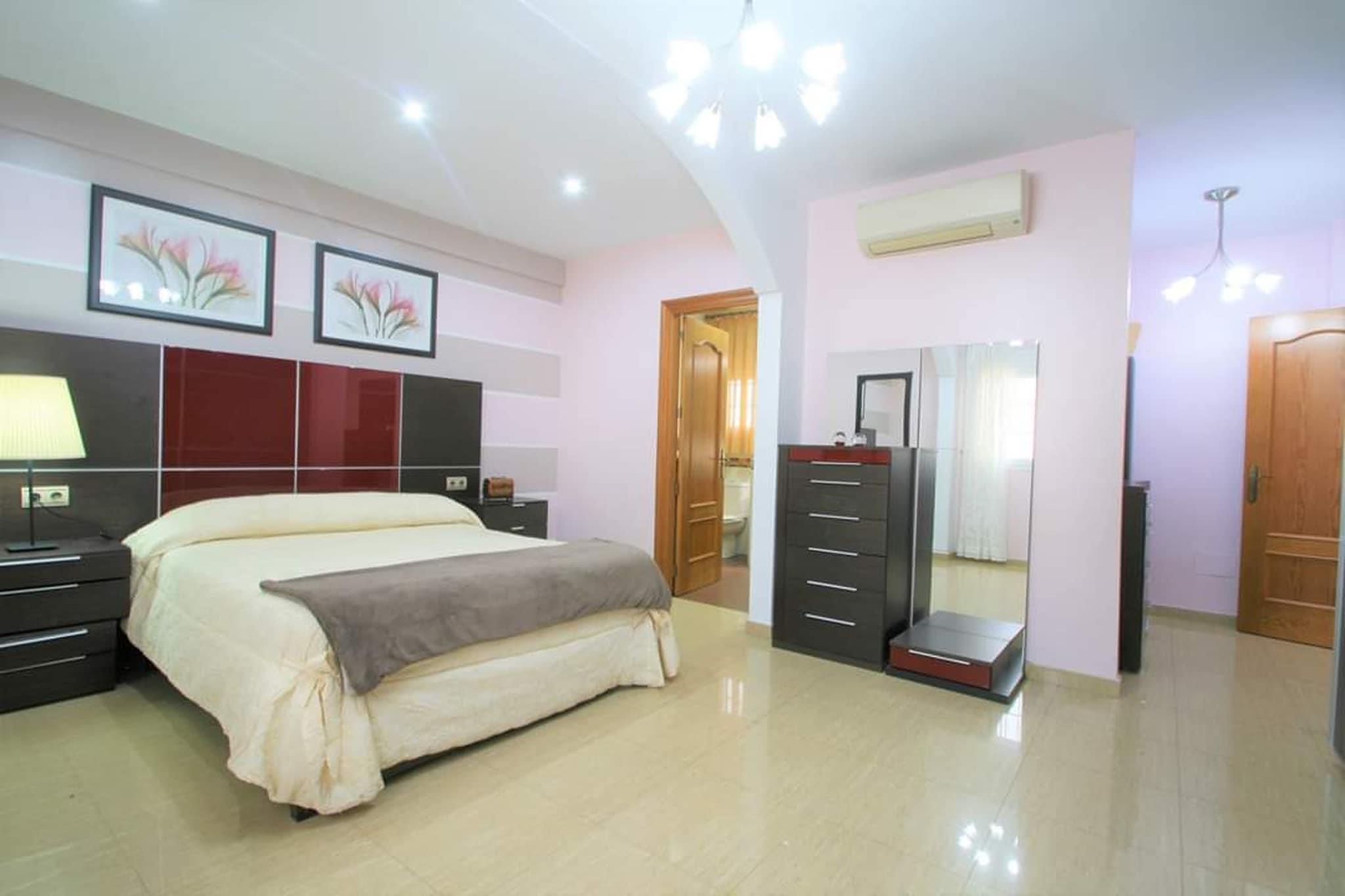 Dette rummelige feriehus i Andalusien byder på en privat swimmingpool perfekt til forfriskende dukkerter og en veludstyret have ideel til afslapning og socialt samvær. Beliggende i en fredelig beliggenhed, er det et fremragende valg for store grupper eller familier, der søger komfort og ro. Efter en dag med udforskning kan du slappe af i det beroligende boblebad for ultimativ afslapning. Naturelskere vil sætte pris på den nærliggende skov kun 10 km væk, som byder på smukke vandre- og vandrestier. De fantastiske strande Agua Amarga (16 km) og Playa Cala de Enmedio (17 km) er let tilgængelige for sol- og havelskere. Et besøg i den charmerende by Mojácar, 40 km væk, er en fantastisk mulighed for en dagstur fyldt med kultur og lokal smag. Til ejendommen hører parkeringsfaciliteter og havemøbler til 10 gæster, perfekt til fælles måltider og drikkevarer udendørs. Almería Lufthavn er bekvemt placeret 43 km fra hjemmet, hvilket sikrer nem adgang for rejsende.