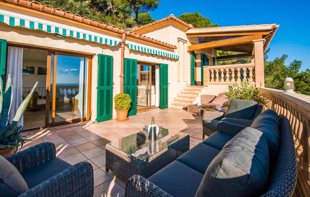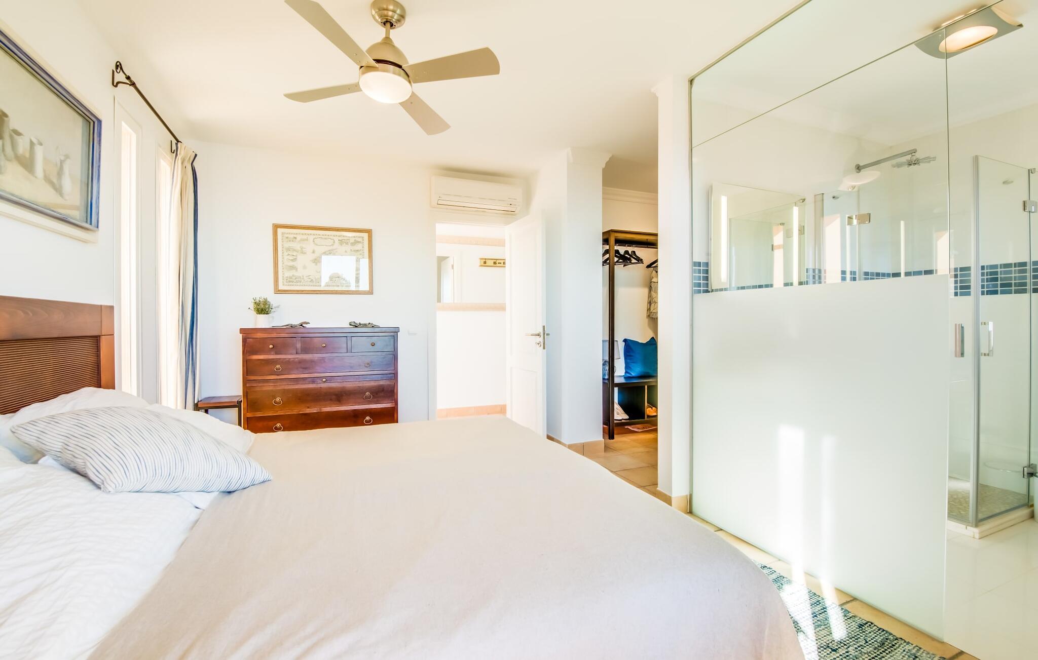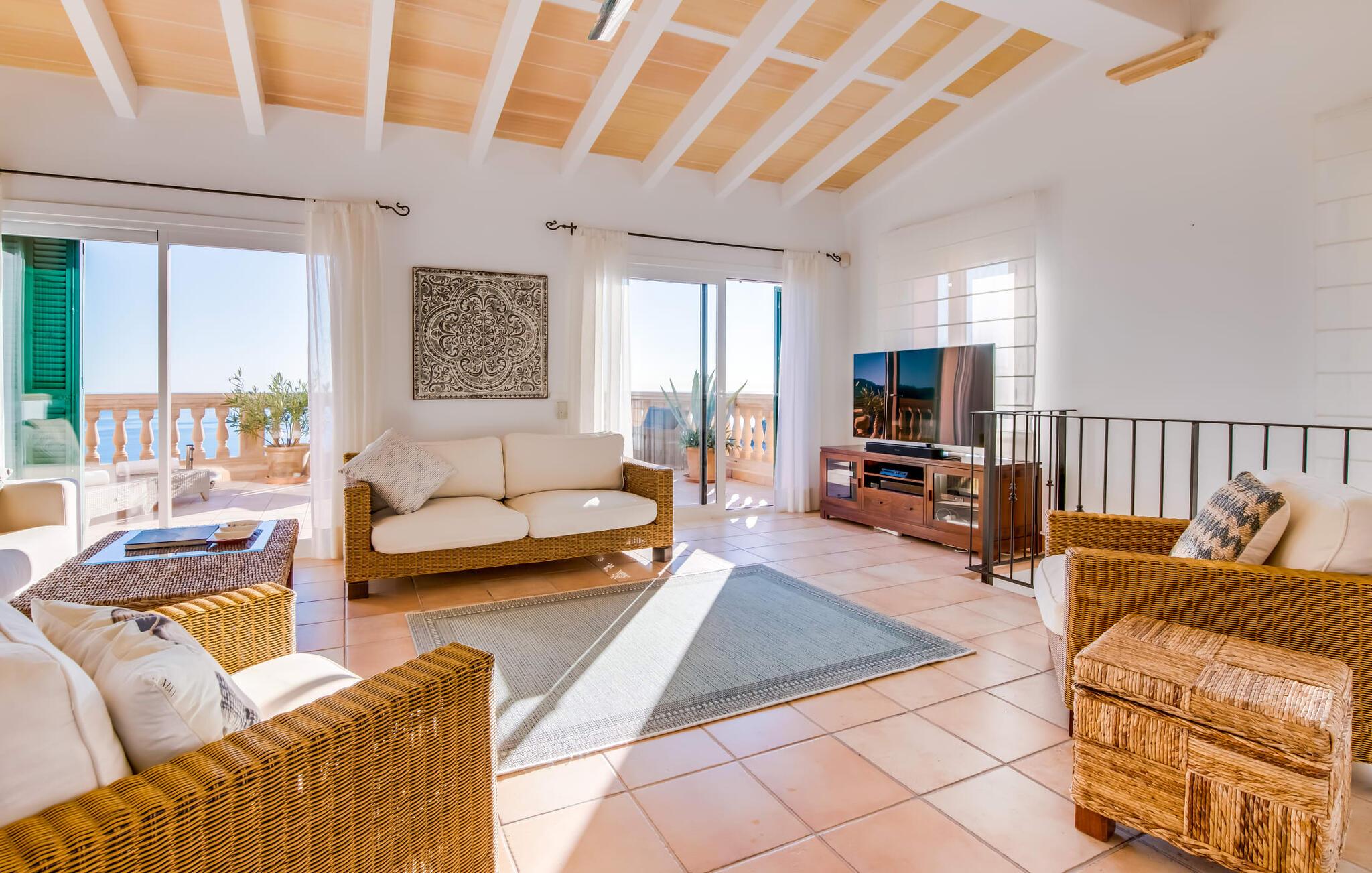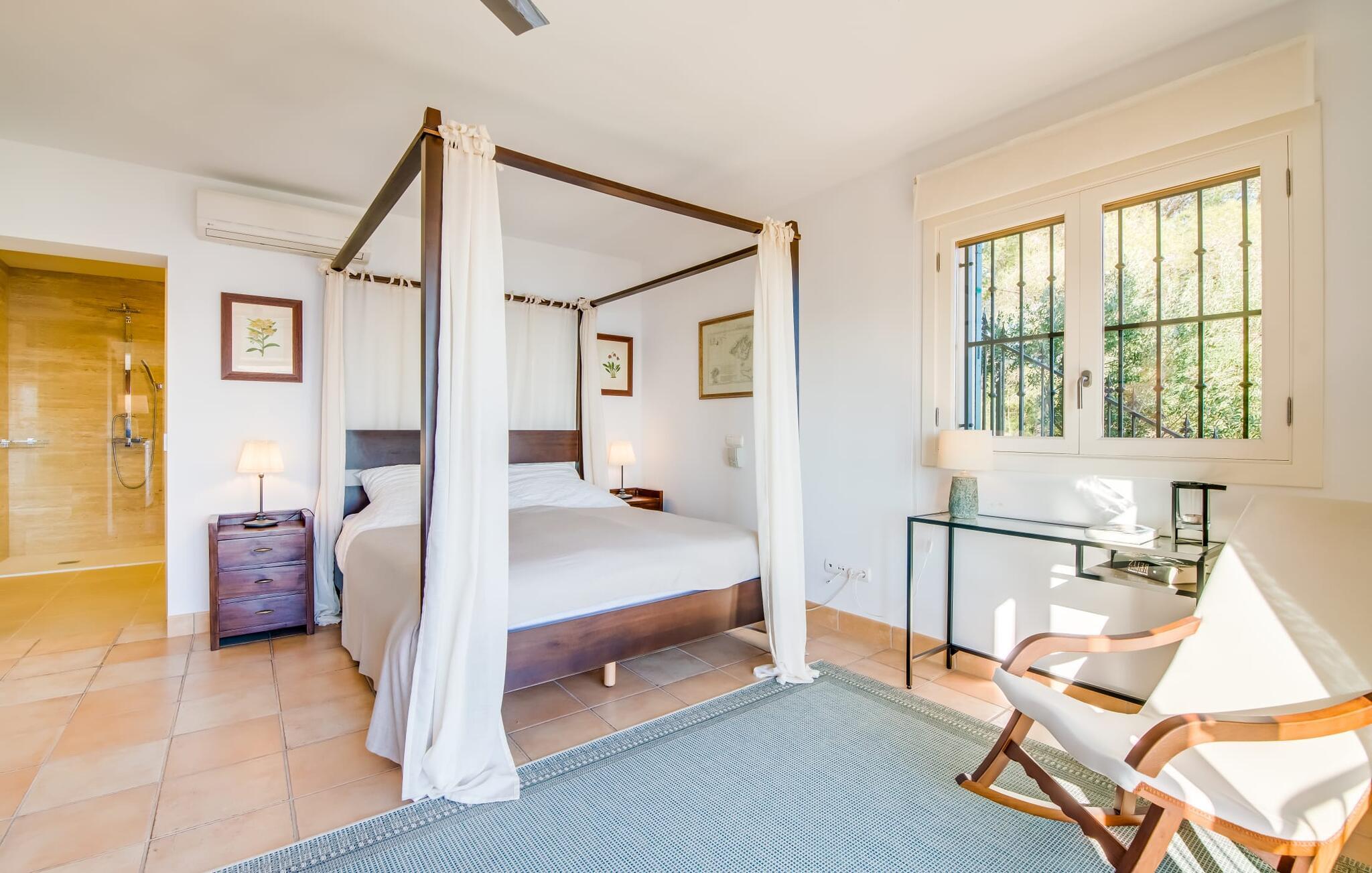 Velkommen til Villa "Ventimar", jeres perfekte tilflugtssted fra hverdagen. Denne villa ligger i en høj position og tilbyder en betagende panoramaudsigt over Middelhavet, perfekt til afslapning og afslapning. Nyd tre niveauer af terrasser, hvor I kan nyde jeres morgenkaffe på den øverste overdækkede terrasse, komplet med spiseplads og bærbar grill. Den midterste terrasse har et moderne sofasæt i rattan og loungestole til afslapning, mens den nederste terrasse har en infinity-pool, der udvisker grænsen mellem pool og hav. Indvendigt er villaen fordelt på tre plan, oversvømmet med naturligt lys gennem store vinduespartier og lyse hvide vægge. For komfort året rundt er den udstyret med varme og aircondition. I stueetagen er der tre soveværelser med dobbeltsenge, to af dem med eget badeværelse, alle med havudsigt. Det store soveværelse har en luksuriøs himmelseng med direkte havudsigt. På øverste etage er der åbne opholds- og spiseområder under højt til loftet, en mezzanin chill-out zone og en mørk træ spiseplads med åbent køkken, hvilket gør Villa "Ventimar" til et ideelt tilflugtssted at slappe af og nyde. Villaen "Ventimar" er beliggende i et roligt boligområde omkring 2 km nord for kystbyen Canyamel og er et ideelt sted for at udforske den nordøstlige del af øen. For foden af urbaniseringen er der to små, lidet besøgte bugter. Canyamel med sin større strand, supermarkeder og nogle gode restauranter kan hurtigt nås i bil. Ud over andre attraktive strande byder Cala Ratjada og Cala Millor på shoppingmuligheder og et udvalg af aftenunderholdning.