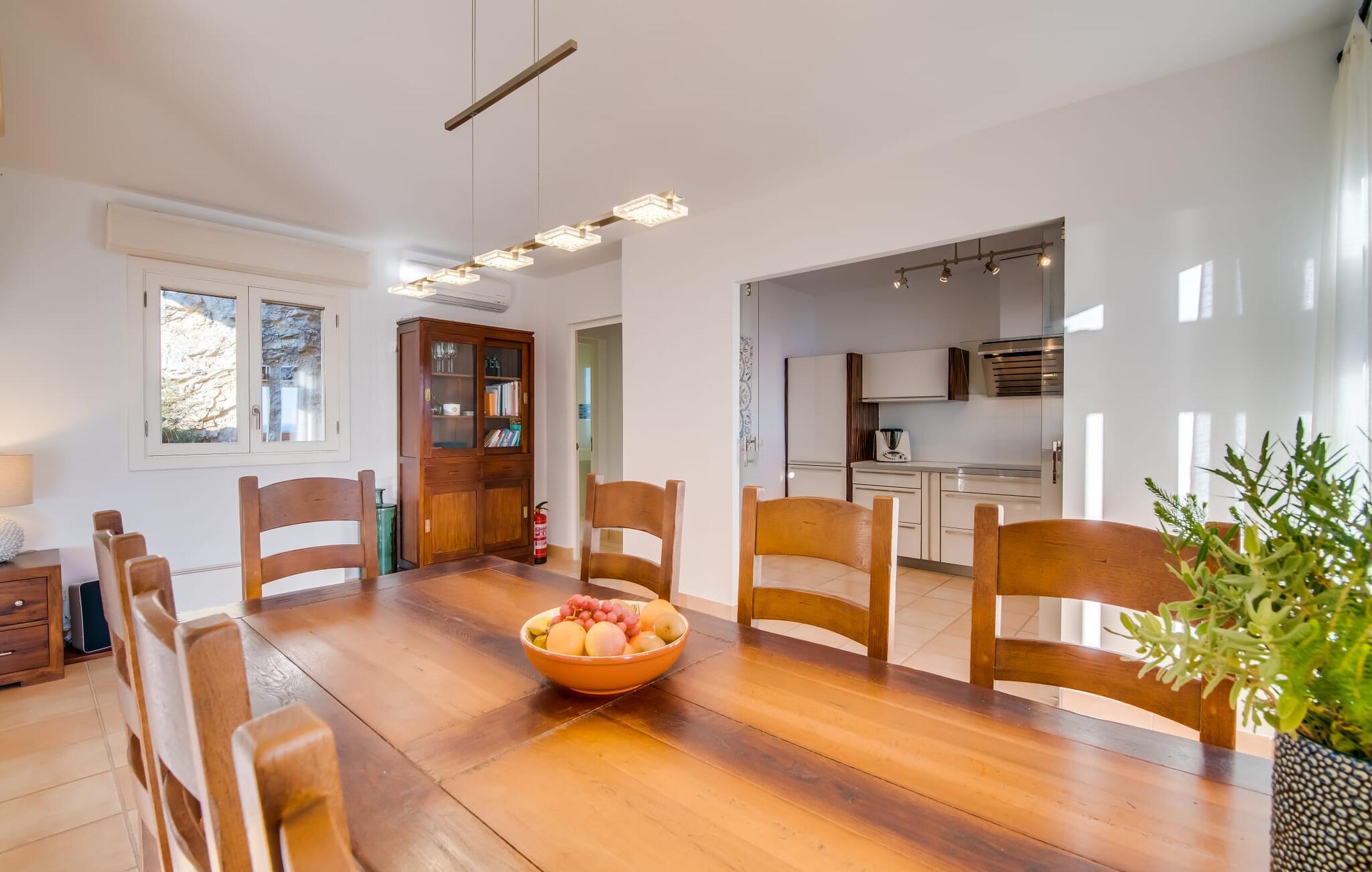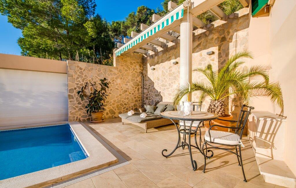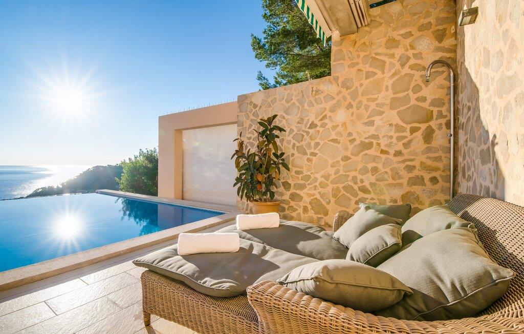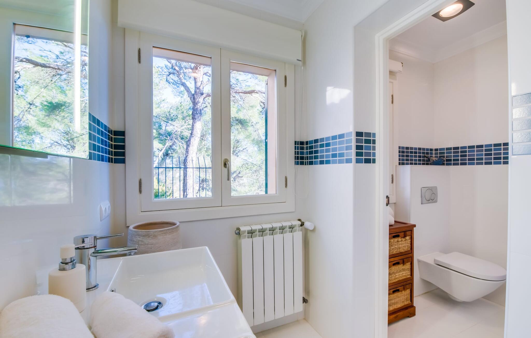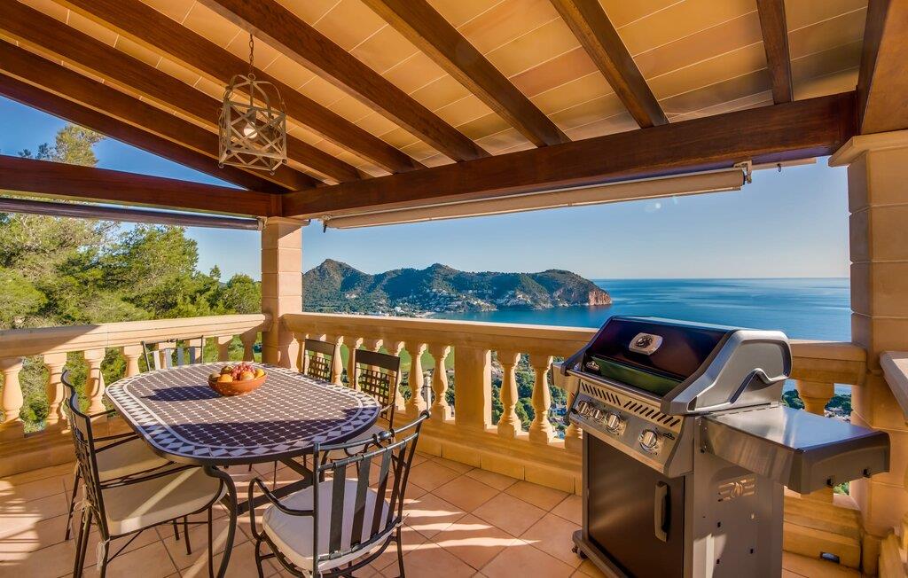 Velkommen til Villa "Ventimar", jeres perfekte tilflugtssted fra hverdagen. Denne villa ligger i en høj position og tilbyder en betagende panoramaudsigt over Middelhavet, perfekt til afslapning og afslapning. Nyd tre niveauer af terrasser, hvor I kan nyde jeres morgenkaffe på den øverste overdækkede terrasse, komplet med spiseplads og bærbar grill. Den midterste terrasse har et moderne sofasæt i rattan og loungestole til afslapning, mens den nederste terrasse har en infinity-pool, der udvisker grænsen mellem pool og hav. Indvendigt er villaen fordelt på tre plan, oversvømmet med naturligt lys gennem store vinduespartier og lyse hvide vægge. For komfort året rundt er den udstyret med varme og aircondition. I stueetagen er der tre soveværelser med dobbeltsenge, to af dem med eget badeværelse, alle med havudsigt. Det store soveværelse har en luksuriøs himmelseng med direkte havudsigt. På øverste etage er der åbne opholds- og spiseområder under højt til loftet, en mezzanin chill-out zone og en mørk træ spiseplads med åbent køkken, hvilket gør Villa "Ventimar" til et ideelt tilflugtssted at slappe af og nyde. Villaen "Ventimar" er beliggende i et roligt boligområde omkring 2 km nord for kystbyen Canyamel og er et ideelt sted for at udforske den nordøstlige del af øen. For foden af urbaniseringen er der to små, lidet besøgte bugter. Canyamel med sin større strand, supermarkeder og nogle gode restauranter kan hurtigt nås i bil. Ud over andre attraktive strande byder Cala Ratjada og Cala Millor på shoppingmuligheder og et udvalg af aftenunderholdning.