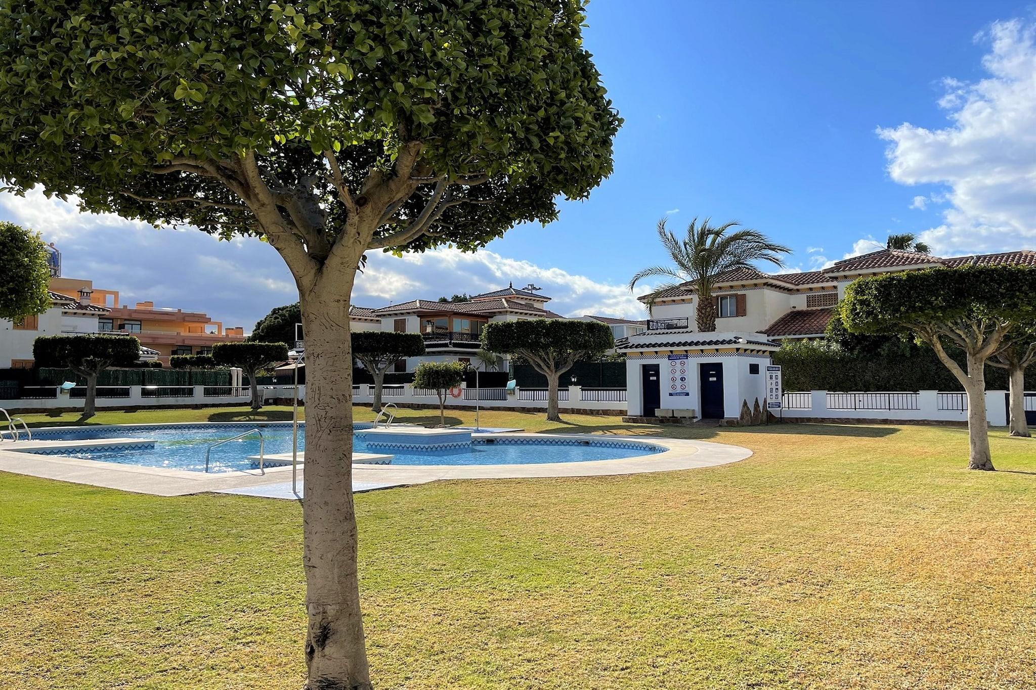 Lejlighed beliggende i Vera Playa, Costa de Almería. Det er beliggende i stueetagen, med en stor indhegnet udendørs terrasse på ca. 40 m2 og har en stue, køkken med alle de nødvendige hårde hvidevarer til et behageligt og behageligt ophold, vaskerum, to soveværelser og et badeværelse med badekar eller bruser. . Derudover er der på udendørsområdet Wi-Fi, et græsareal og tropiske planter og en fælles pool. I hele lejligheden og soveværelserne er der skabe, aircondition, opvaskemaskine, farve-tv med fjernbetjening; American Bar; køkken med komplet køkkenredskaber og udstyret med keramisk kogeplade, ovn, mikroovn med grill, brødrister, kaffemaskine og køleskab. Soveværelserne har et klædeskab, sengetøj; med strygejern og bræt; og generelt indrettet og forberedt til at leve komfortabelt. Det inkluderer linned og håndklæder. Indhegnet samfund med adgang via automatisk barrierekontrol. Der er direkte adgang til stranden, som kan nås til fods på kun 2 minutter.