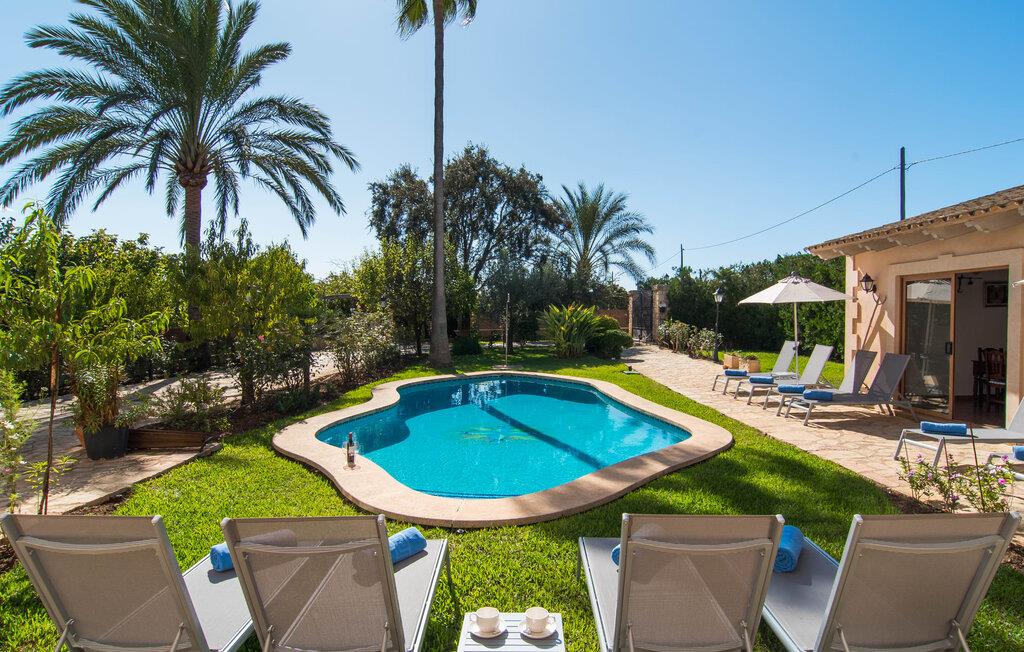Villaen “Vernissa de Apolonia” ligger på en 14.000 m² stor grund midt i en smuk middelhavshave med meterhøje palmer, der svajer blidt i vinden. Midtpunktet er en stor, skrånende pool med udendørs bruser og område til solbadning. På de komfortable liggestole kan I lytte til de blide lyde fra det rolige Mallorca uden for den slagne turiststi. Dette er et vidunderligt sted at slappe af og nyde jeres tid sammen fuldt ud. De små gæster kan virkelig slippe dampen ud på den omfattende ejendom. Bliver I sulten, kan I hurtigt tilberede en pizza til de sultne munde: Der er udekøkken med kulgrill i et lille udhus lige ved poolen. Det udendørs badeværelse er naturligvis også en del af denne ejendoms luksusfunktioner. Der er et stort spisebord på den overdækkede, skyggefulde terrasse: det perfekte tilflugtssted til de varme eftermiddagstimer. Haven er ikke kun et sted at drømme om dagen: smart udendørsbelysning bader ejendommen i magisk lys om aftenen. Husets indretning lever fuldt ud op til de forventninger, som det statelige ydre vækker: En blanding af rustikke og moderne elementer samt en venlig, varm farveskala viser ejernes høje standard, som har skabt en ægte stemning. Opholds- og spisestue er i stueetagen. Komfortable sofaer foran pejsen inviterer jer til at slappe af; Med Smart TV kan I se jeres yndlingsserier selv på ferie. To store spiseborde i træ, hvoraf det ene er i det rummelige, fuldt udstyrede køkken, giver plads til alle gæster. Et badeværelse med dagslys og et af de fem soveværelser er også placeret i stueetagen. Dette soveværelse er indrettet med to enkeltsenge, en kommode og et stort klædeskab. På øverste etage finder I yderligere fire soveværelser, hver til to personer. De individuelt indrettede værelser udstråler en indbydende, hyggelig atmosfære. Et af værelserne har et walk-in-closet, der nemt kan rumme selv den mest omfattende feriegarderobe. På øverste etage er der desuden et dagslysbadeværelse med stor håndvask. Den smukke ejendom uden umiddelbare naboer ligger i en betagende beliggenhed midt i et middelhavskulturlandskab mellem kystbyen Can Picafort og kommunen Santa Margalida. Vi er i regionen Plà de Mallorca, en frugtbar slette, der grænser op til naturreservatet S'Albufera mod nordvest. Parc Natural er åben for offentligheden og byder på en unik naturoplevelse. Grundet husets gode forbindelse til det mallorcanske vejnet kan der nogle gange høres trafikstøj afhængig af vindretning og tidspunkt på dagen. Nyd jeres ferie i en uberørt region, der ikke kun imponerer jer med sit charmerende landskab, men også med sin nærhed til kysten og flere smukke strande. Can Picafort-stranden ligger omkring ti minutter væk i bil og er særlig populær blandt familier. Den mere stille Platja de Muro er heller ikke langt væk. Sejlads, dykning og windsurfing er en del af det brede udvalg af sportsgrene, der tilbydes i dette område, ligesom den altid populære golfsport. På Alcanada Golf Club kan I spille en 18-hullers bane med en betagende udsigt over kysten og havet. Tramuntana-bjergene kan også nås hurtigt fra jeres feriehus: vandrere og cyklister vil finde en række forskellige ruter til en bred vifte af behov. Denne villa ligger i landlige omgivelser nær kystbyen Can Picafort: de fine sandstrande i Alcúdia-bugten er kun få minutter væk. Både Can Picafort og Santa Margalida tilbyder en række shoppingmuligheder. I kan også drage fordel af adskillige sportslige og kulturelle tilbud i den mangfoldige region. Charmerende landsbyer i det indre af øen formidler et autentisk billede af øen; Kysten vil imponere jer med en farverig blanding af afslappende dage og pulserende natteliv.