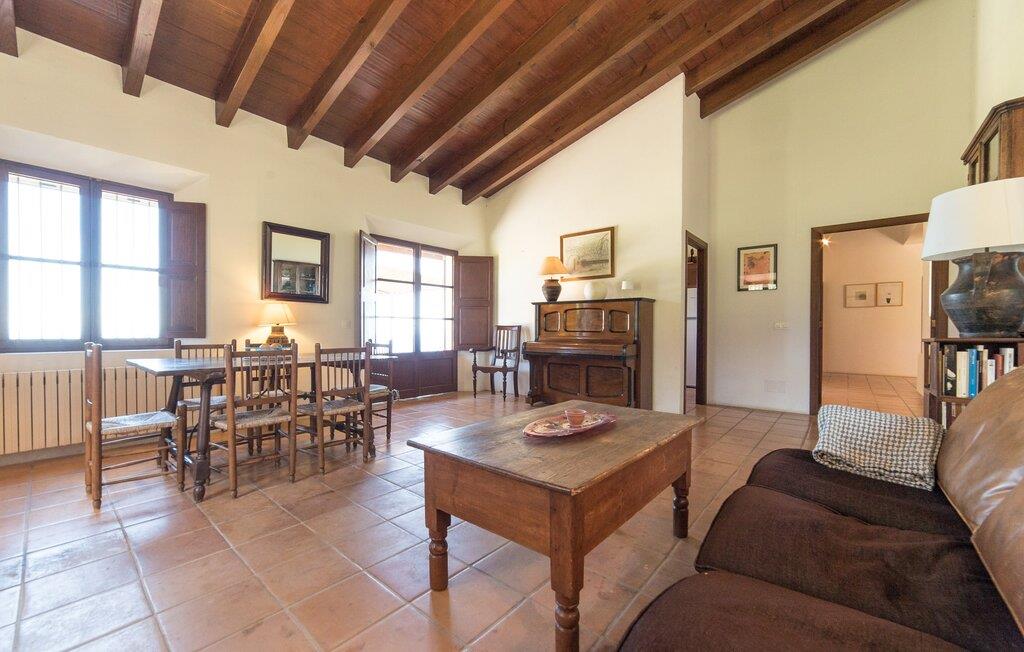Husets interiør er komfortabelt og tilbyder et personligt præg. Møbler af høj kvalitet og stilfulde detaljer venter jer i gangen. Den lyse stue/spisestue med højt til loftet kombinerer smagfuldt funktionalitet med komfort og charme. Den har et tv med dvd- og cd-afspiller, komfortable sofaer, gyngestole og et spisebord. Udvalgte elementer som den klassiske ovn, det elegante sofabord og træklaveret forstærker hyggefaktoren i dette centrale rum. De massive træbjælker i lofterne fuldender den hjemlige atmosfære. Køkkenet er rummeligt og fuldt udstyret. Ud over basale apparater som ovn og keramisk kogeplade er der også en kaffemaskine, elkedel og brødrister. Et særligt træk ved huset er det stemningsfulde, lille bibliotek med bogreoler. De meget smagfulde soveværelser tilbyder en afslappende oase i dette hjørne af verden. I et af de tre soveværelser har sengen udsigt over en naturstensvæg, som er imponerende oplyst og skaber en særlig behagelig effekt. Der er i alt fire senge til rådighed, der måler 0,90 x 1,90 m og en, der måler 1,50 x 1,90 m. Badeværelserne er enkle og funktionelle.
