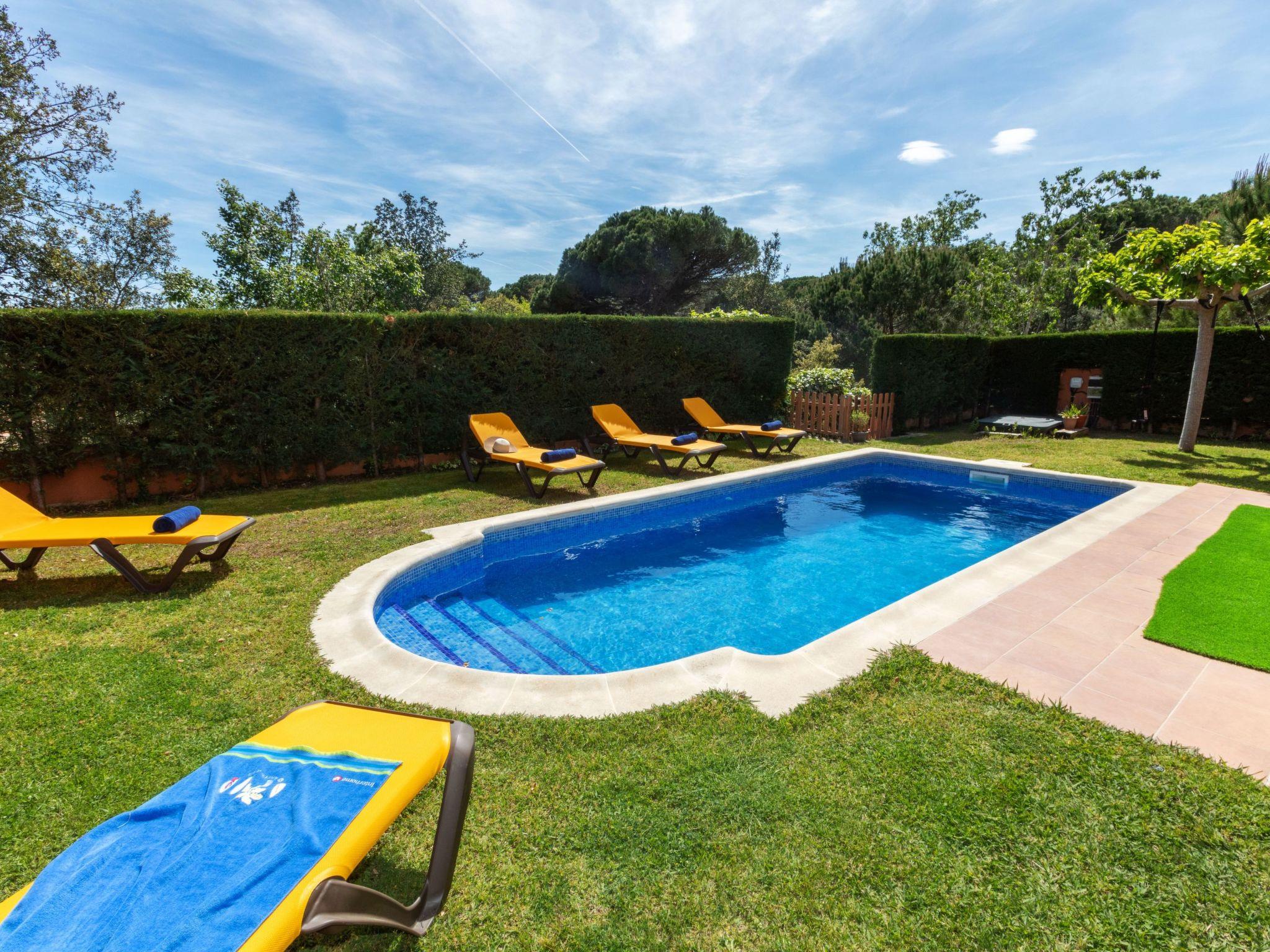 Modern, comfortable house "La Goba Parc", 2 storeys. On the outskirts, 4 km from the centre of Vidreres, in a quiet, sunny position, 1 km from the edge of the forest, 16 km from the sea, 16 km from the beach. Private: 600 m2 flowers and trees, beautiful garden to relax, swimming pool angular (8 x 4 m, depth 120 - 180 cm, seasonal availability: 06.Apr. - 18.Oct.). Shower/WC in the pool area, pergola, terrace (30 m2), garden furniture, barbecue. In the house: central heating system. Parking at the house. Shop 4 km, supermarket 4 km, restaurant 4 km, bar 4 km, bus stop 1 km. Cycle lane 1 km. Nearby attractions: Waterwolrd Lloret de mar 16 km, Marinland Blanes 24 km, Pueblo Medieval Tossa de mar 22 km, Girona 21 km. Please note: car recommended. Suitable for families. The owner does not accept any youth groups. Neighbourhood highly sensitive to noise. Quietness and good behaviour expected.