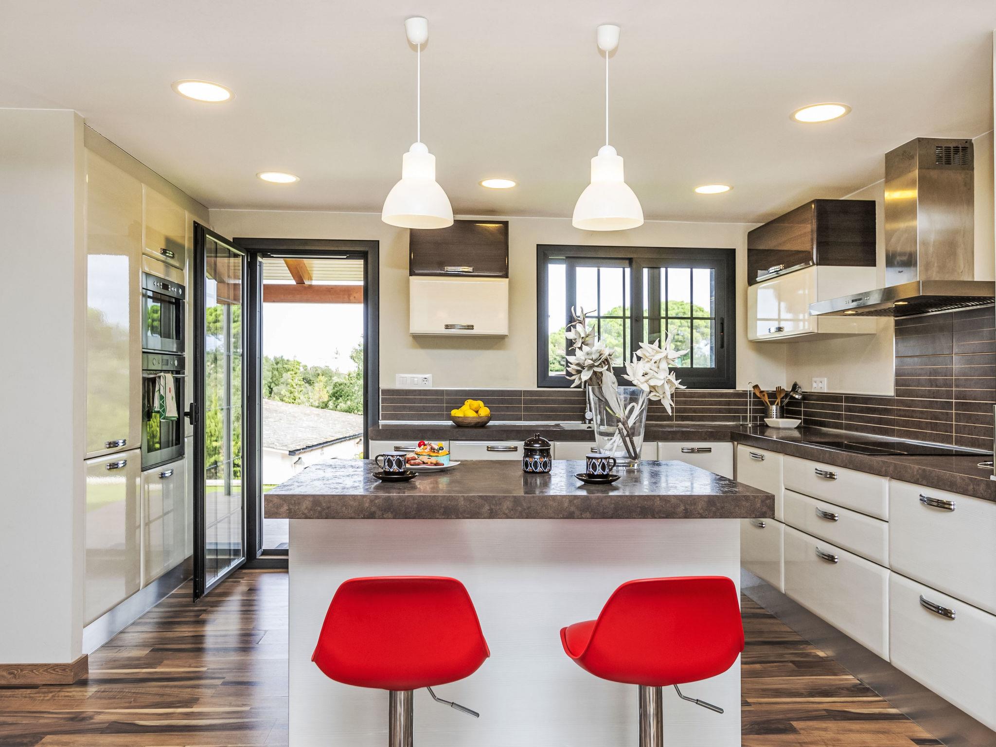 "Torre del Ven", 5-room house 160 m2. Very practical and comfortable furnishings: living/dining room with Scandinavian wood stove (only for decoration), dining table and digital TV. Exit to the patio, to the swimming pool. 1 double bedroom with 1 french bed (135 cm, length 190 cm). Open kitchen in the entrance (oven, dishwasher, 3 induction hot plates, toaster, kettle, microwave, freezer, electric coffee machine, cooking island). Shower/WC. No heating option. Upper floor: 2 double bedrooms, each room with 1 french bed (150 cm, length 190 cm). 1 double bedroom with 1 french bed (135 cm, length 190 cm). Bath/WC. Terrace furniture, barbecue, deck chairs, covered balcony. View of the mountains and the valley. Facilities: washing machine, iron, children's high chair, baby cot for up to 2 year olds, hair dryer. Internet (WiFi, free). Parking (fenced 3 cars). Please note: suitable for families. TV only ES. HUTG-046108 // Reg. Nr.: ESFCTU00001701800083297200000000000000000HUTG-0461080