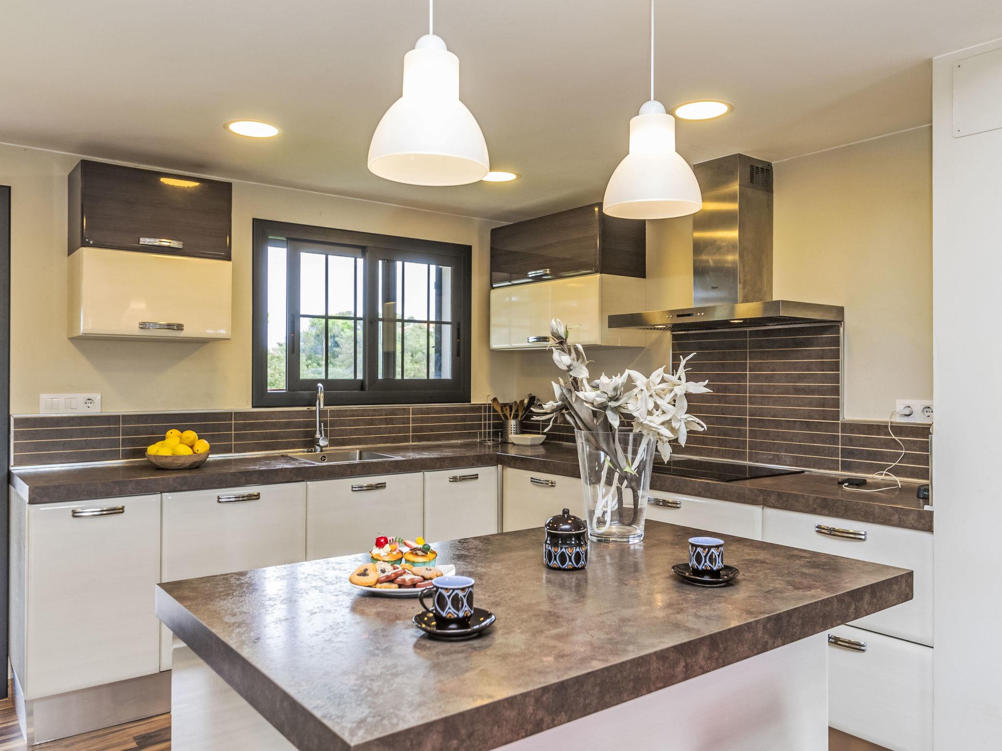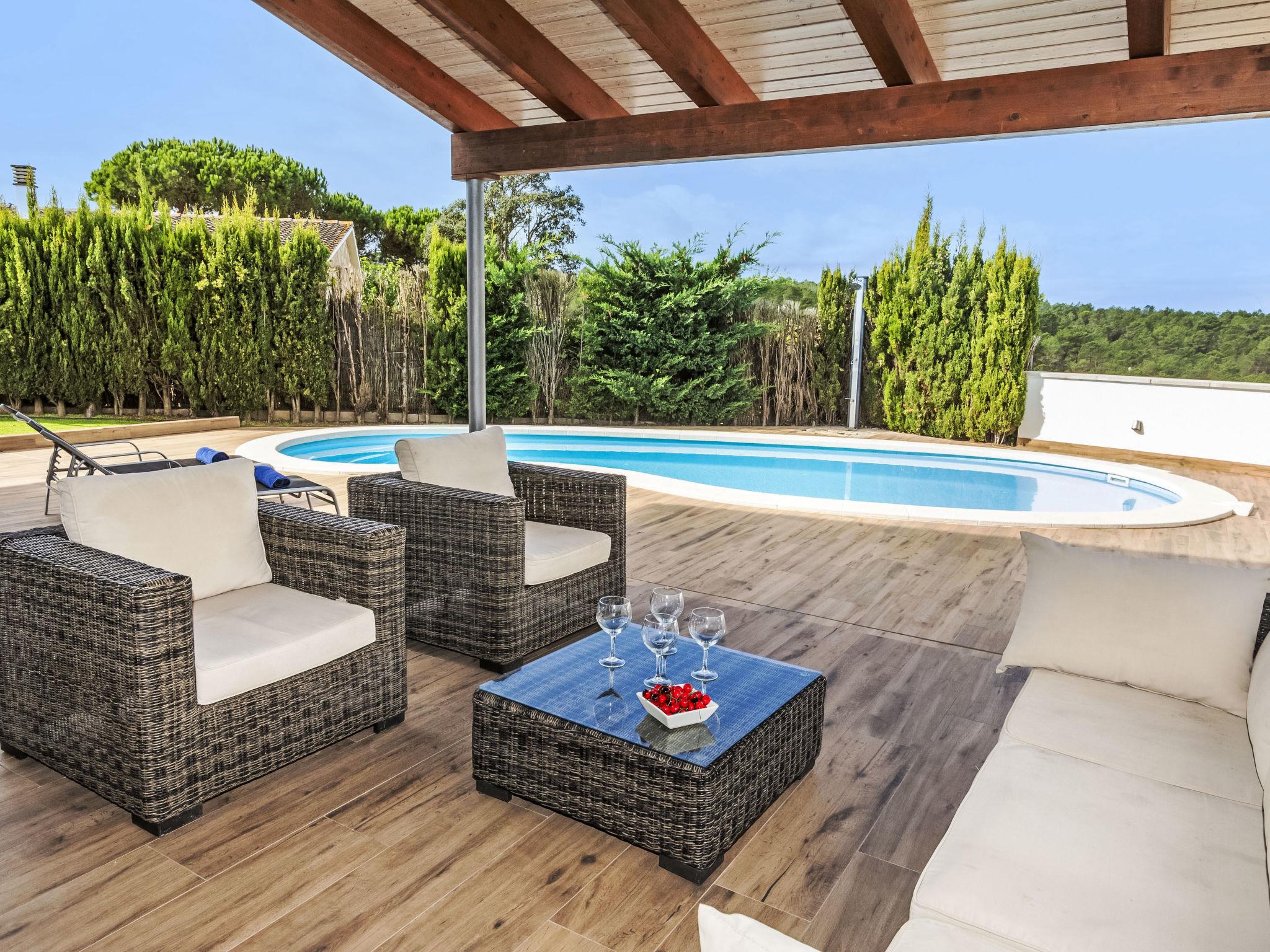 Urb. Puigventós: 10 km from Playa de Lloret de Mar: Large, cosy house "Torre de Ven", 2 storeys. Outside the resort, 10 km from the centre of Lloret de Mar, in the district Urbanizacion Puigventos, in a quiet, sunny position, 10 km from the sea, 10 km from the beach, located by a road, south facing position. For shared use: swimming pool angular fenced (20 x 10 m, depth 50 - 200 cm, seasonal availability: 15.May. - 15.Oct.). Shower/WC in the pool area, children's pool, tennis, basketball, children's playground (slide, swing). Private: garden 1'200 m2 (fenced) wildlife garden, swimming pool kidney shaped (8 x 4 m, depth 100 - 180 cm, seasonal availability: 01.May. - 20.Oct.) with salt-electrolysis pool-cleaning system. Outdoor shower, patio, arbour, pergola, garden furniture, barbecue (swing), parking (for 3 cars) at the house on the premises. Grocery 6 km, supermarket 6 km, shopping centre 9 km, sandy beach 10 km. Golf course (18 hole) 15 km, sailing school 12 km, tennis 500 m. Nearby attractions: Waterworld 7 km, Marinland 21 km, Barcelona 82 km, Girona 35 km, Tossa de Mar 29 km. Hiking paths: cami de ronda GR-92 14.4 km. Please note: car recommended. Suitable for families. The owner does not accept any youth groups. Neighbourhood highly sensitive to noise. Quietness and good behaviour expected.