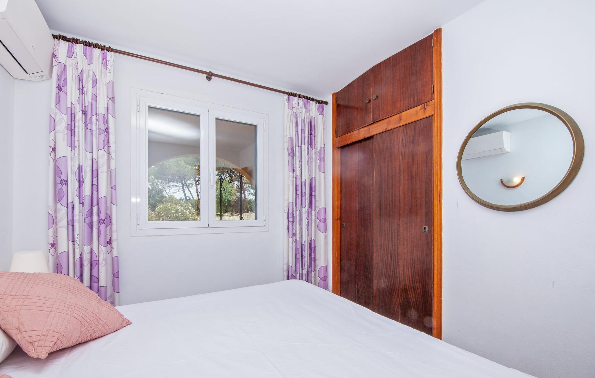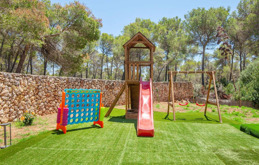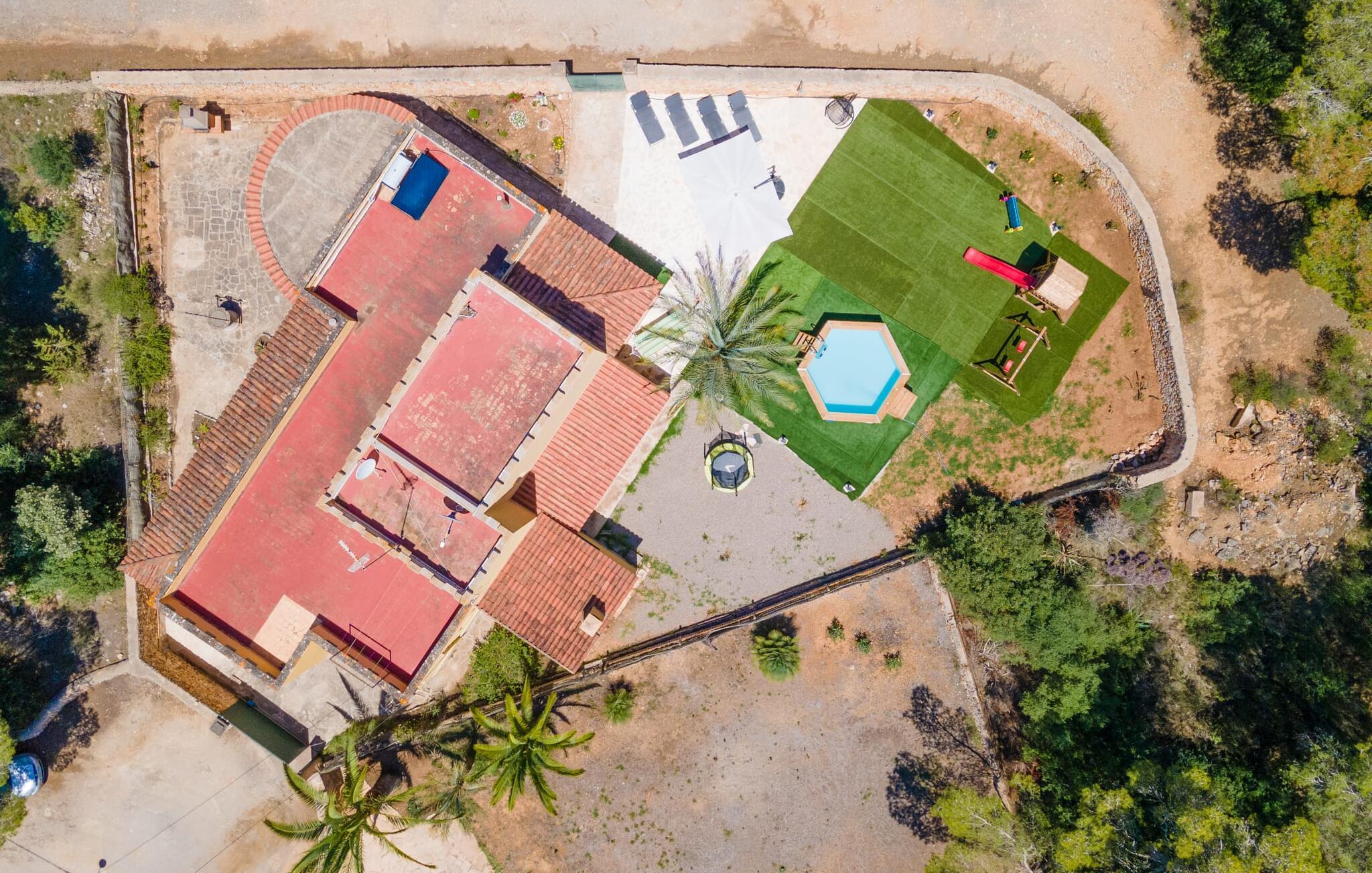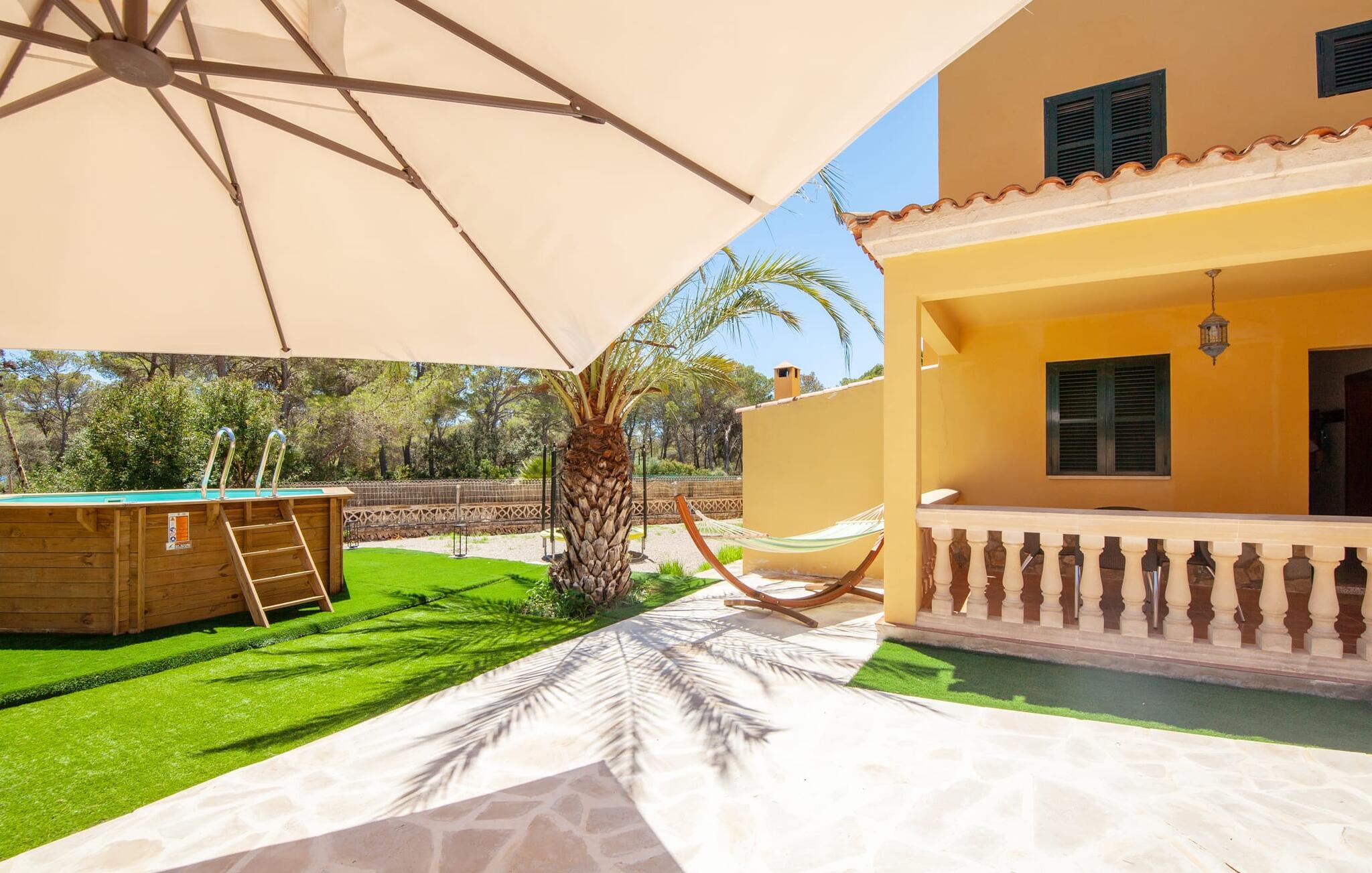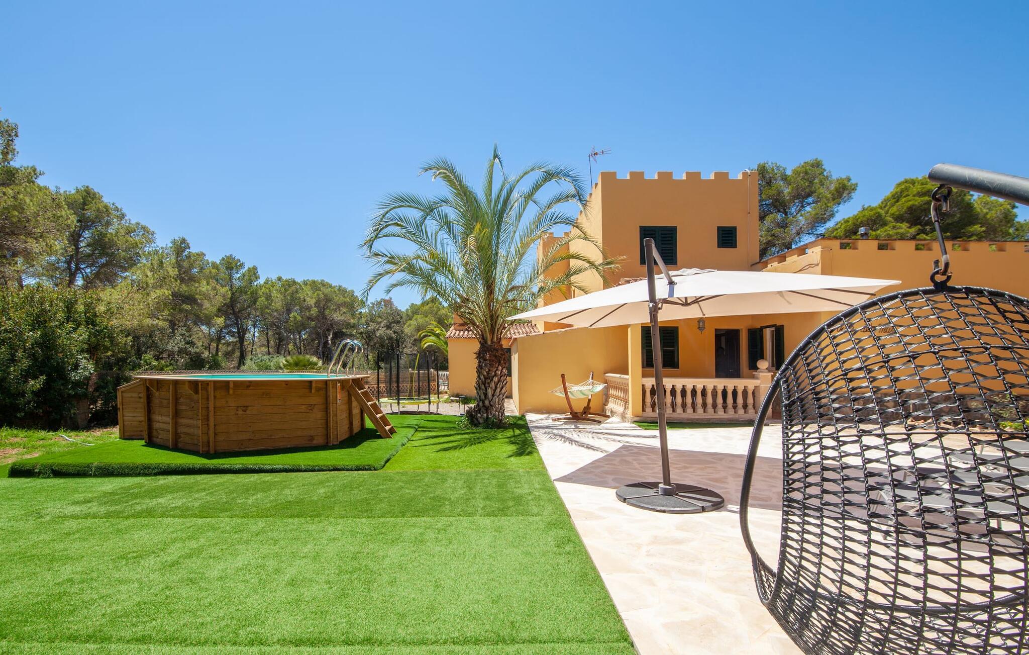 Elsker I natur og strande? Er jeres yndlingspool det åbne hav? Så led ikke længere, for med Villa “del Mar” har I fundet jeres ideelle sommerhus. Placeringen af fincaen midt i Parc natural de Mondragó er simpelthen uvurderlig. Smukke vandrestier gennem parken begynder lige uden for dørene til fincaen. Det er kun få meter til postkortstranden Cala Mondragó. I bugten omgivet af fyrreskove kan I tilbringe en dejlig dag på stranden med alle bekvemmeligheder. Der er restauranter og strandbarer samt brusere, toiletter, parasoller og liggestole. Cala Mondragó er den midterste af de tre strande i naturparken. Den nærliggende bugt S'Amarador kan nemt nås til fods via en kyststi og Calo des Borgit gennem fyrreskoven. Uanset hvilken bugt I vælger, vil I være en af de første til at besøge om morgenen og en af de sidste til at besøge om aftenen. I kan undgå stress og jag på klassisk vis med en siesta på jeres fincas smukke haveterrasse. Her finder I komfortable liggestole og en stor parasol. I kan også nyde jeres måltider sammen i fred og ro i skyggen af den overdækkede, halvcirkelformede terrasse. Afhængigt af vindretningen kan aftenunderholdningen på et hotelkompleks på Cala Barca høres. Børneunderholdningen der kan perfekt integreres i jeres eget familieprogram om aftenen. På varme sommeraftener frister de nu øde bugter igen. En svømmetur i måneskin i havet eller en flaske vin på stranden er romantiske muligheder. Villaen har fire soveværelser og er velegnet til op til otte personer og to babyer. I stueetagen er der en stor stue og spisestue, det åbne køkken, to soveværelser med hver to enkeltsenge, et soveværelse med en dobbeltseng og to badeværelser. Et andet soveværelse med dobbeltseng med enkeltsenge og et badeværelse er ovenpå. Herfra har I også udgang til en rummelig tagterrasse, perfekt til solbadning. Alle værelser er lyst malede og funktionelt indrettede. I stuen kan I slappe af på to komfortable sofaer eller slappe af i en af de komfortable gyngestole og læse jeres feriebog. Et stort fladskærms-tv på væggen sørger for, at intet står i vejen for afslappede filmaftener. I de køligere årstider kan I gøre jer hyggelig og varm ved hjælp af pejsen. Køkkenet er fuldt udstyret med køle-fryseskab, komfur, ovn, mikroovn, opvaskemaskine, kaffemaskine og brødrister og byder også på masser af opbevaringsplads. Badeværelserne er funktionelle og moderne. I behøver ikke at medbringe en hårtørrer, da der er to til jeres rådighed. Vælger I Villa del Mar, bør I være strand- og naturelsker. I kan finde masser af både i naturreservatet og lige uden for døren. De smukke bugter Cala Mondragó og Calo des Borgit kan nås på få minutter til fods gennem fyrreskoven. Det er næppe længere til S'Amarador-stranden via en kyststi. Herfra fører stien rundt om Cape Punta de ses Gatoves til den lille klippebugt Caló d'en Perdiu og videre til Cape es Blanquer. Den farverige kulisse i fiskerlandsbyen Cala Figuera er heller ikke langt væk. Sidst på eftermiddagen er ankomst og losning af fiskerbådene et helt særligt højdepunkt. Den nærliggende by Santanyí er også farverig om onsdagen og lørdagen, mens i Cala d'Or (7 km) er de klassiske hvide og flade, kubiske former i den ibizaanske arkitektoniske stil fremherskende. Villa del Mar er omgivet af fyrreskove og ligger i det smukke landskab i Parc natural de Mondragó. De tre bugter Cala Mondragó, S'Amarador og Calo des Borgit ligger alle inden for få minutters gang og er blandt de smukkeste strande på øen. Cala d'Or ligger kun 7 km væk, hvor I vil finde adskillige butikker, supermarkeder, gode restauranter og barer. Aircondition i ejendommen er inkluderet i prisen, men dets brug er begrænset til 22:00 til 06:00.