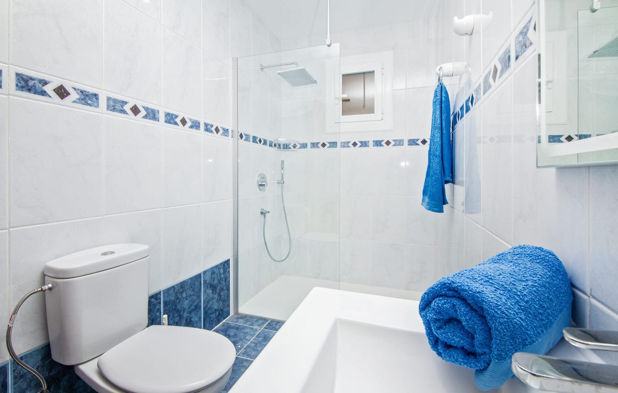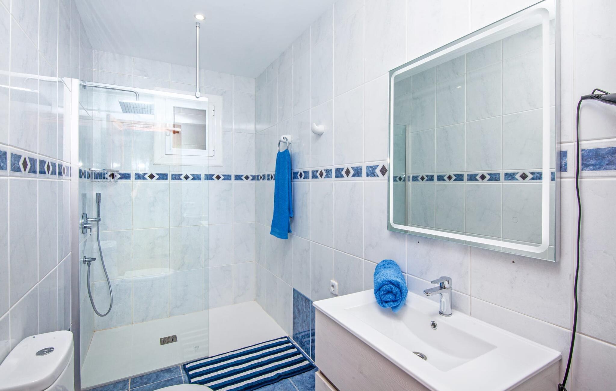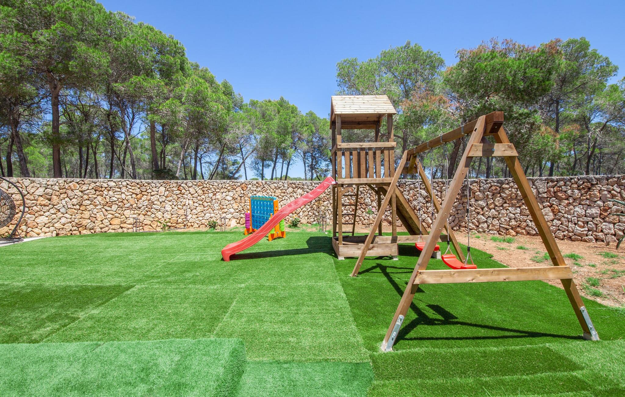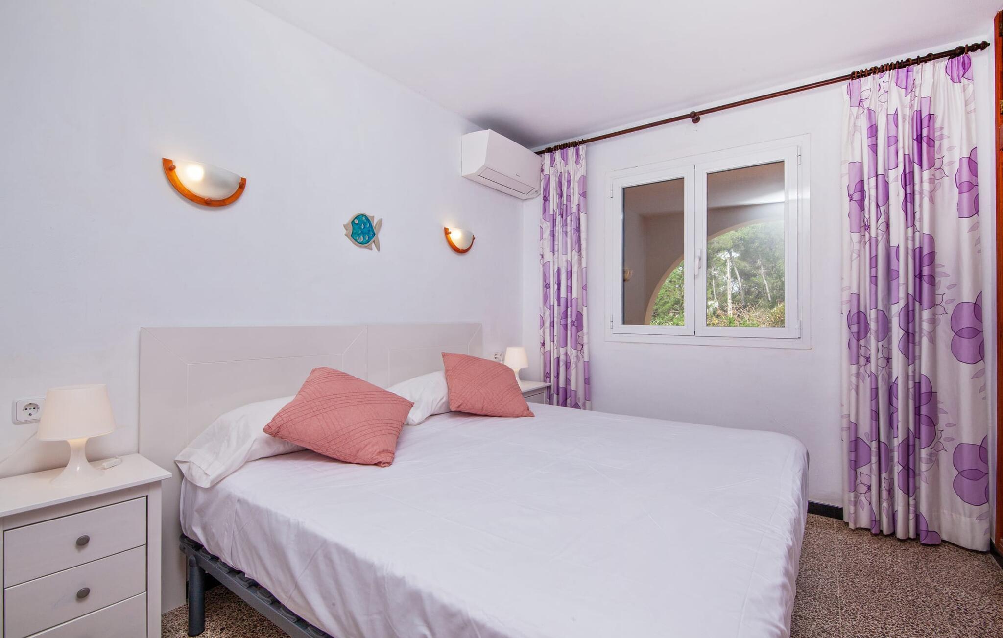 Elsker I natur og strande? Er jeres yndlingspool det åbne hav? Så led ikke længere, for med Villa “del Mar” har I fundet jeres ideelle sommerhus. Placeringen af fincaen midt i Parc natural de Mondragó er simpelthen uvurderlig. Smukke vandrestier gennem parken begynder lige uden for dørene til fincaen. Det er kun få meter til postkortstranden Cala Mondragó. I bugten omgivet af fyrreskove kan I tilbringe en dejlig dag på stranden med alle bekvemmeligheder. Der er restauranter og strandbarer samt brusere, toiletter, parasoller og liggestole. Cala Mondragó er den midterste af de tre strande i naturparken. Den nærliggende bugt S'Amarador kan nemt nås til fods via en kyststi og Calo des Borgit gennem fyrreskoven. Uanset hvilken bugt I vælger, vil I være en af de første til at besøge om morgenen og en af de sidste til at besøge om aftenen. I kan undgå stress og jag på klassisk vis med en siesta på jeres fincas smukke haveterrasse. Her finder I komfortable liggestole og en stor parasol. I kan også nyde jeres måltider sammen i fred og ro i skyggen af den overdækkede, halvcirkelformede terrasse. Afhængigt af vindretningen kan aftenunderholdningen på et hotelkompleks på Cala Barca høres. Børneunderholdningen der kan perfekt integreres i jeres eget familieprogram om aftenen. På varme sommeraftener frister de nu øde bugter igen. En svømmetur i måneskin i havet eller en flaske vin på stranden er romantiske muligheder. Villaen har fire soveværelser og er velegnet til op til otte personer og to babyer. I stueetagen er der en stor stue og spisestue, det åbne køkken, to soveværelser med hver to enkeltsenge, et soveværelse med en dobbeltseng og to badeværelser. Et andet soveværelse med dobbeltseng med enkeltsenge og et badeværelse er ovenpå. Herfra har I også udgang til en rummelig tagterrasse, perfekt til solbadning. Alle værelser er lyst malede og funktionelt indrettede. I stuen kan I slappe af på to komfortable sofaer eller slappe af i en af de komfortable gyngestole og læse jeres feriebog. Et stort fladskærms-tv på væggen sørger for, at intet står i vejen for afslappede filmaftener. I de køligere årstider kan I gøre jer hyggelig og varm ved hjælp af pejsen. Køkkenet er fuldt udstyret med køle-fryseskab, komfur, ovn, mikroovn, opvaskemaskine, kaffemaskine og brødrister og byder også på masser af opbevaringsplads. Badeværelserne er funktionelle og moderne. I behøver ikke at medbringe en hårtørrer, da der er to til jeres rådighed. Vælger I Villa del Mar, bør I være strand- og naturelsker. I kan finde masser af både i naturreservatet og lige uden for døren. De smukke bugter Cala Mondragó og Calo des Borgit kan nås på få minutter til fods gennem fyrreskoven. Det er næppe længere til S'Amarador-stranden via en kyststi. Herfra fører stien rundt om Cape Punta de ses Gatoves til den lille klippebugt Caló d'en Perdiu og videre til Cape es Blanquer. Den farverige kulisse i fiskerlandsbyen Cala Figuera er heller ikke langt væk. Sidst på eftermiddagen er ankomst og losning af fiskerbådene et helt særligt højdepunkt. Den nærliggende by Santanyí er også farverig om onsdagen og lørdagen, mens i Cala d'Or (7 km) er de klassiske hvide og flade, kubiske former i den ibizaanske arkitektoniske stil fremherskende. Villa del Mar er omgivet af fyrreskove og ligger i det smukke landskab i Parc natural de Mondragó. De tre bugter Cala Mondragó, S'Amarador og Calo des Borgit ligger alle inden for få minutters gang og er blandt de smukkeste strande på øen. Cala d'Or ligger kun 7 km væk, hvor I vil finde adskillige butikker, supermarkeder, gode restauranter og barer. Aircondition i ejendommen er inkluderet i prisen, men dets brug er begrænset til 22:00 til 06:00.