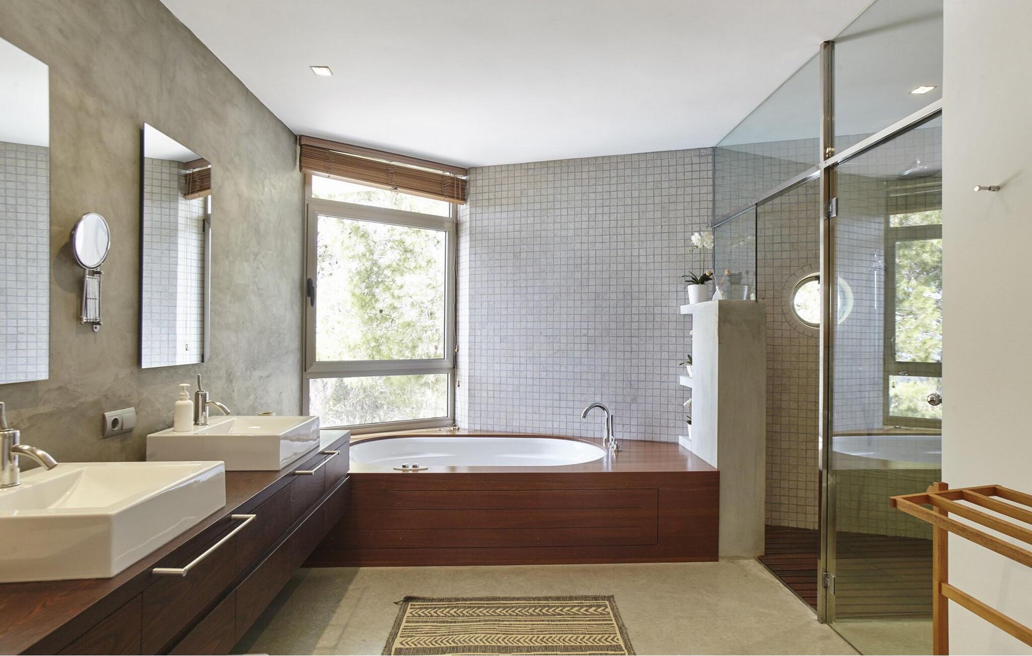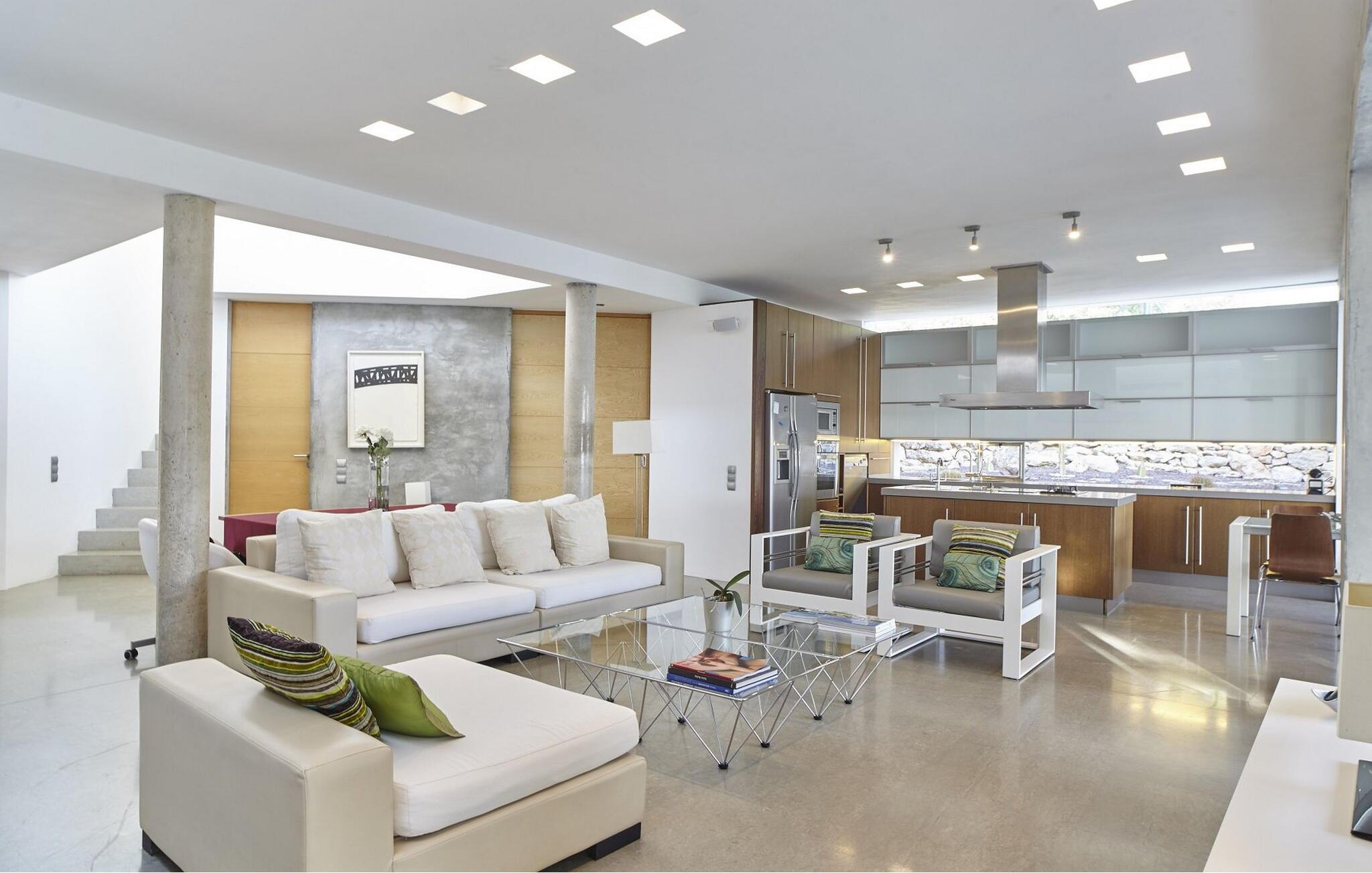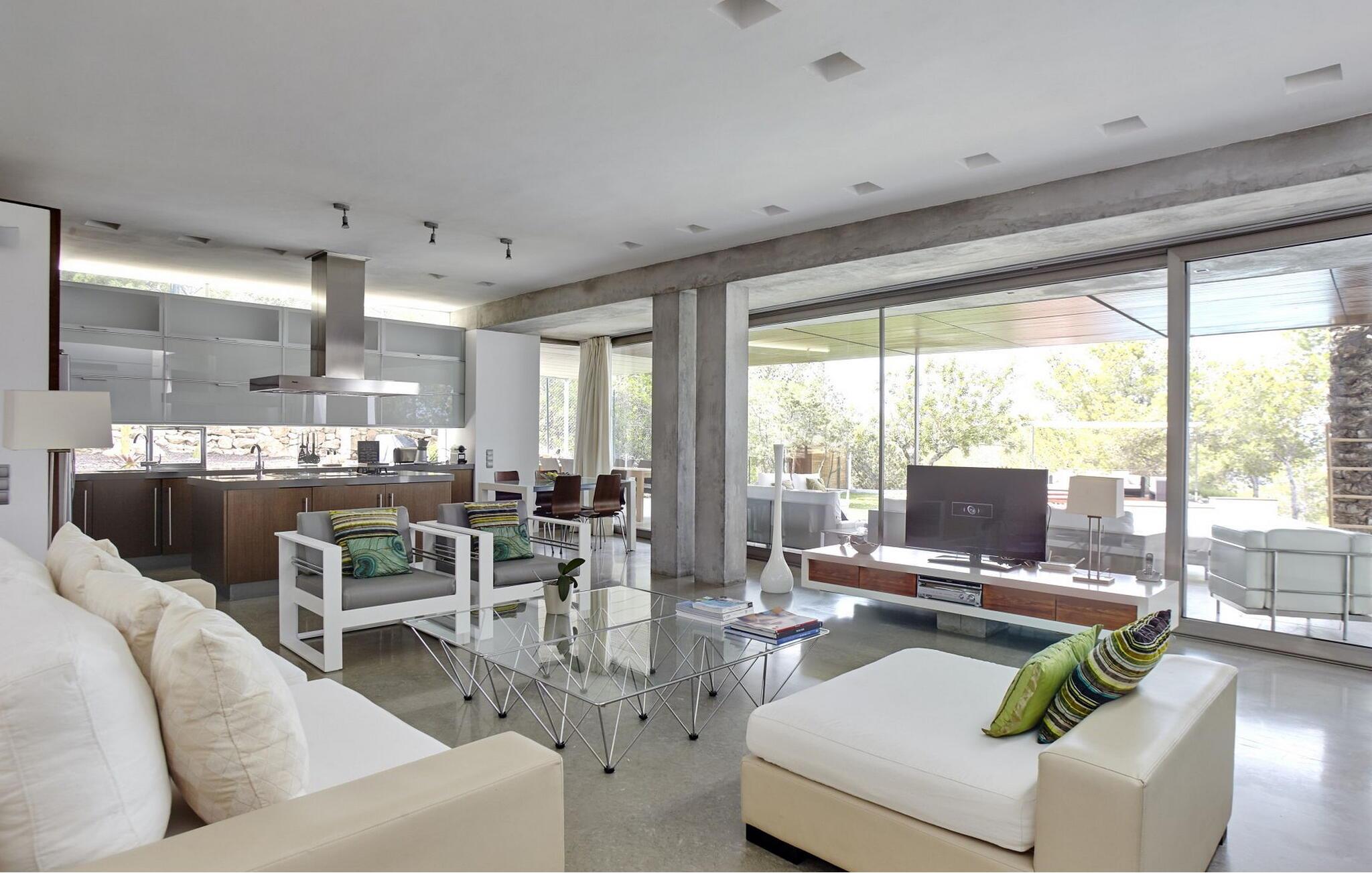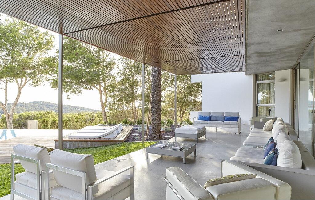 Minimalistisk villa med 5 soveværelser beliggende på en bakke, ikke langt fra den smukke Cala Salada-strand, med fantastisk udsigt over havet og solnedgangen fra haven.
