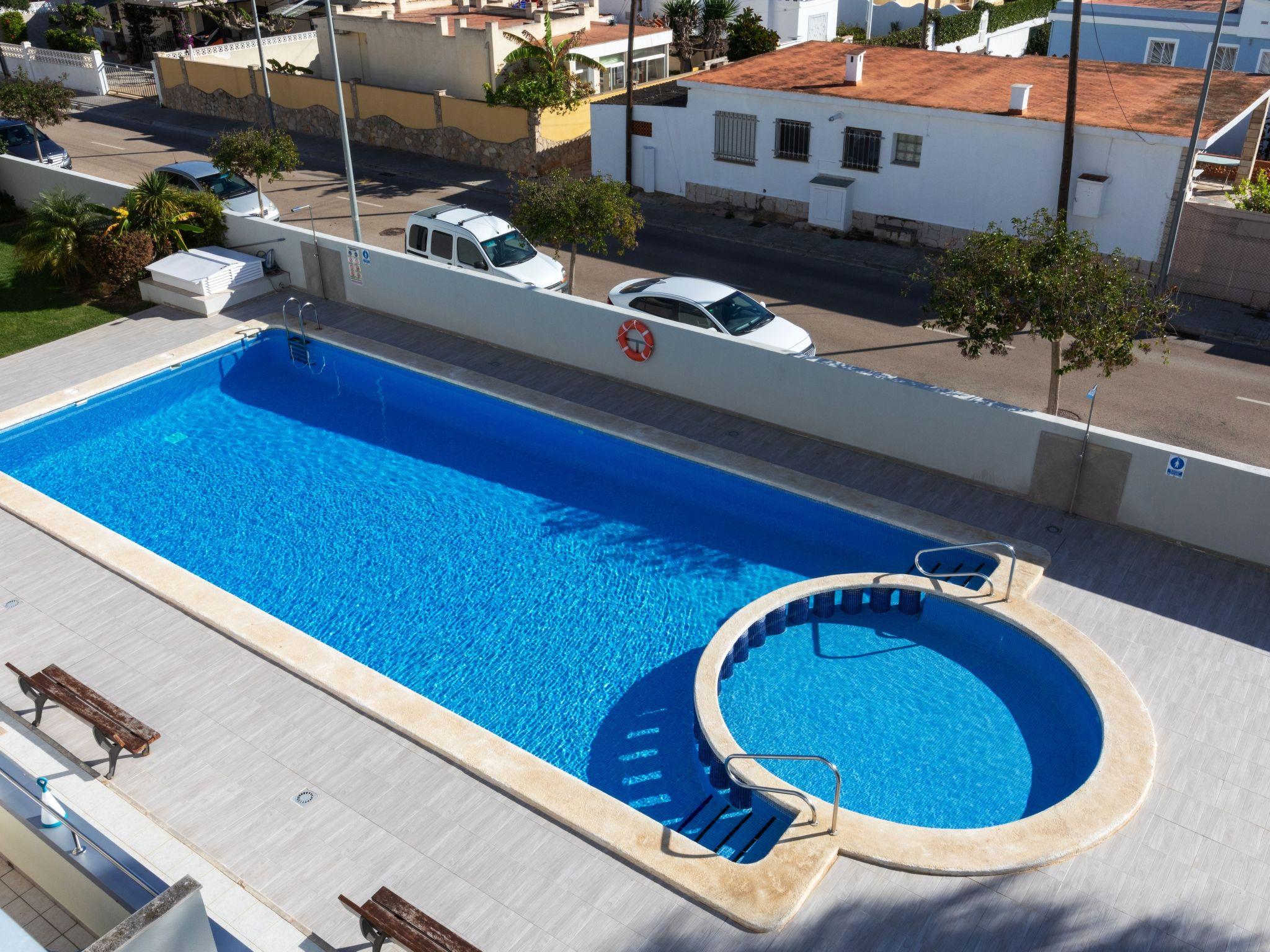 Triador Vinaros 4 km from Vinaros centro: Cosy apartment block "Como Siempre", 2 storeys, built in 2012. 25 apartments in the property. In the resort 4 km from the centre of Vinaros, in a quiet position, 250 m from the sea, 250 m from the beach. For shared use: swimming pool angular (12 x 8 m, seasonal availability: 01.Jan. - 31.Dec.) with salt-electrolysis pool-cleaning system. Children's pool, outdoor shower. In the house: lift, air conditioning. Parking at the house, communal covered parking space n 1. Grocery 2 km, supermarket 1.5 km, shopping centre 4 km, restaurant 250 m, café 400 m, bus stop "Vinaros" 4 km, railway station "Vinaros" 6 km, shingle beach 250 m. Nearby attractions: Peñiscola 30 km, Delta del Ebro 40 km, Port Aventura 100 km, Museo de las Ciencias - Valencia 120 km. Hiking paths: Parque natural Sierra de Irta 35 km, Foradada del Montsià 25 km. Please note: car recommended. Object suitable for 2 adults + 2 children. The owner does not accept any youth groups. Neighbourhood highly sensitive to noise. Quietness and good behaviour expected.