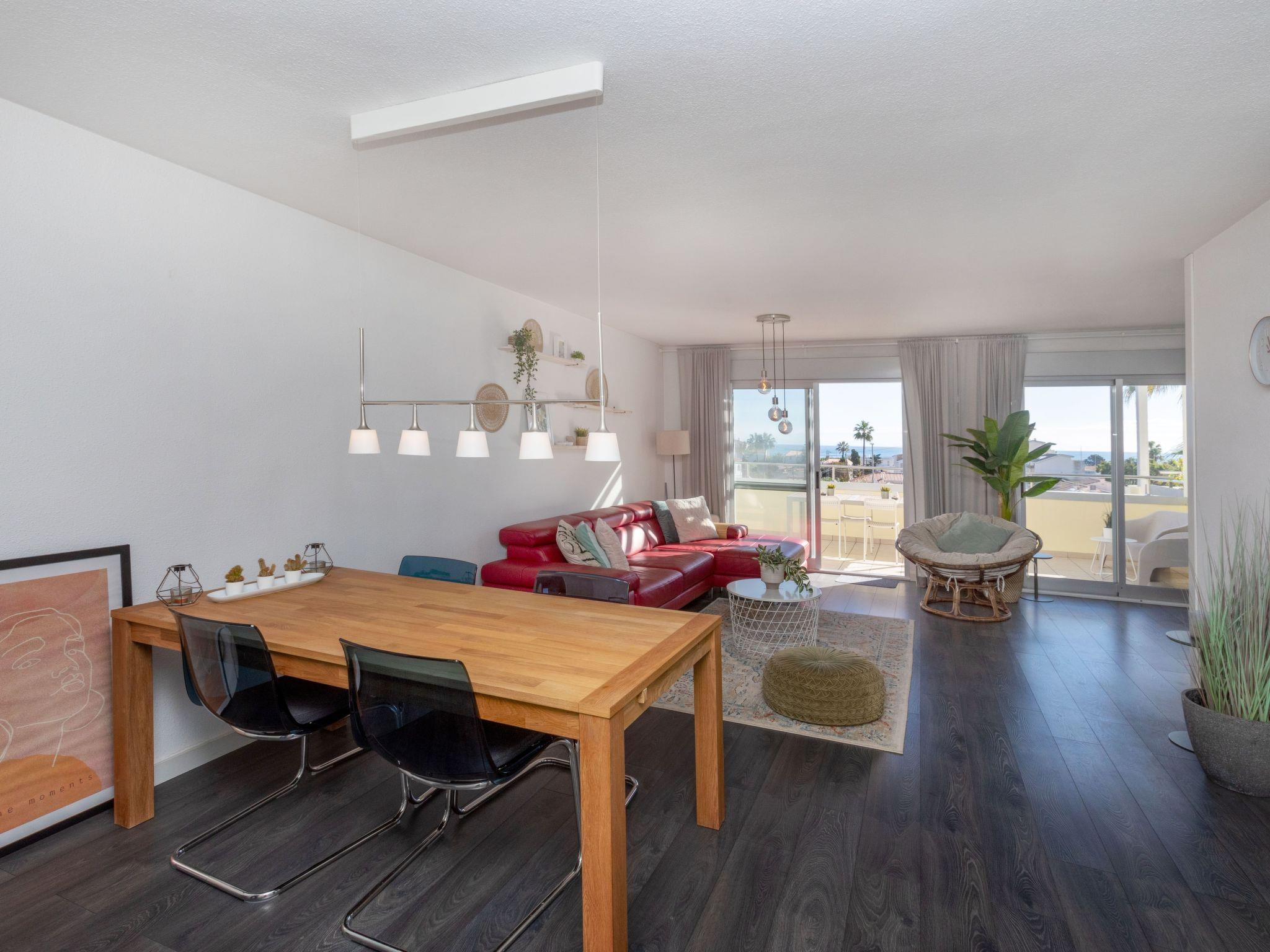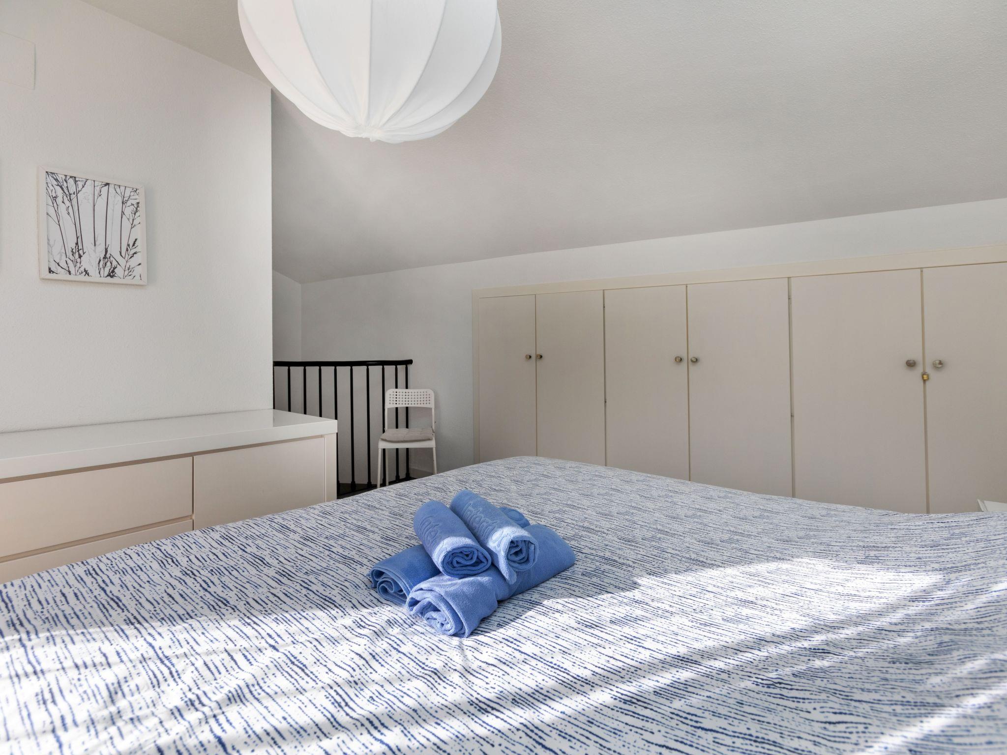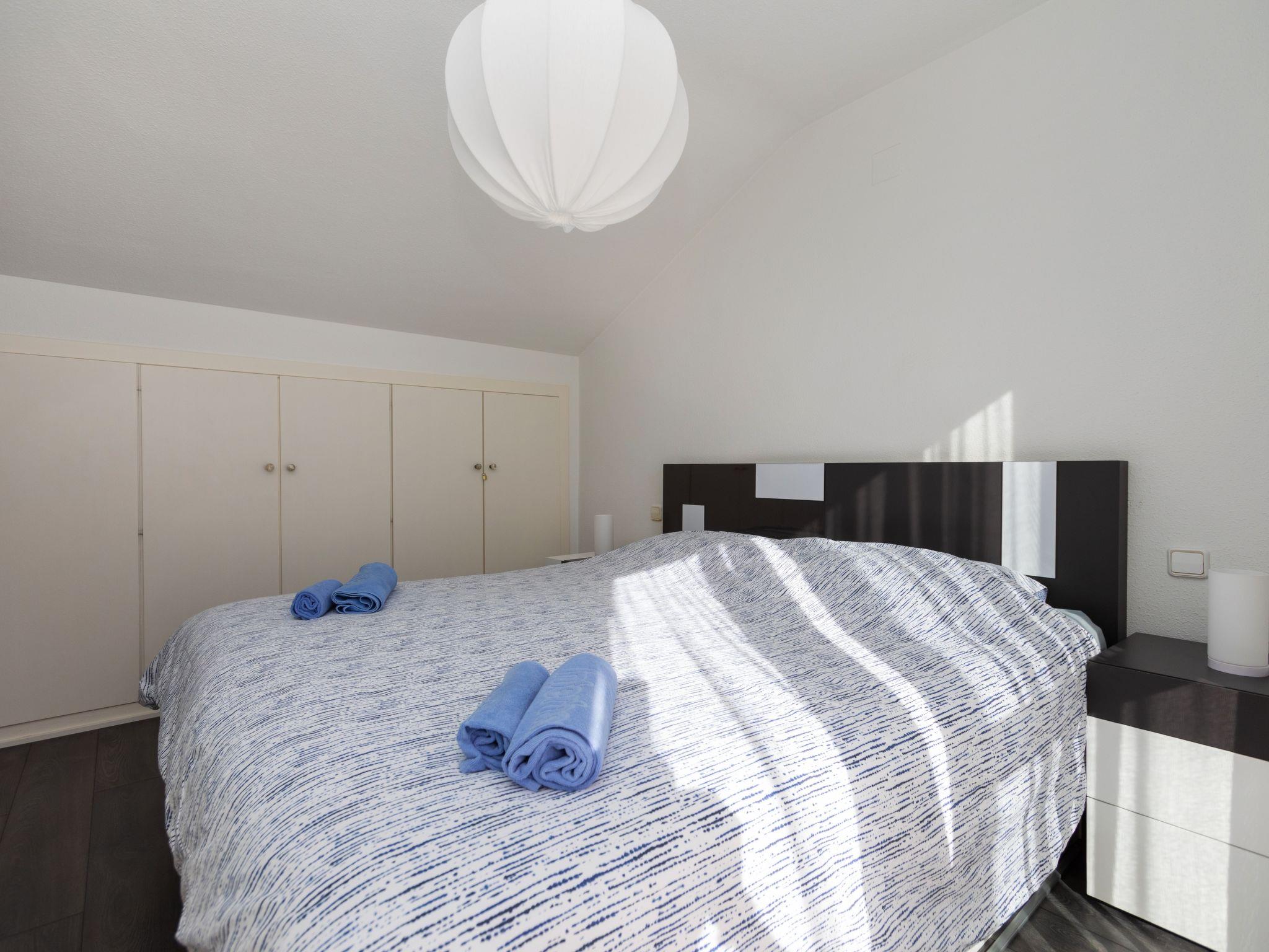 "Como siempre", 3-room maisonette 90 m2 on 2 levels. Object suitable for 4 adults. Partly with sloping ceilings, comfortable furnishings: living/dining room with electric shutters. 1 room with 2 beds (80 cm, length 200 cm), shower/WC. Exit to the terrace. Open kitchen (oven, dishwasher, 4 induction hot plates, toaster, kettle, microwave, freezer, electric coffee machine, Capsules for coffee machine (Dolce Gusto) extra) with electric shutters. Sep. WC. Boiler (80 litres). Upper floor: 1 room with 1 french bed (1 x 180 cm, length 200 cm), shower/WC, air conditioning and electric shutters. 2 large terraces. Terrace furniture, deck chairs (2). Distant view of the sea. Facilities: washing machine, dryer, iron, hair dryer. Internet (WiFi, free). Parking, garage (1 car) at the house. Please note: maximum 1 small pet/ dog allowed. TV only ES. " smart TV. VT-42638CS // Reg. Nr.: ESFCTU000012009000264196000000000000000000VT-42638CS2