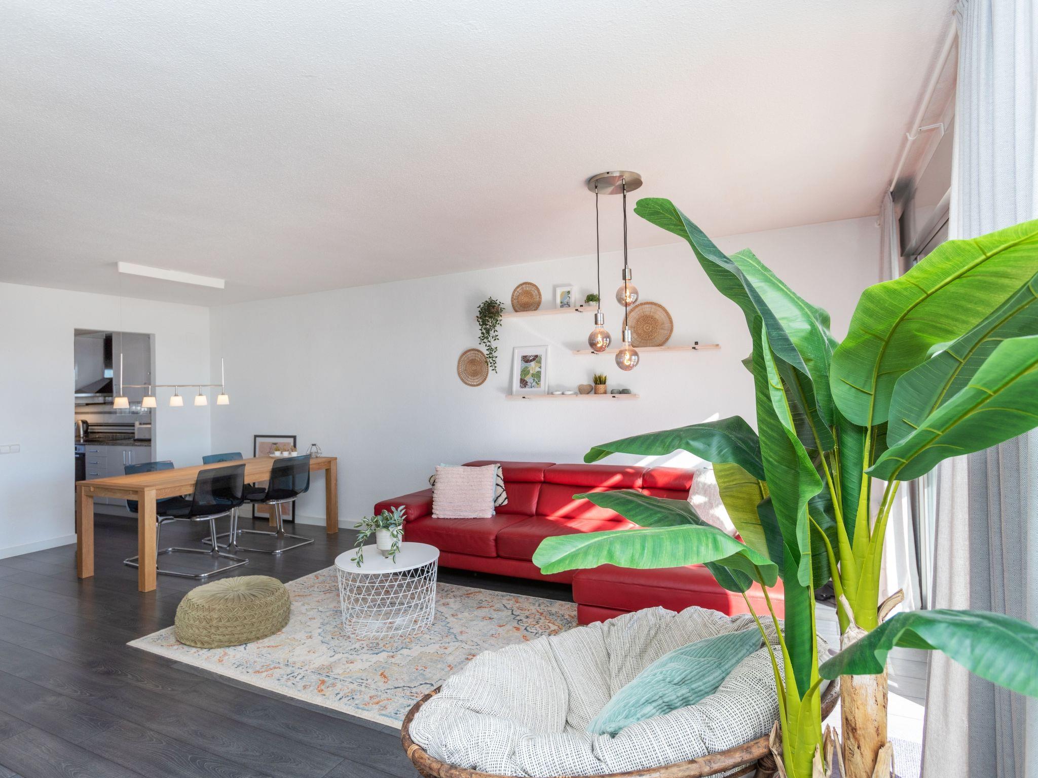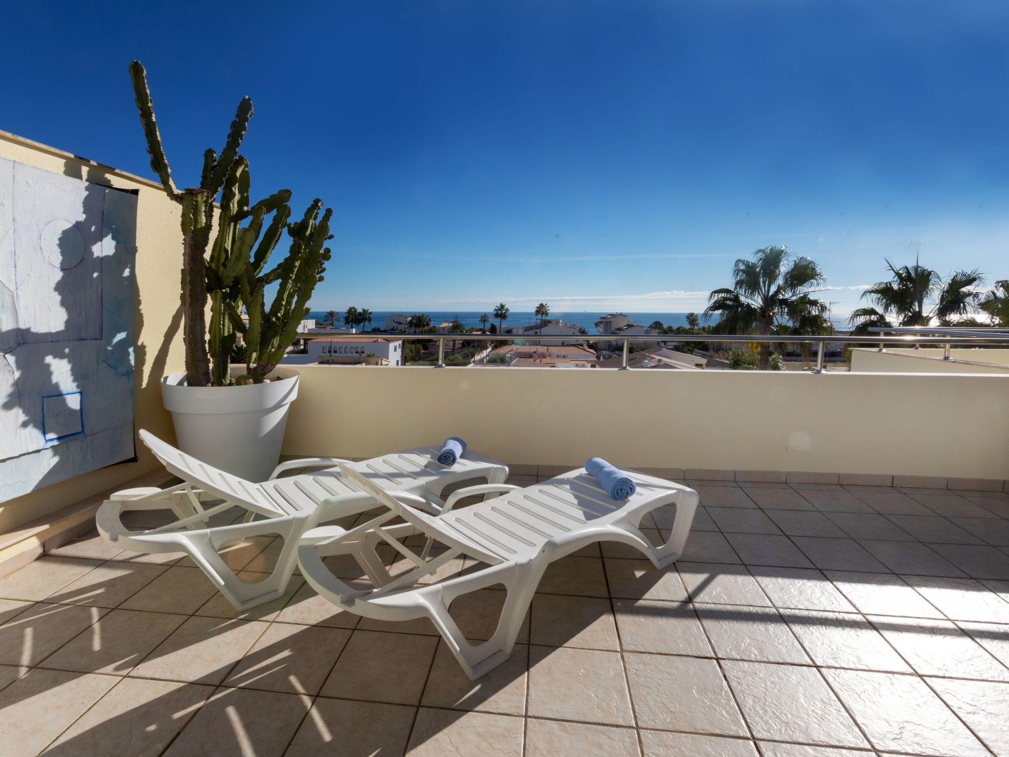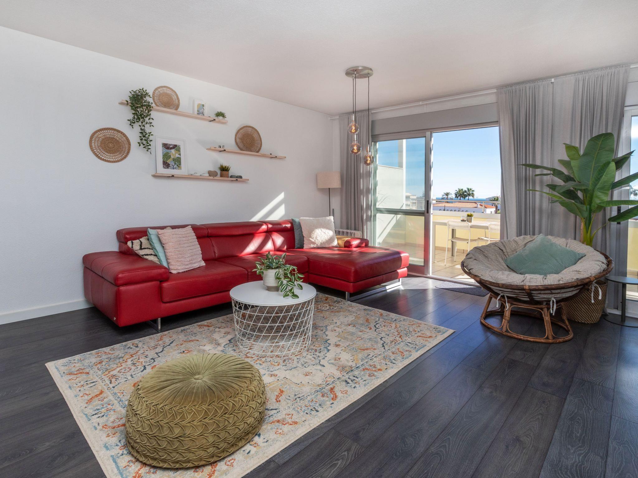 "Como siempre", 3-room maisonette 90 m2 on 2 levels. Object suitable for 4 adults. Partly with sloping ceilings, comfortable furnishings: living/dining room with electric shutters. 1 room with 2 beds (80 cm, length 200 cm), shower/WC. Exit to the terrace. Open kitchen (oven, dishwasher, 4 induction hot plates, toaster, kettle, microwave, freezer, electric coffee machine, Capsules for coffee machine (Dolce Gusto) extra) with electric shutters. Sep. WC. Boiler (80 litres). Upper floor: 1 room with 1 french bed (1 x 180 cm, length 200 cm), shower/WC, air conditioning and electric shutters. 2 large terraces. Terrace furniture, deck chairs (2). Distant view of the sea. Facilities: washing machine, dryer, iron, hair dryer. Internet (WiFi, free). Parking, garage (1 car) at the house. Please note: maximum 1 small pet/ dog allowed. TV only ES. " smart TV. VT-42638CS // Reg. Nr.: ESFCTU000012009000264196000000000000000000VT-42638CS2