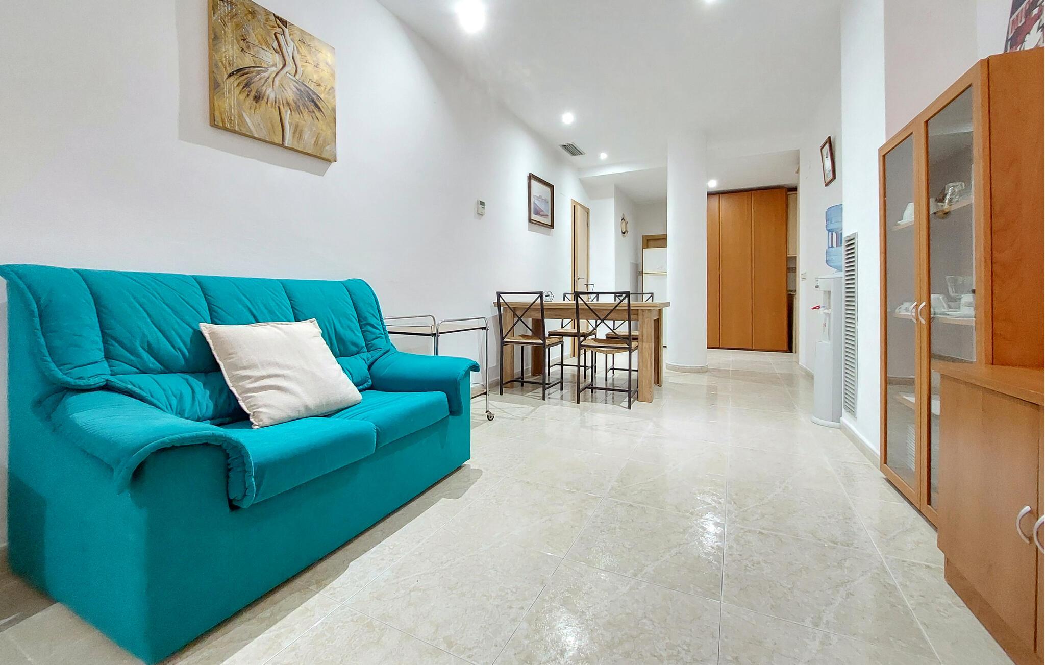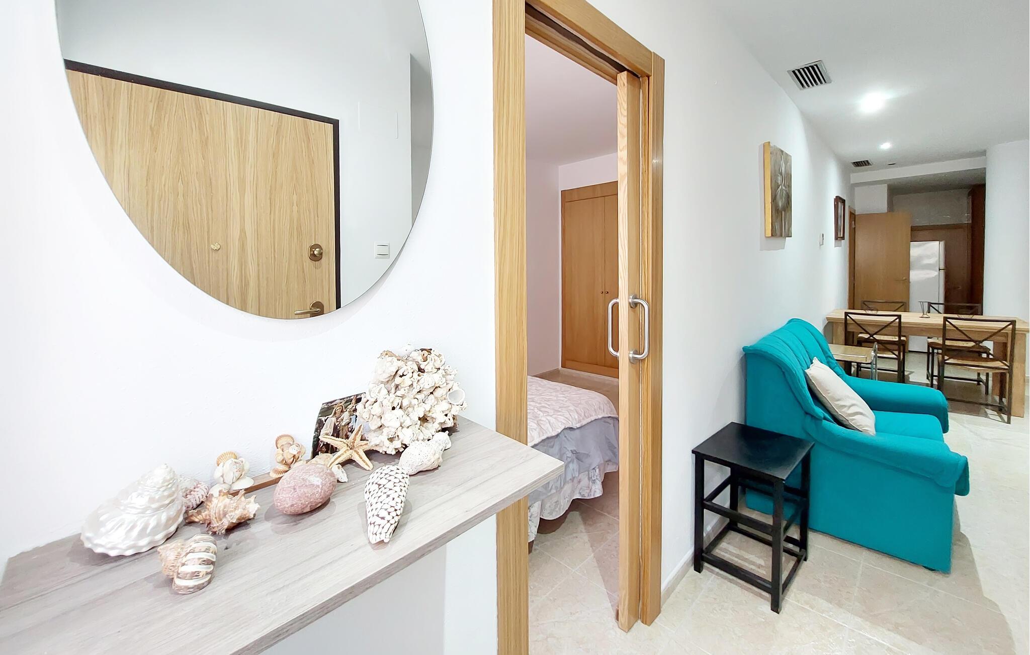Nyd jeres næste ferie i denne ferielejlighed i Vinaroz Playa, kun få minutters gang fra stranden. Lejligheden byder på en lys og venlig indretning, der får jer til at føle jer velkomne fra første øjeblik. Slap af på den hyggelige sofa i stuen og nyd jeres yndlingsfilm, eller planlæg jeres udflugter i området. Tilbered jeres måltider i det veludstyrede køkken og brug det indbydende spisebord til fælles måltider eller afslappede aftener med familie eller venner.