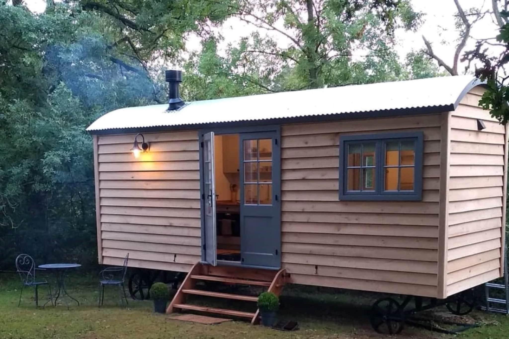 Denne fortryllende håndlavede egehyrdehytte tilbyder et romantisk og fredfyldt tilflugtssted for par eller enkeltpersoner, der søger en fredelig flugt på landet. Hytten er smukt designet med en drømmende king-size seng, sprødt hvidt sengetøj og hyggelige plader, hvilket sikrer en afslappende søvn. Gæsterne kan slappe af i opholdsstuen, som omfatter en to-personers sofa og en brændeovn for at holde sig varm under køligere aftener. Moderne faciliteter såsom et fladskærms-smart-tv, Wi-Fi og et eget brusebad med bløde håndklæder, toiletartikler og en hårtørrer tilføjer komforten. Ejendommen er kæledyrsvenlig og tilbyder et idyllisk miljø til at slappe af i naturens omfavnelse. Beliggende midt i 5 hektar med haver og skove giver hytten en rolig flugt, hvor du kan nyde naturens syn og lyde. Området vrimler med dyreliv, herunder legende kaniner, egern og endda lejlighedsvis vilde hjorte. På klare nætter kan gæsterne nyde stjernekiggeriet ved bålpladsen eller grille på hyttens terrasse. I nærheden tilbyder Artisan Bakehouse prisvindende brødfremstillingskurser, chokoladefremstillingsværksteder og pop-up-superklubber, hvilket gør det til en ideel destination for madelskere. De lokale høns giver frisklagte æg til morgenmad, hvilket sikrer en frisk start på din dag. Hyttens skræddersyede køkken er fuldt udstyret med køleskab/fryser, ovn/mikroovn, komfur, kedel og brødrister, så gæsterne nemt kan tilberede måltider. En velkomstkurv til morgenmad er inkluderet, med hjemmebagt brød, granola, marmelade, småkager, lokal juice, friske æg, mælk, smør og te/kaffe. Med alt inklusive tjenester såsom sengelinned, håndklæder, varme og internetadgang tilbyder dette charmerende tilflugtssted en blanding af luksus og natur.