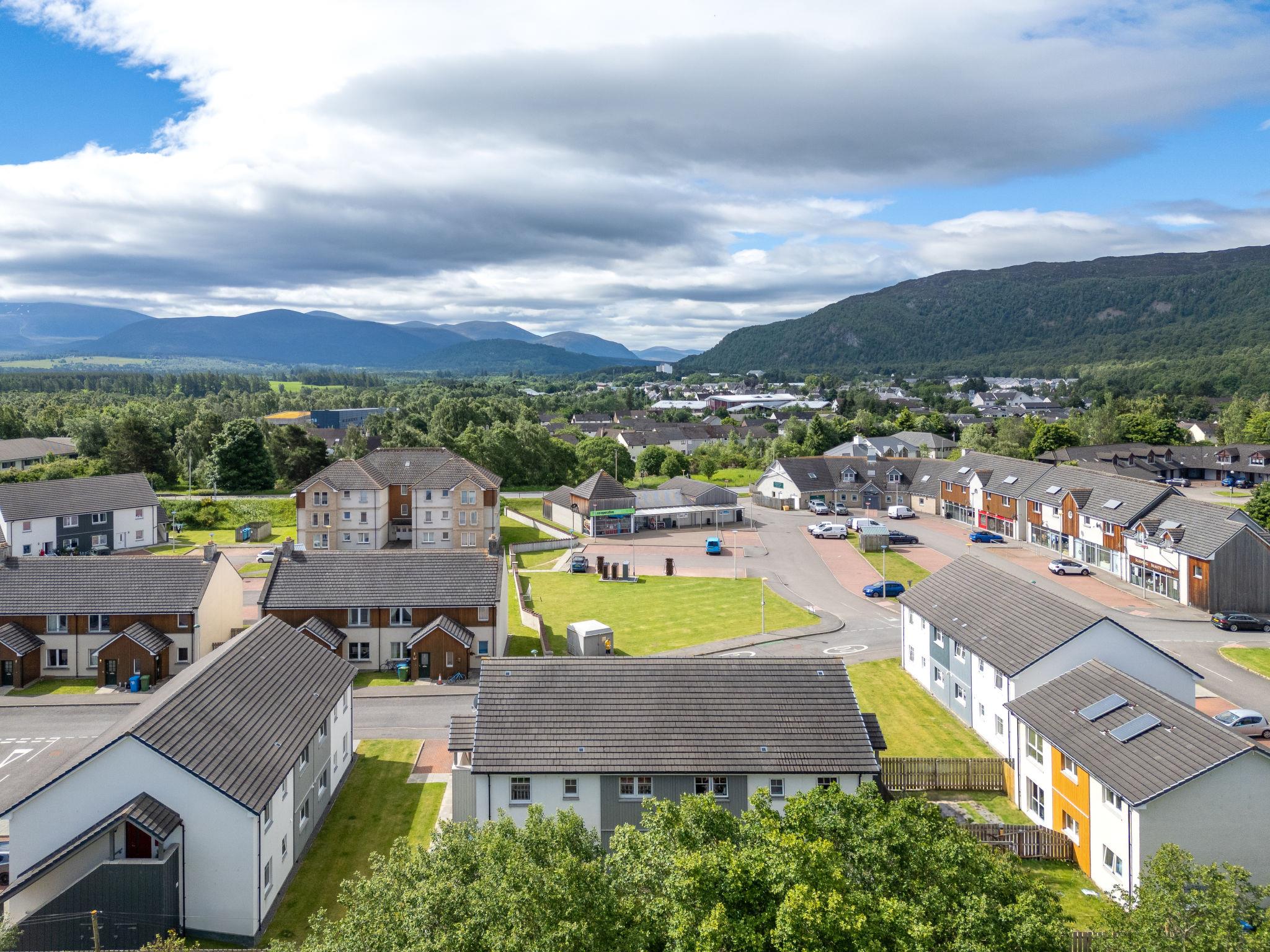 Cosy, comfortable apartment house "The Muir". 2 km from the centre of Aviemore, in a quiet, sunny position, 15 km from the lake, 18 km from the skiing area. In the complex: storage room for bicycles, storage room for skis. Parking at the house, public parking. Shop 100 m, grocery, supermarket, restaurant 1 km, bar 2 km, bus stop "Aviemore (burnside rd)" 450 m, railway station "Aviemore" 2 km. Golf course (18 hole) 1 km, ski lift 18 km. Nearby attractions: Dalfaber Golf & Country Club 1 km, Cairngorm National Park, Highland Wildlife Park 15 km, Inverness 48 km, Landmark Forest Adventure Park 9 km, Highland Folk Museum 27 km. Well-known ski regions can easily be reached: Cairngorms ski resort 18 km, The Lecht ski resort 54 km. Well-known lakes can easily be reached: Loch Morlich 15 km, Loch Garten 14 km, Loch Ness 69 km. Please note: car recommended.