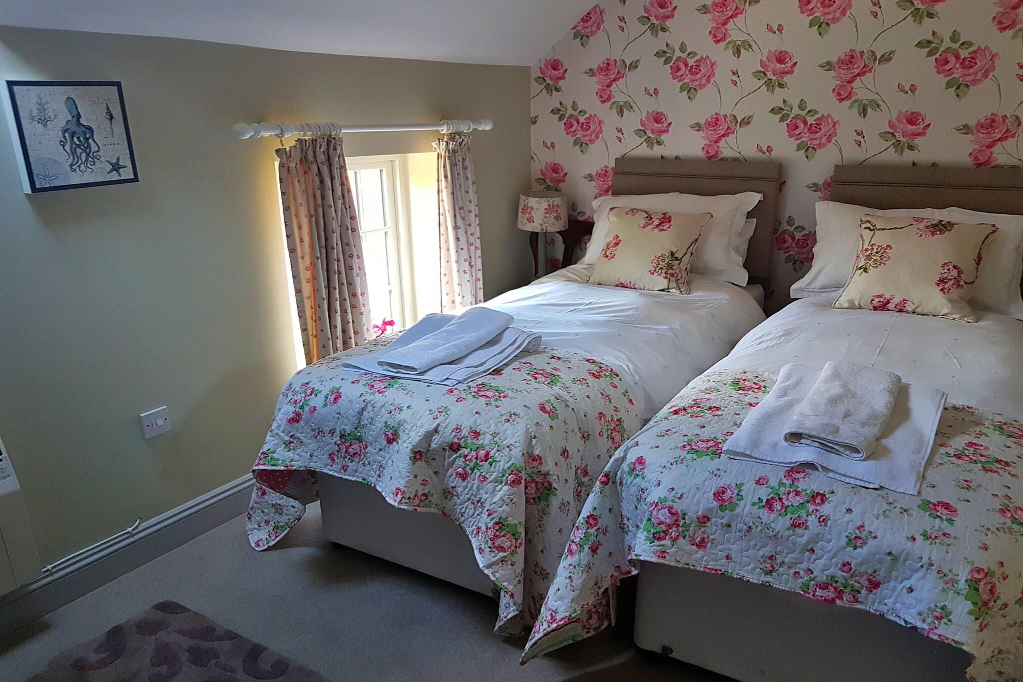Dette charmerende, kæledyrsvenlige sommerhus byder på et hyggeligt tilflugtssted med to rummelige soveværelser, herunder et master soveværelse med en king-size seng og et andet værelse med to enkeltsenge. Det kan rumme op til fire gæster og giver et afslappende opholdsområde, komplet med en komfortabel sofa og et fladskærms-tv. For dem, der rejser med kæledyr, er veltrænede hunde velkomne mod et ekstra gebyr. Gæsterne kan også nyde en privat balkon, perfekt til at slappe af og nyde omgivelserne. Sommerhuset giver adgang til udendørs aktiviteter, herunder et fælles haveområde og tennisbane, ideel til afslapning og rekreation. Denne hytte ligger i et fredeligt område og tilbyder nem adgang til nærliggende attraktioner, caféer og markeder. Den charmerende bymidte, kun en kort afstand, byder på en række spisemuligheder, butikker og lokale faciliteter. Offentlige transportmuligheder, såsom bus- og togstationer, er inden for en bekvem afstand, hvilket gør det nemt at udforske nærliggende byer og naturskønne steder. Området byder også på masser af vandre- og cykelstier, hvilket gør det til et fremragende valg for naturelskere og udendørsentusiaster. Indvendigt har hytten et fuldt udstyret køkken med moderne apparater, herunder en elektrisk ovn, køleskab, mikroovn og opvaskemaskine, perfekt til at tilberede måltider. Badeværelset er velindrettet med både badekar og bruser, hvilket tilbyder komfort og bekvemmelighed. Yderligere faciliteter inkluderer Wi-Fi-adgang, en vaskemaskine og privat parkering, hvilket sikrer et problemfrit og behageligt ophold.