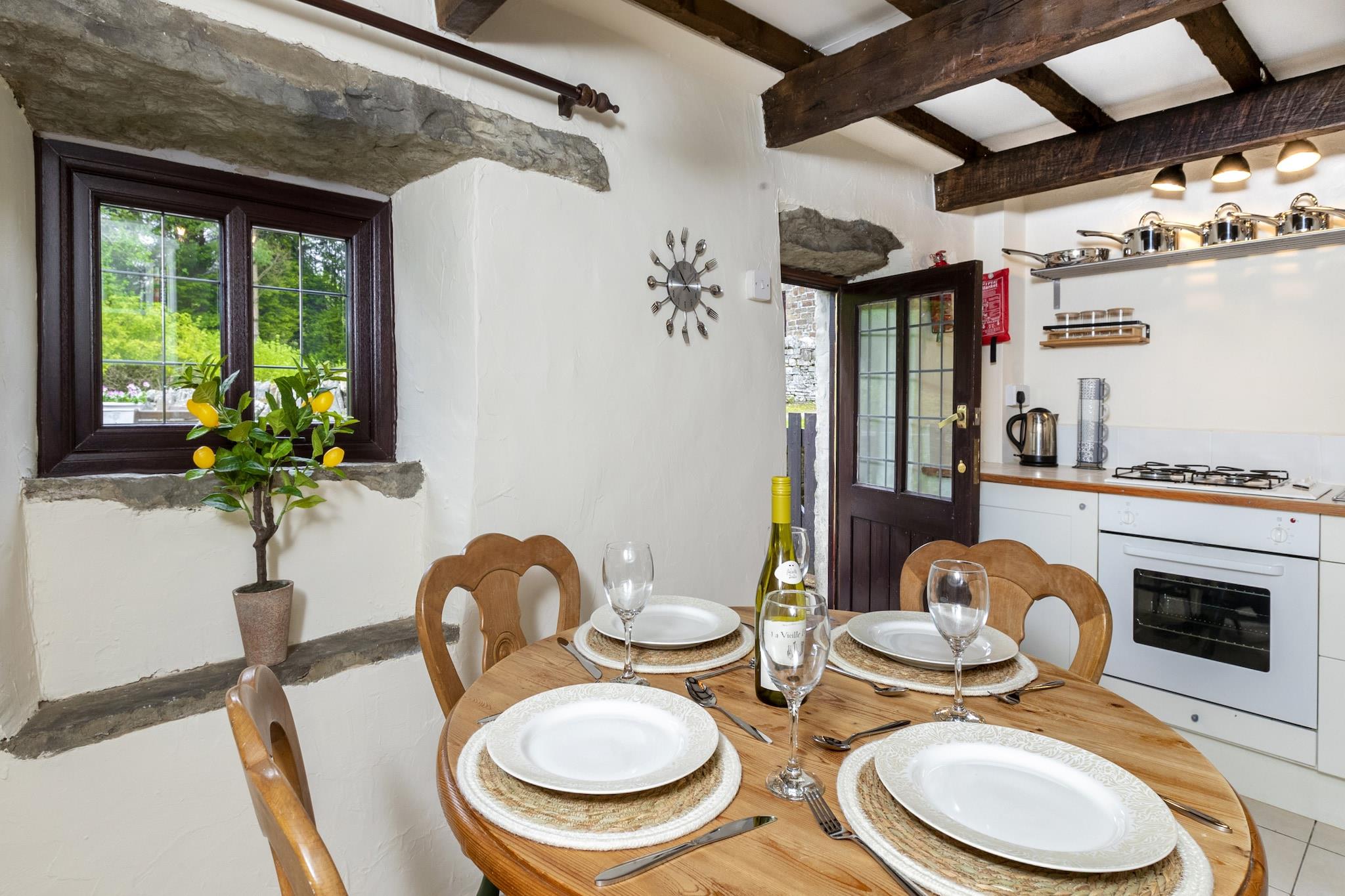 Dette charmerende sommerhus fra det 17. århundrede, beliggende på Boardmans Farm, tilbyder et hyggeligt tilflugtssted perfekt for par. Ejendommen har en luksuriøs himmelseng med udsigt over landskabet og suppleres af et komfortabelt opholdsområde med pejs til de koldere aftener. Moderne faciliteter, herunder et veludstyret køkken med alle nødvendige redskaber til madlavning, sikrer et bekvemt ophold. Sommerhuset tilbyder også internetadgang, varme og parkering til to biler. Udenfor kan gæsterne nyde den sydvestvendte have med udendørsmøbler, der er ideelle til at slappe af i sommersolen. Ejendommen er kæledyrsvenlig og tillader to velopdragne kæledyr mod et ekstra gebyr. Beliggende ned ad en stille bane, tilbyder hytten fredelige omgivelser, omgivet af maleriske haver og det smukke landskab i Hawkshaw. Det er inden for en kilometer fra den lokale pub i Hawkshaw Village, hvor yderligere faciliteter såsom en landsbybutik er tilgængelige. Beliggenheden tilbyder den perfekte base for at udforske det omkringliggende landskab, og gæsterne kan nyde det rolige landlige miljø, ideelt til gåture og udendørs aktiviteter. Indenfor udstråler sommerhuset rustik charme med egetræsbjælker, et bedstefars ur og en hyggelig stue perfekt til at koble af. Badeværelset har badekar og bruser, og der tilbydes gratis bekvemmeligheder for et behageligt ophold. Det fuldt udstyrede køkken tilbyder alt, hvad gæsterne har brug for til at tilberede måltider, mens de rolige og charmerende omgivelser giver mulighed for en afslappende oplevelse. Denne ejendom tilbyder en varm, historisk atmosfære med alle moderne bekvemmeligheder til en mindeværdig ferie.