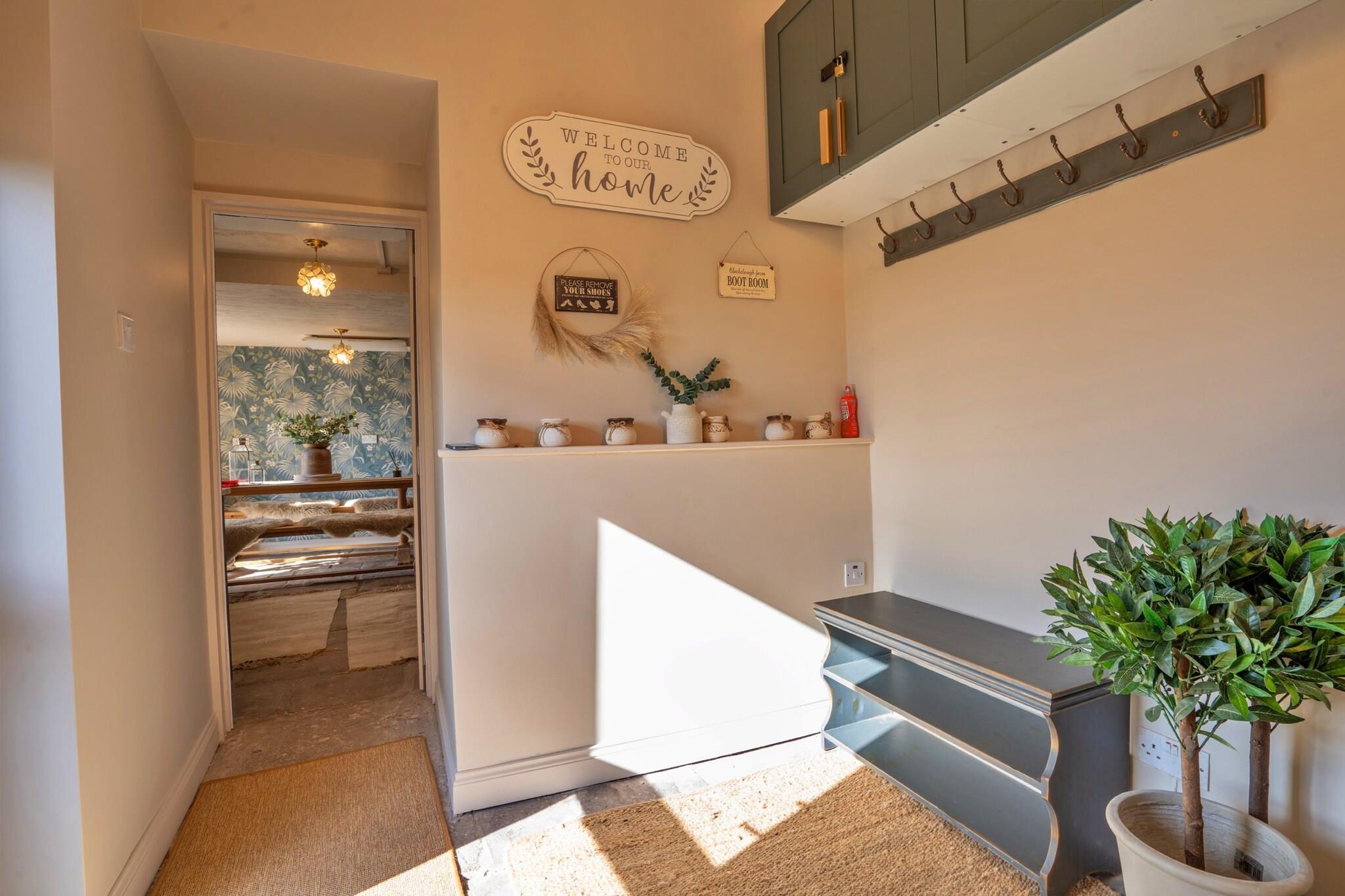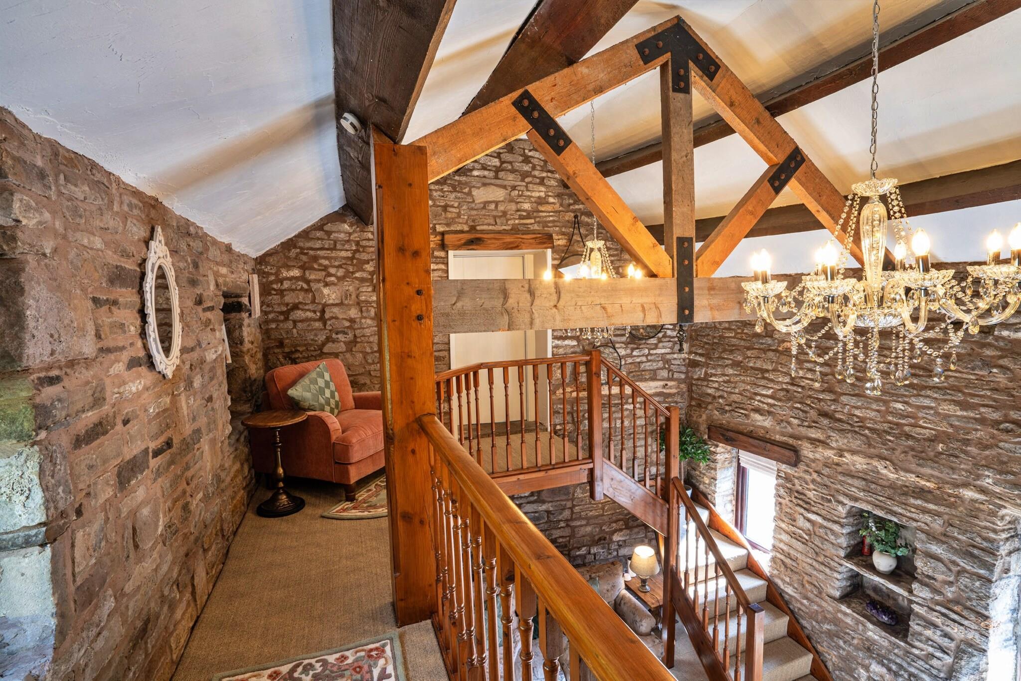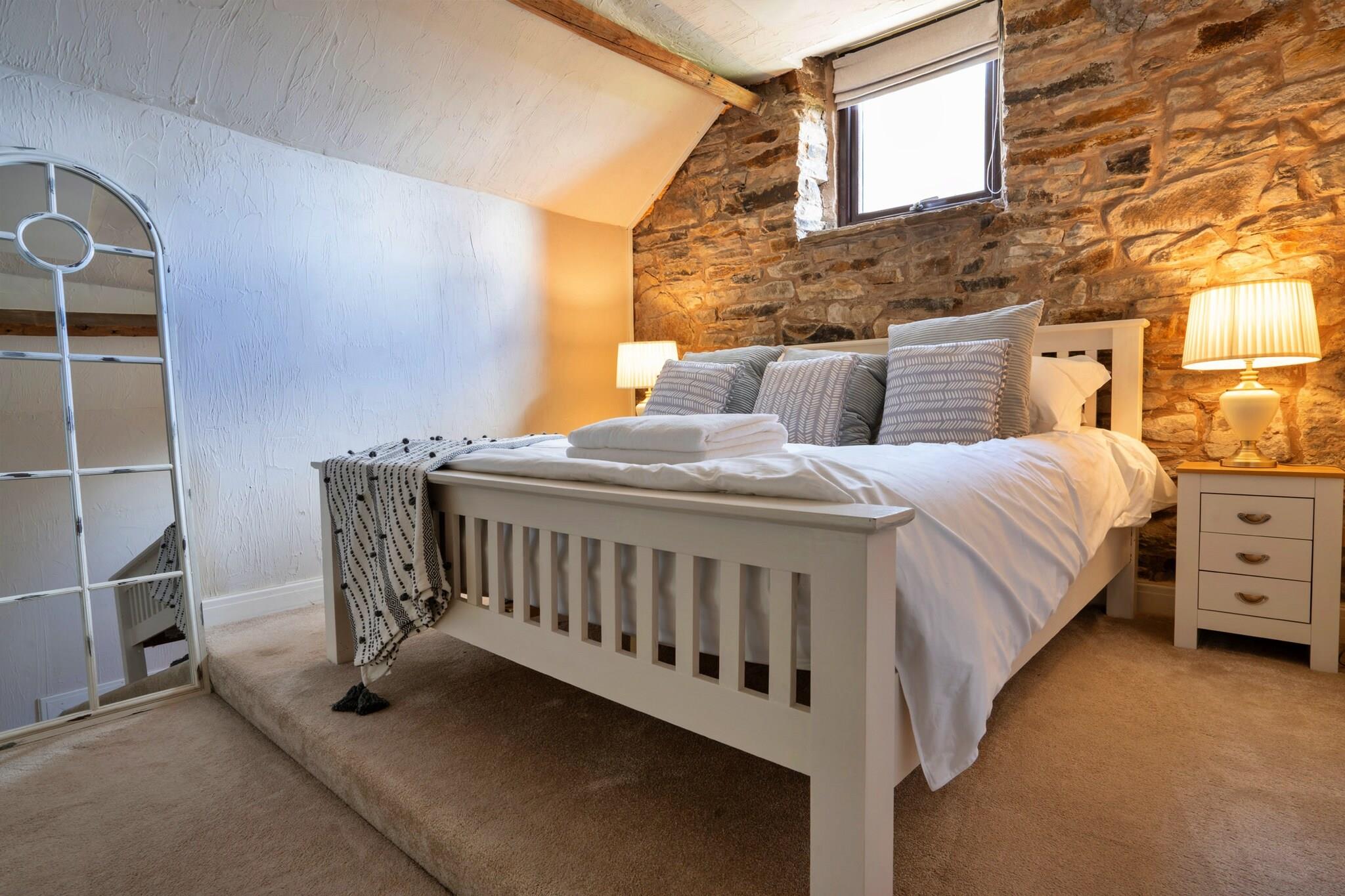 Beliggende i det fredfyldte Staffordshire Moorlands i Peak District, tilbyder denne smukt restaurerede lade ombygning en rolig flugt. Middle Barn fortryller med de blide lyde fra en nærliggende flod og brægende får, hvilket skaber en afslappende stemning. Gå ind i det indbydende køkken og spiseplads, hvor en fritlagt stenmur afspejler ejendommens rige historie, mens et stort vindue giver en fantastisk panoramaudsigt, der oversvømmer rummet med naturligt lys. Et tilstødende brusebadeværelse er perfekt efter en dag med udforskning, og den imponerende lounge, med et hvælvet loft og brændeovn, inviterer til hyggelige aftener sammen. Mezzaninen rummer yderligere to soveværelser, herunder et master-dobbeltværelse prydet med synlige stenvægge, udsigt over landskabet og et en-suite brusebad. Hvert soveværelse blander rustik charme med moderne bekvemmeligheder, hvilket giver mulighed for et perfekt tilbagetog efter en dag i naturen. Middle Barn kan rumme større grupper, når det bestilles hos Blackclough Farmhouse og End Barn, der huser op til 12 gæster, hvilket gør det ideelt til familiesammenkomster eller ferier med venner. Beliggende på et sted af særlig videnskabelig interesse, vil udendørsentusiaster nyde de nærliggende muligheder for vandreture, mountainbiking og klatring midt i en fantastisk naturskønhed. Landsbyen Flash og kurbyen Buxton er inden for rækkevidde og byder på pulserende lokale faciliteter og attraktioner. For dem, der medbringer en pelset ven, er en hund velkommen mod et ekstra gebyr. Planlæg venligst din ankomst omhyggeligt, især i vintermånederne, for at sikre et sikkert og behageligt ophold i dette fortryllende tilflugtssted.